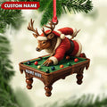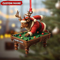 Personalized Acrylic Deer Christmas Ornament – Funny Buck Playing Pool in Santa Outfit Holiday Decor