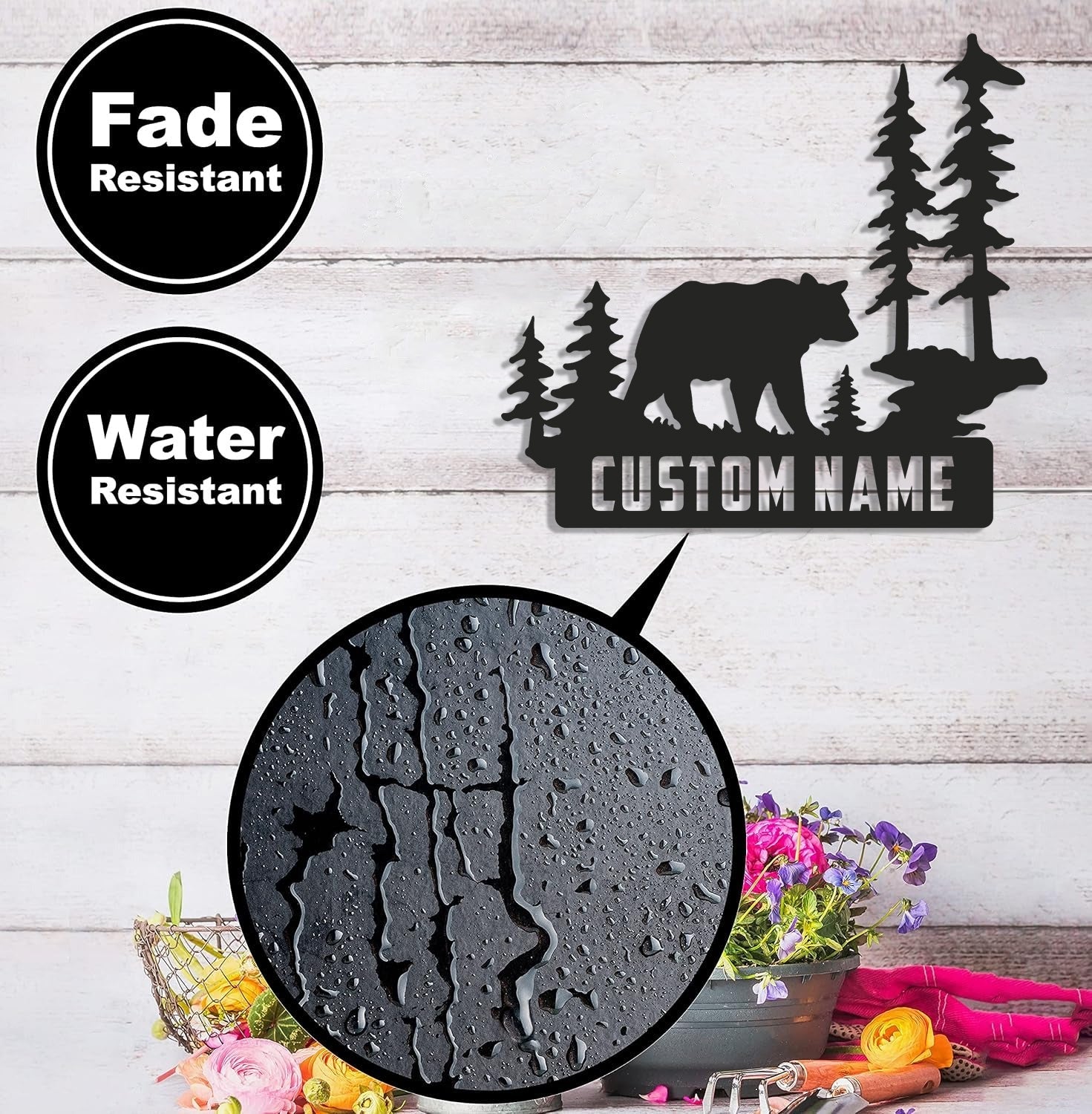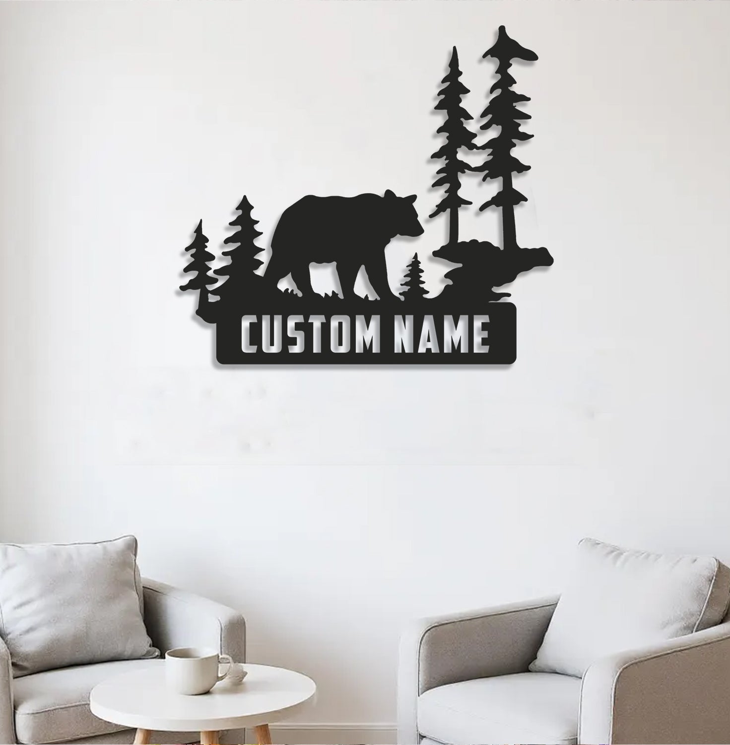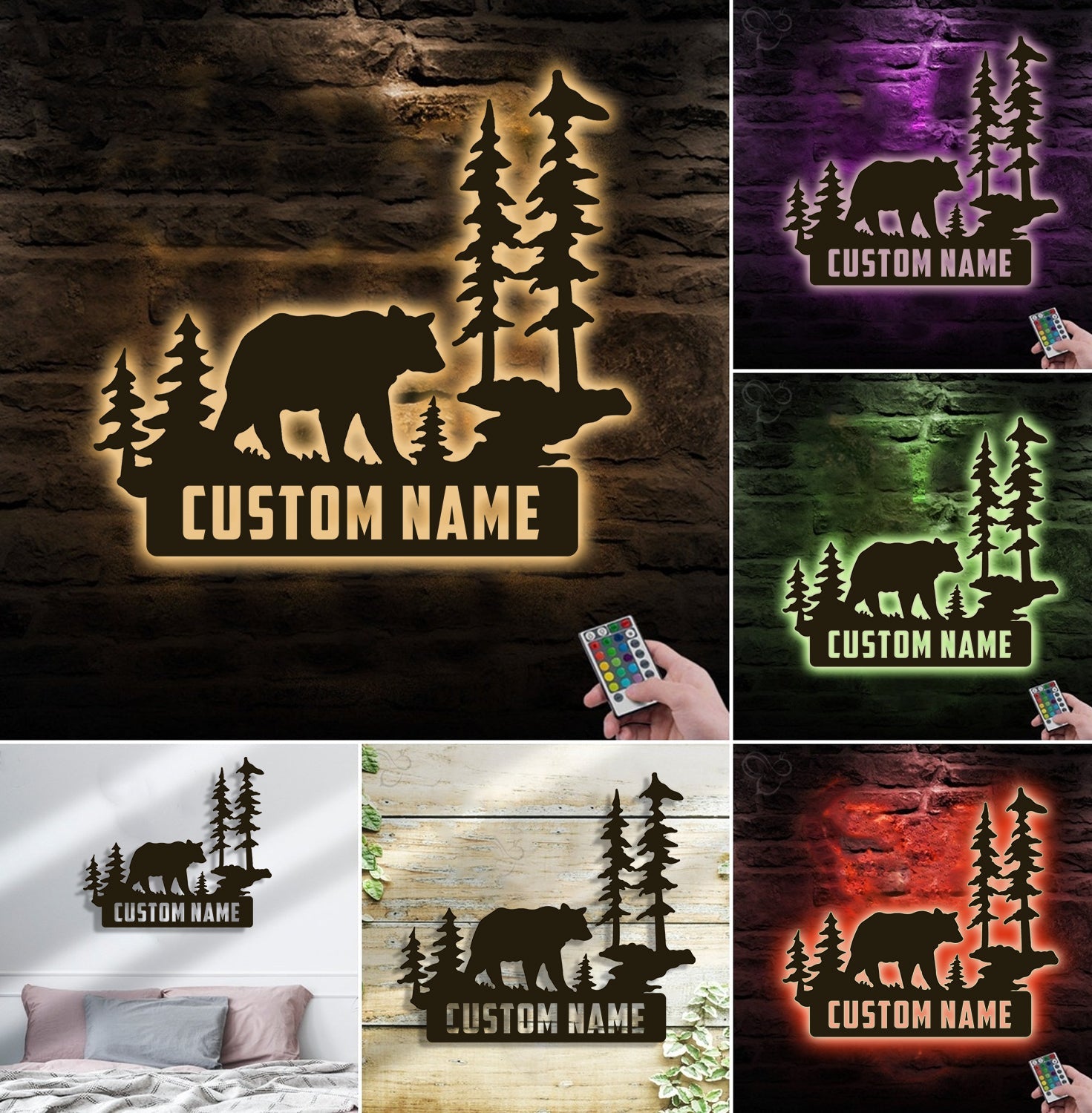 Personalized Bear Metal Sign WITH LED/WITHOUT LED Light Custom Name Mountain Scene Wall Art Cabin Lodge Rustic Decor Gift