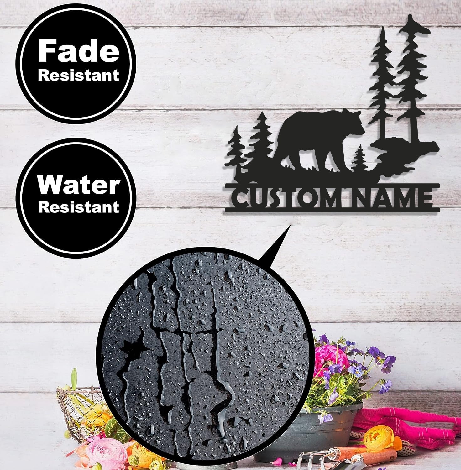 Personalized Bear Metal Sign WITH LED/WITHOUT LED - Rustic Cabin Name Sign, Wildlife Forest Wall Art for Lodge & Outdoor Decor