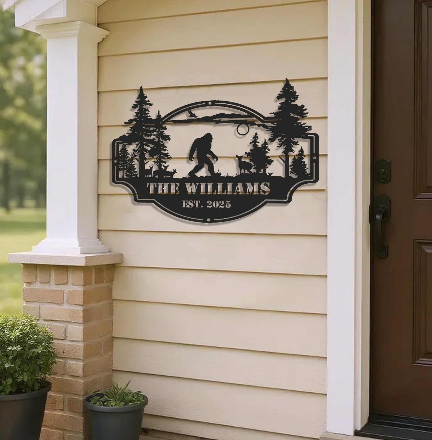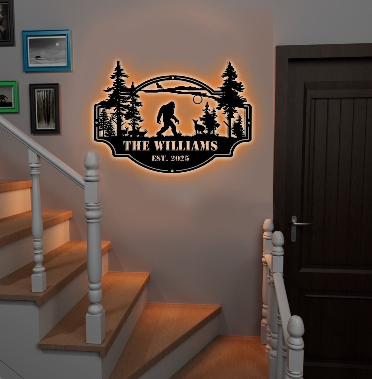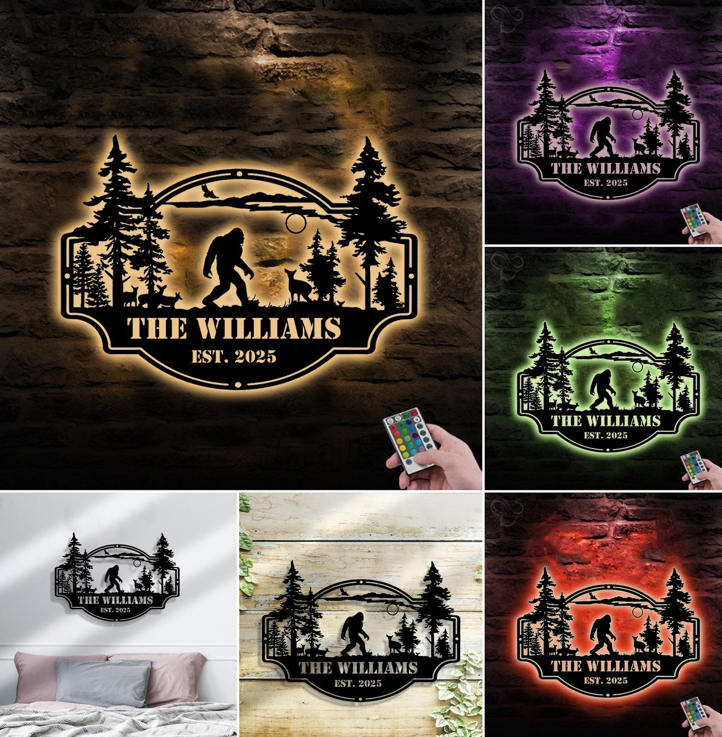 Personalized Bigfoot Metal Sign WITH LED/WITHOUT LED – Custom Name Sasquatch Wall Art, Cabin Lodge Family Name Sign, Rustic Outdoor Decor