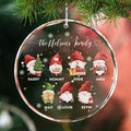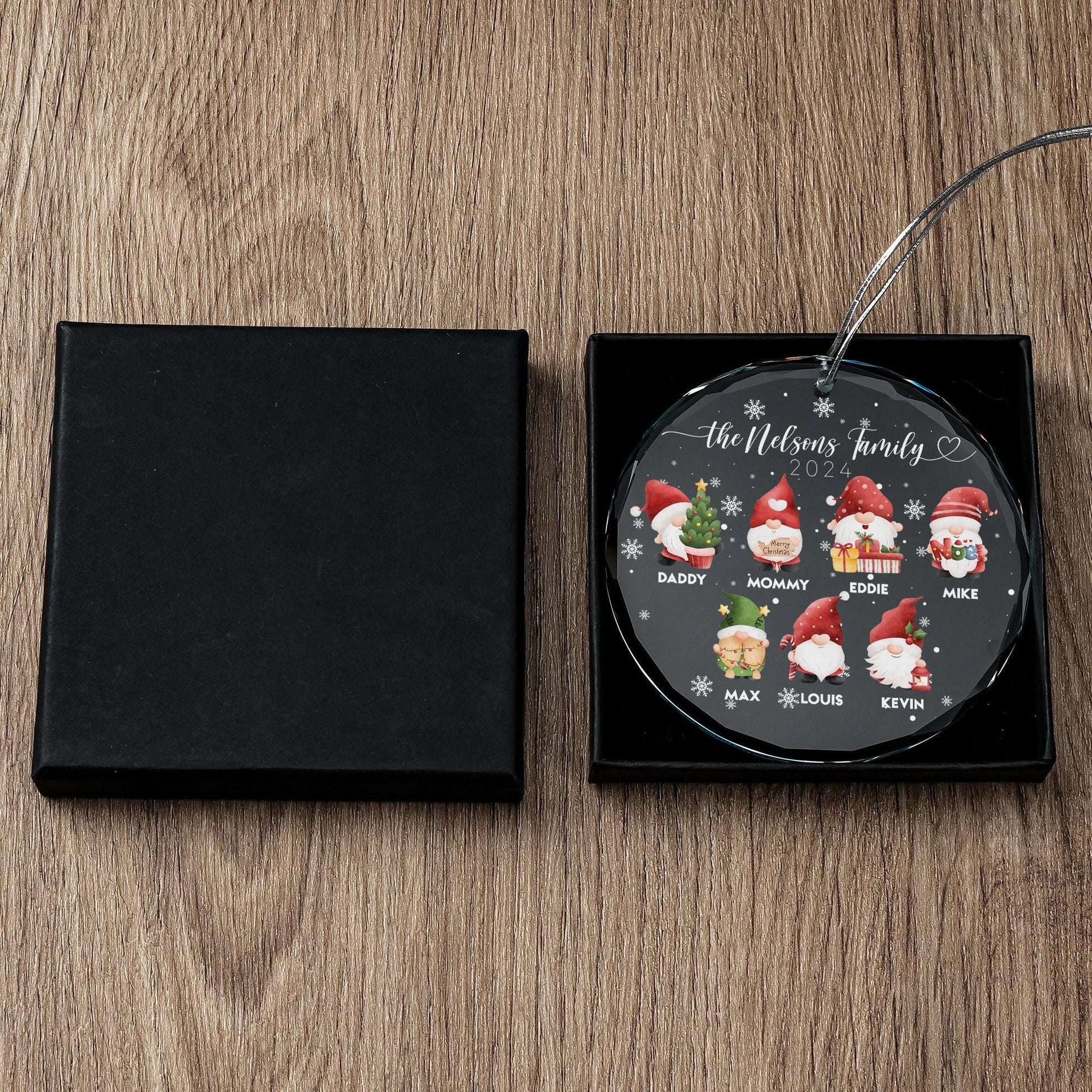 Personalized Christmas Gnome Family Glass Ornament with Names for Christmas Tree