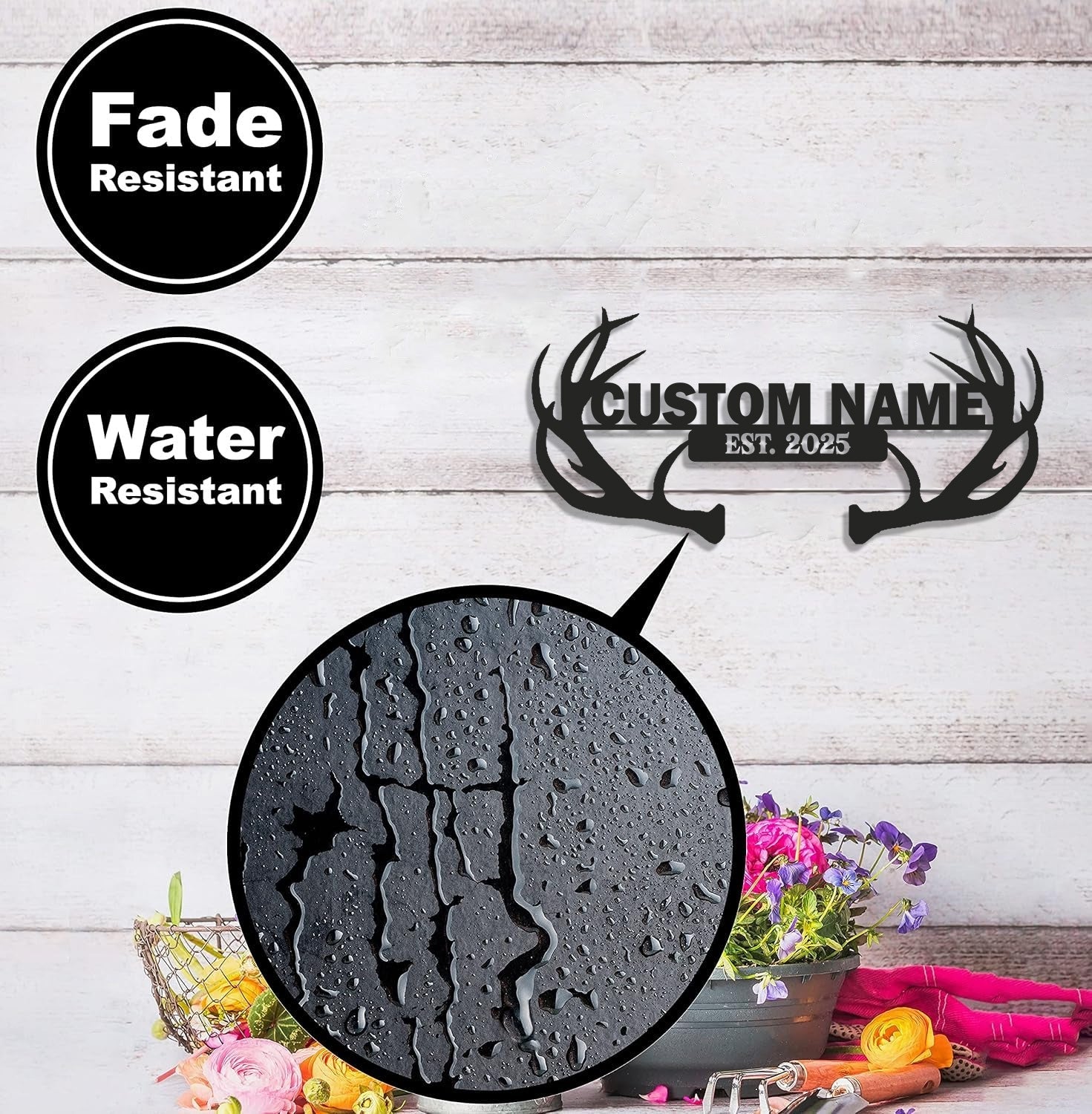Personalized Deer Antler Metal Sign WITH LED/WITHOUT LED - Rustic Cabin Name Sign, Hunter Lodge Established Wall Art