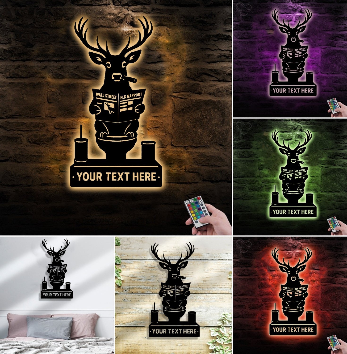 Personalized Deer Bathroom Humor Metal Sign WITH LED/WITHOUT LED, Rustic Hunting Cabin Wall Decor for Hunters, Funny Wildlife Toilet Art
