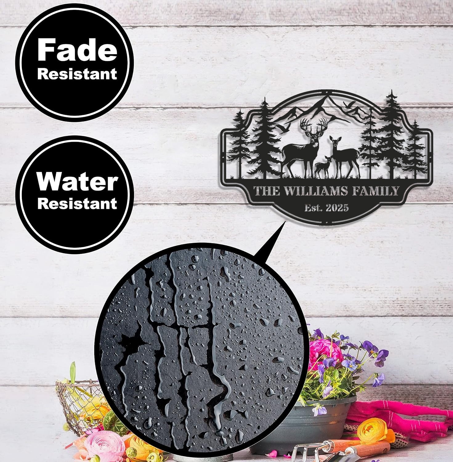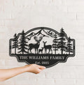 Personalized Deer Family Metal Sign WITH LED/WITHOUT LED - Rustic Cabin Wall Decor, Custom Name Hunting Lodge Sign