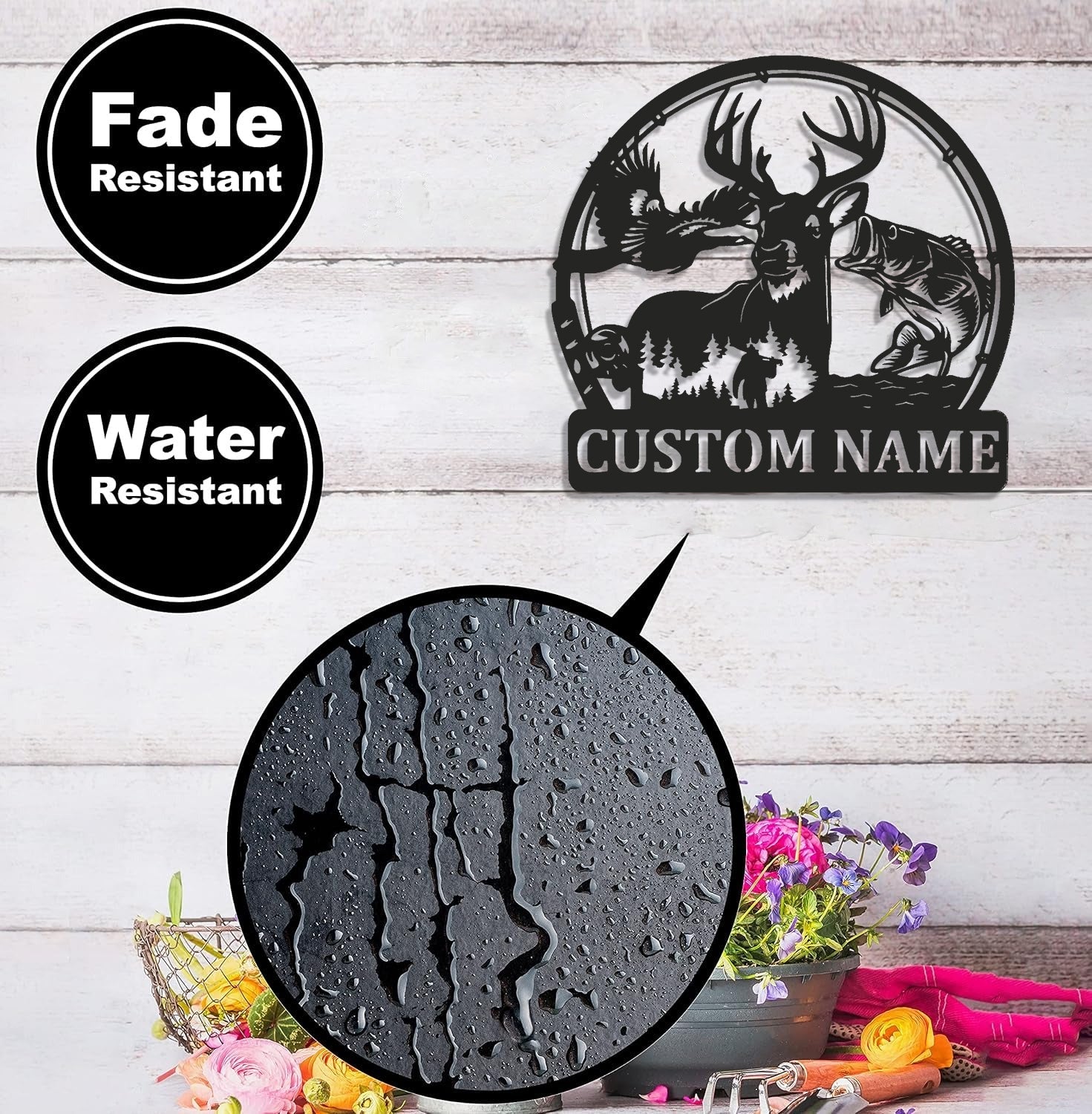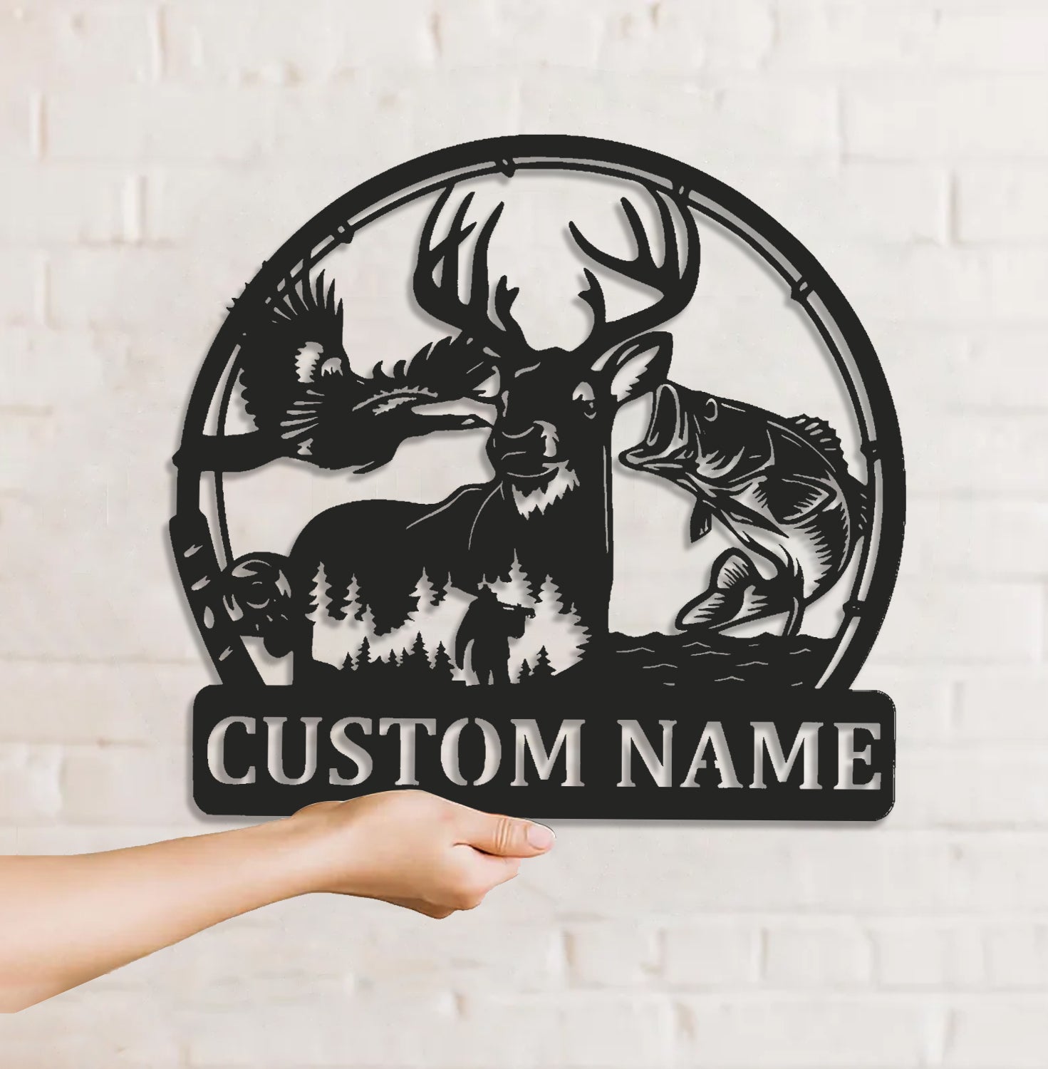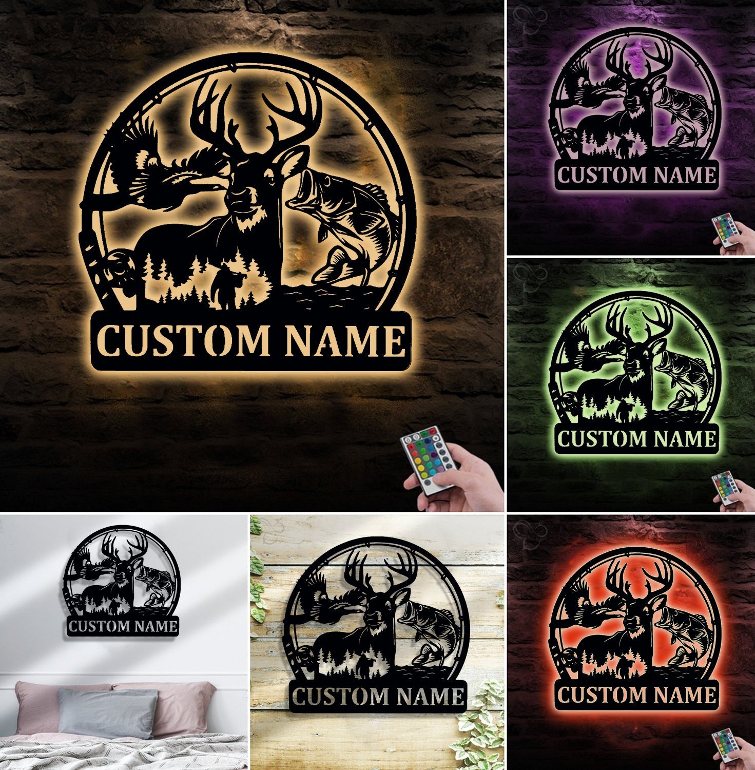Personalized Deer, Fish & Duck Hunting Metal Sign WITH LED/WITHOUT LED, Rustic Wildlife Wall Decor for Cabin, Lodge, or Mancave