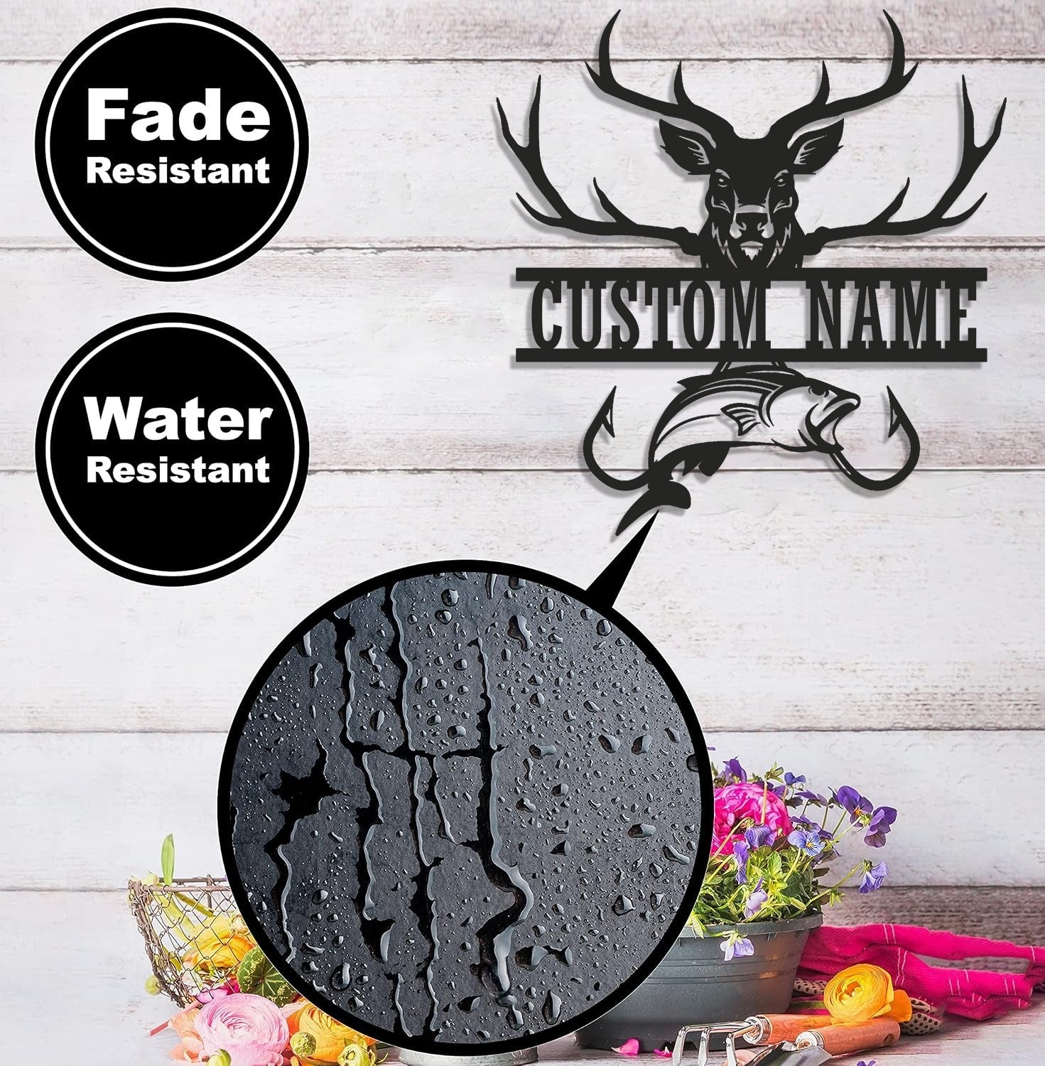 Personalized Deer & Fish Metal Sign WITH LED/WITHOUT LED Light Rustic Cabin Wall Decor Hunter Fisher Gift