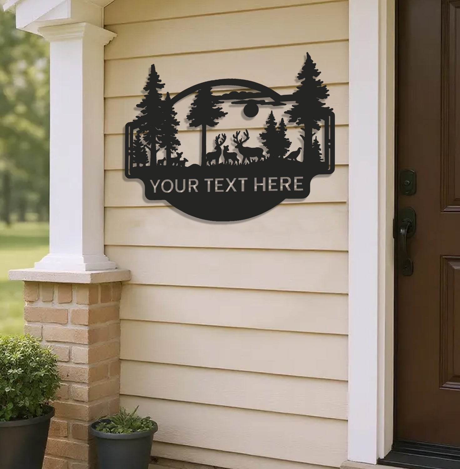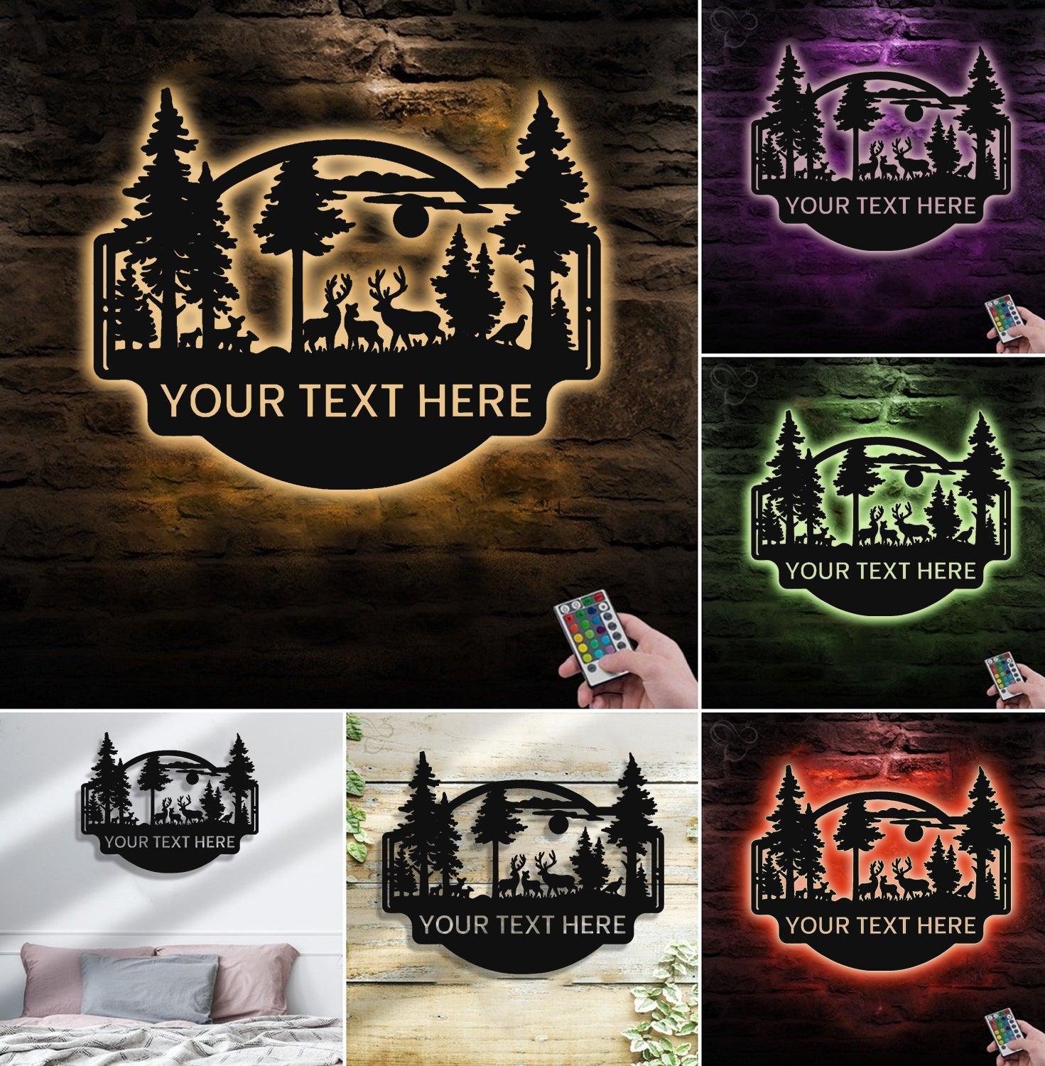 Personalized Deer Forest Metal Sign WITH LED/WITHOUT LED, Rustic Hunting Cabin Wall Decor, Wildlife Scene for Lodge or Mancave