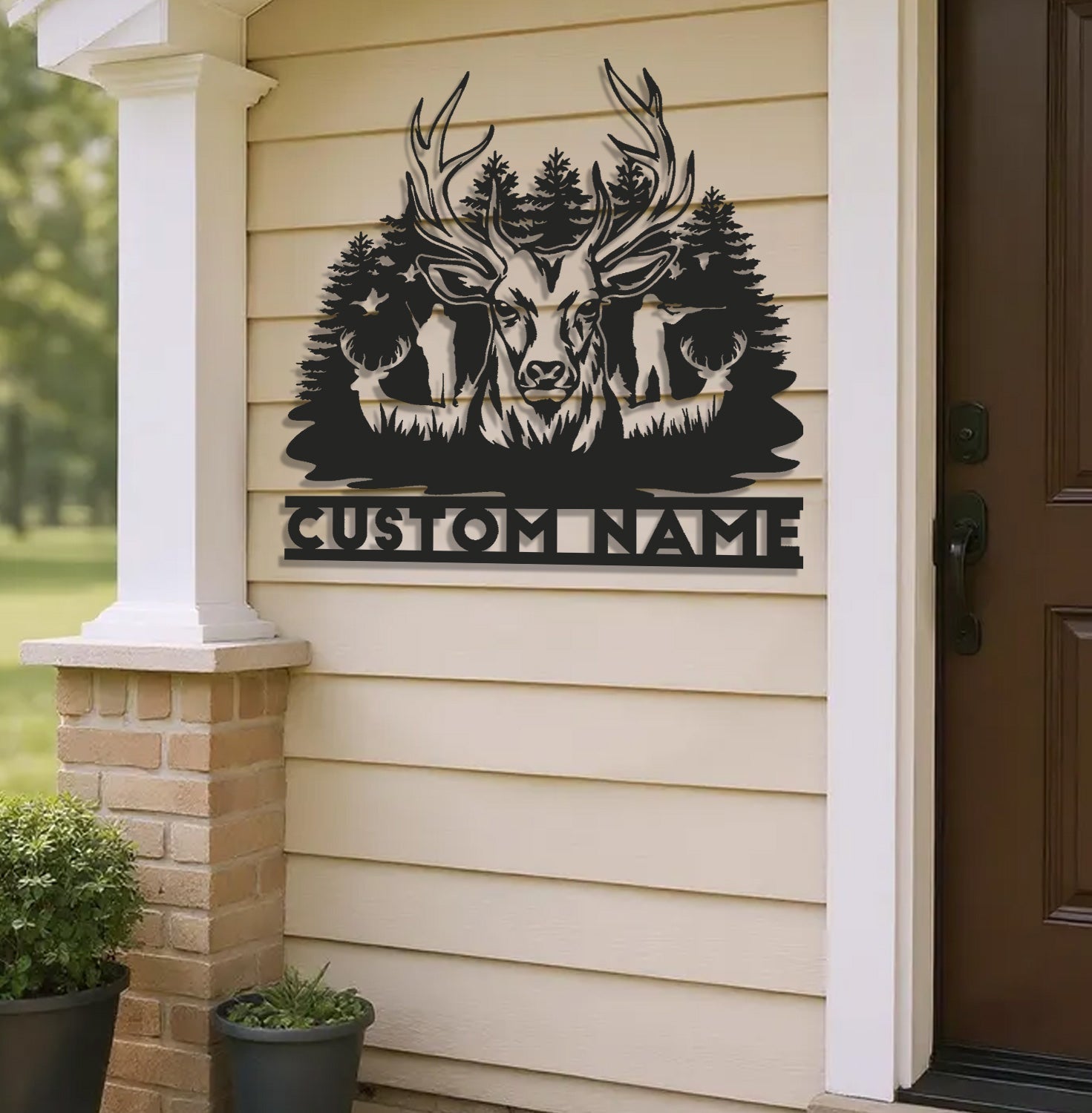 Personalized Deer Hunting Metal Sign WITH LED/WITHOUT LED – Custom Name Buck Wall Art, Rustic Cabin & Lodge Decor for Hunters