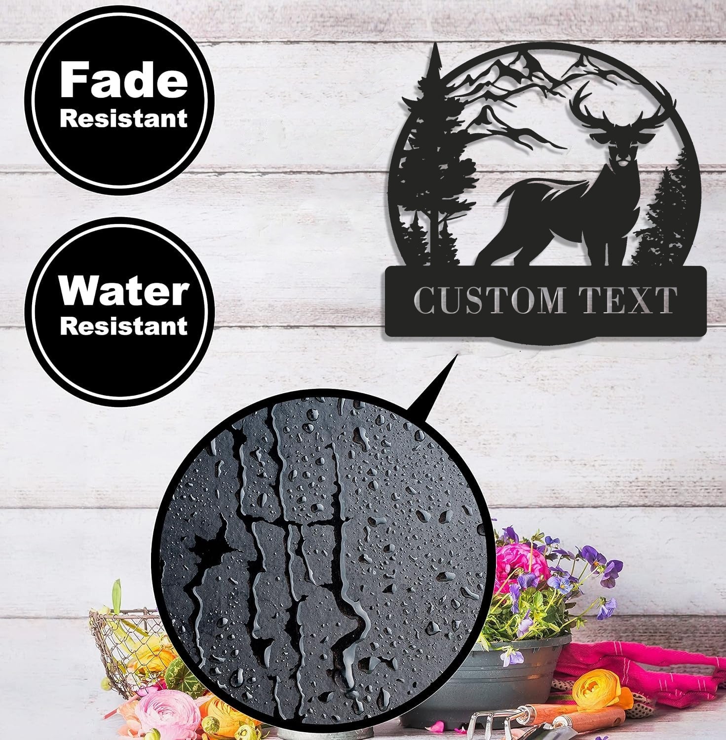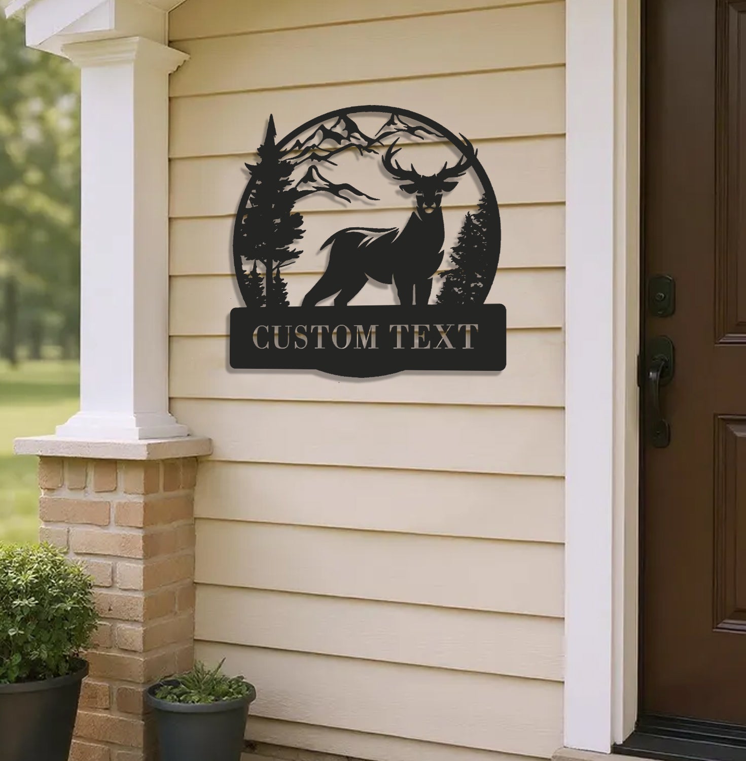 Personalized Deer Hunting Metal Sign WITH LED/WITHOUT LED Light Mountain Scene Custom Text Rustic Wall Art Gift