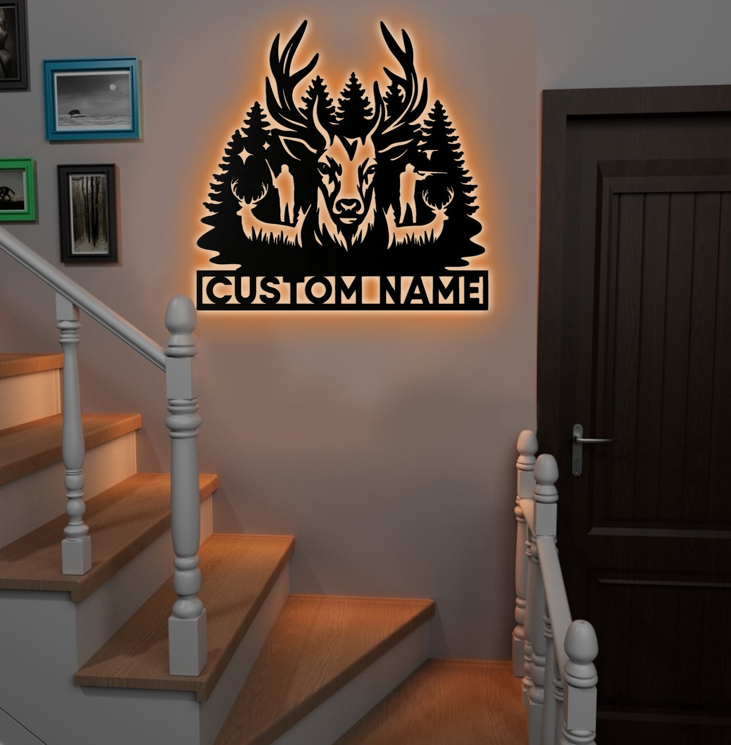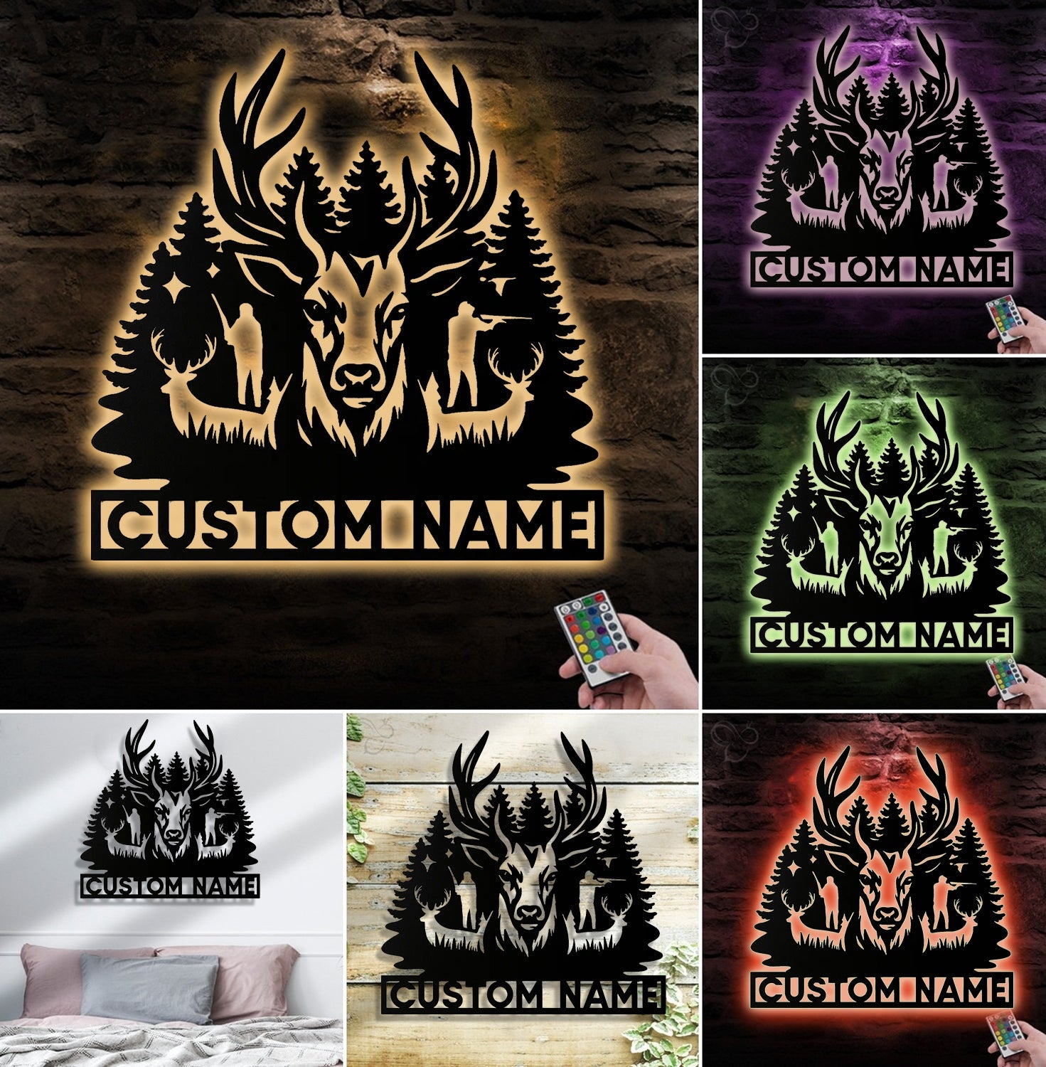 Personalized Deer Hunting Metal Sign WITH LED/WITHOUT LED – Rustic Cabin Wall Decor, Gift for Hunters