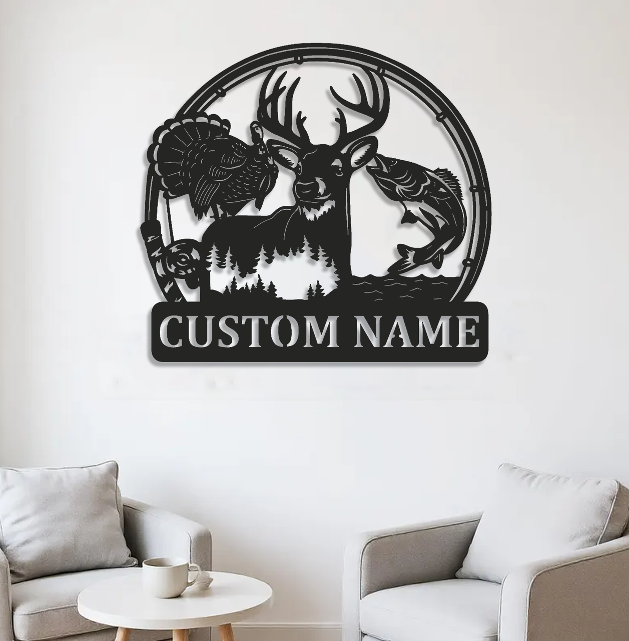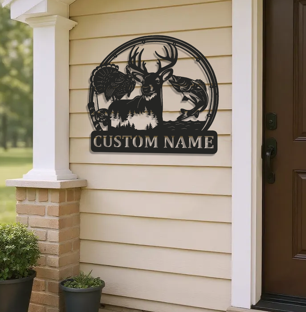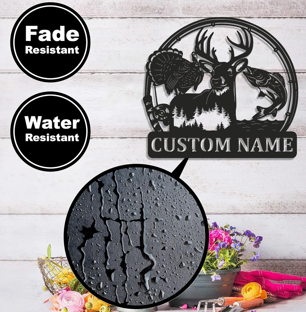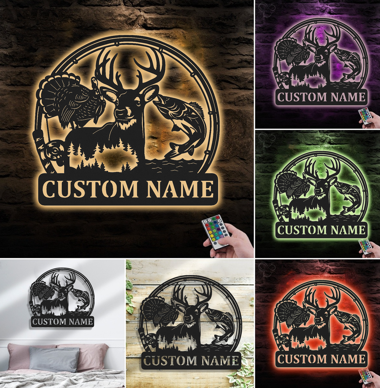 Personalized Deer Hunting Metal Sign WITH LED/WITHOUT LED – Rustic Lodge Wall Art, Buck, Turkey & Fish Wildlife Decor, Custom Name Gift