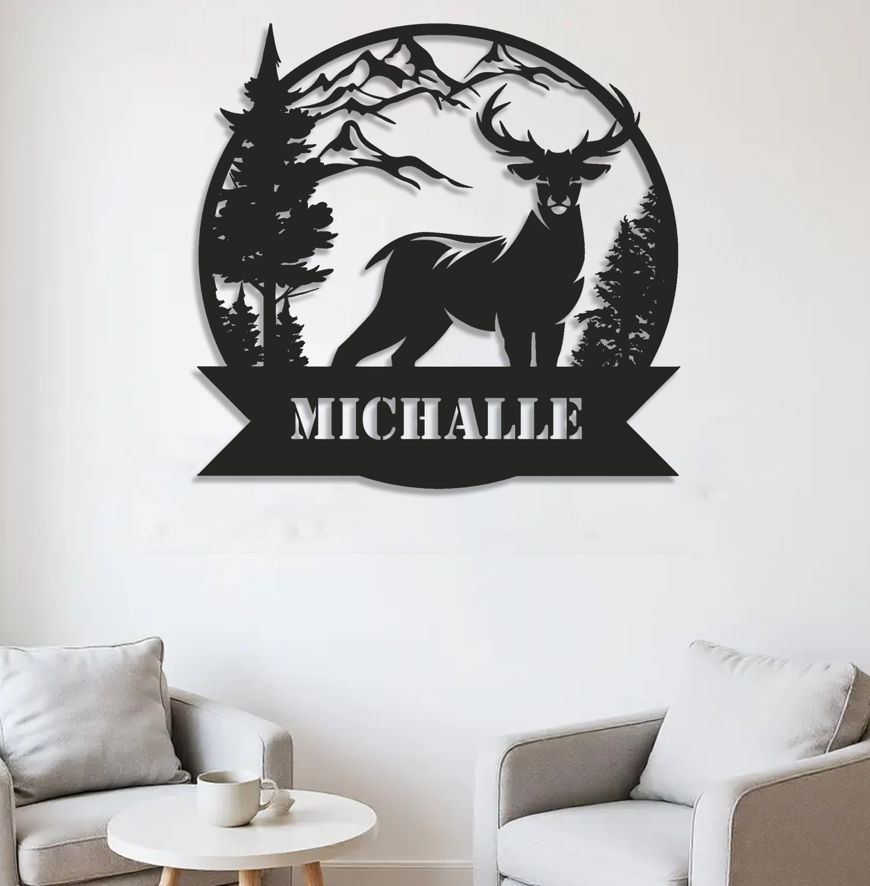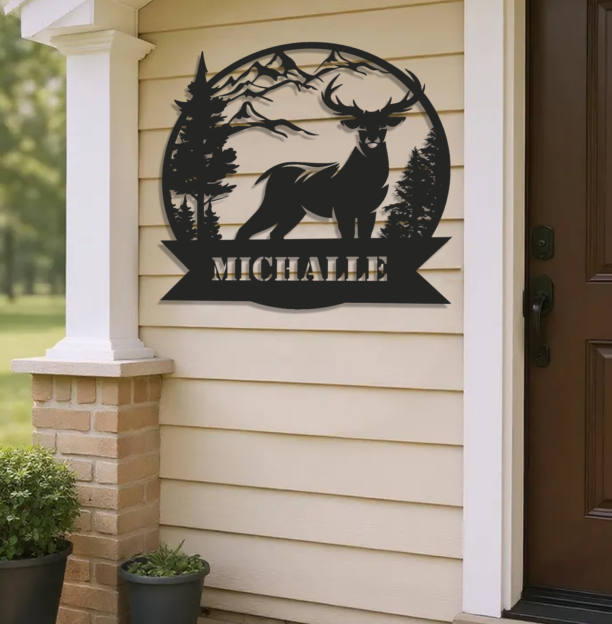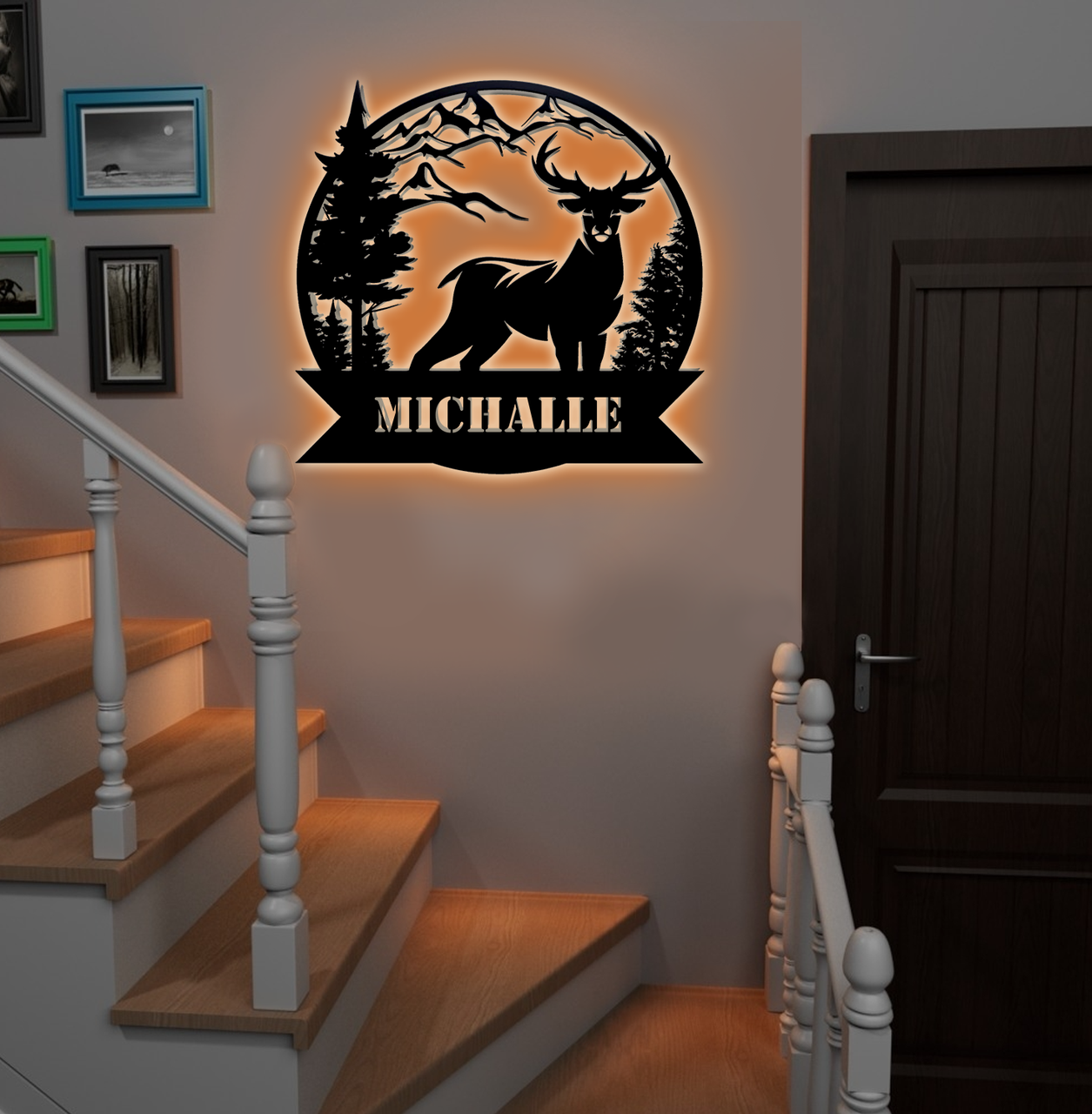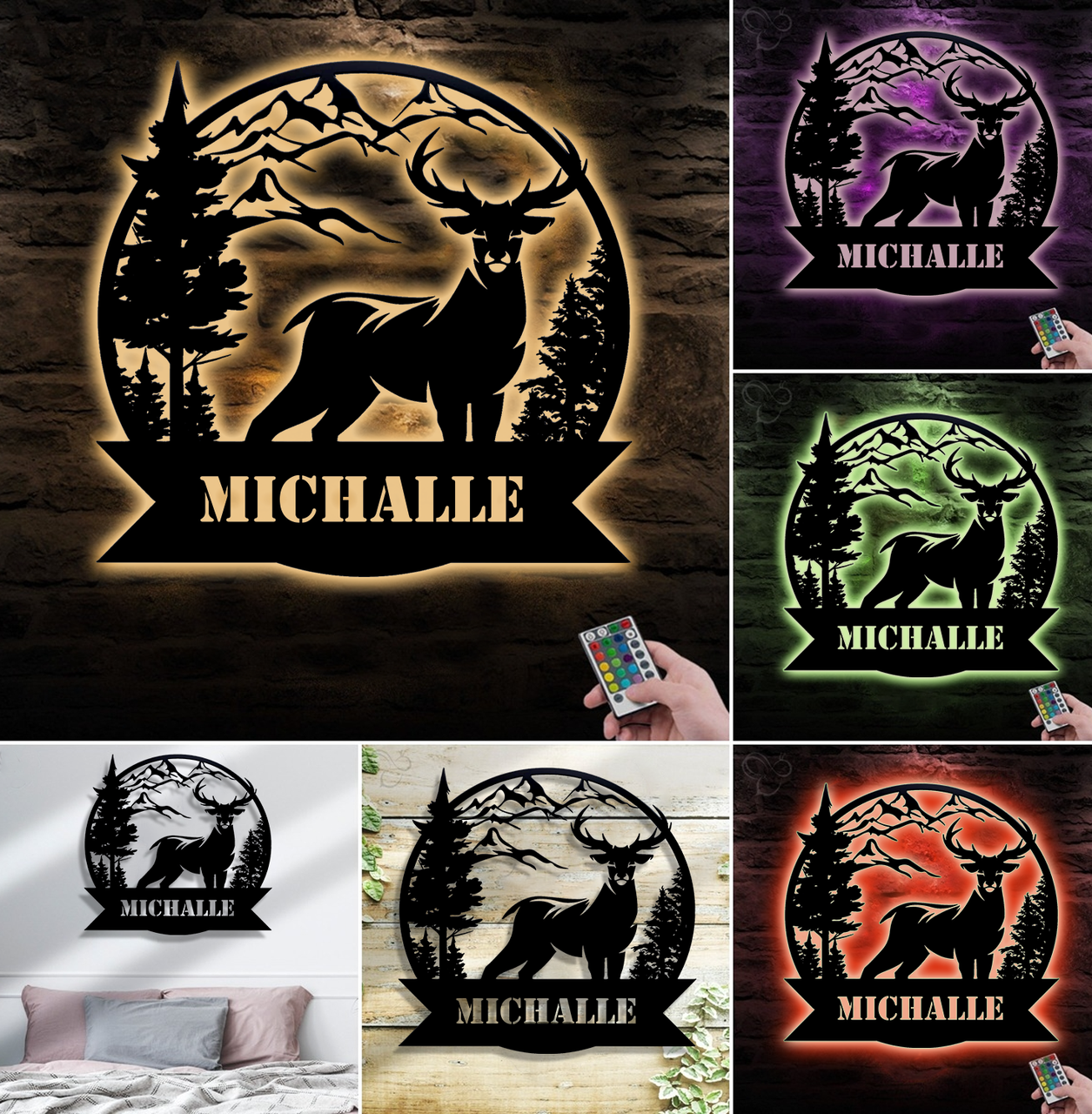 Personalized Deer Metal Sign WITH LED/WITHOUT LED – Custom Name Buck Wall Art, Rustic Hunting Lodge & Cabin Decor