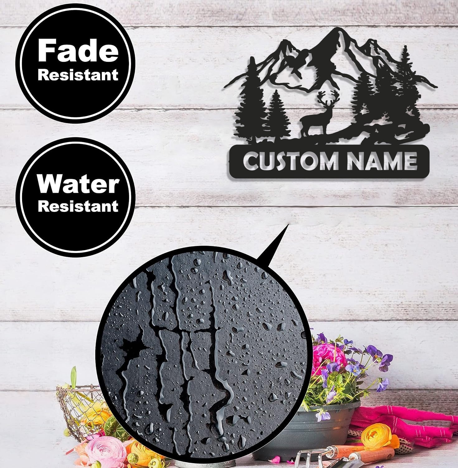 Personalized Deer Metal Sign WITH LED/WITHOUT LED - Mountain Cabin Name Sign, Rustic Wildlife Wall Art for Lodge & Outdoor Decor