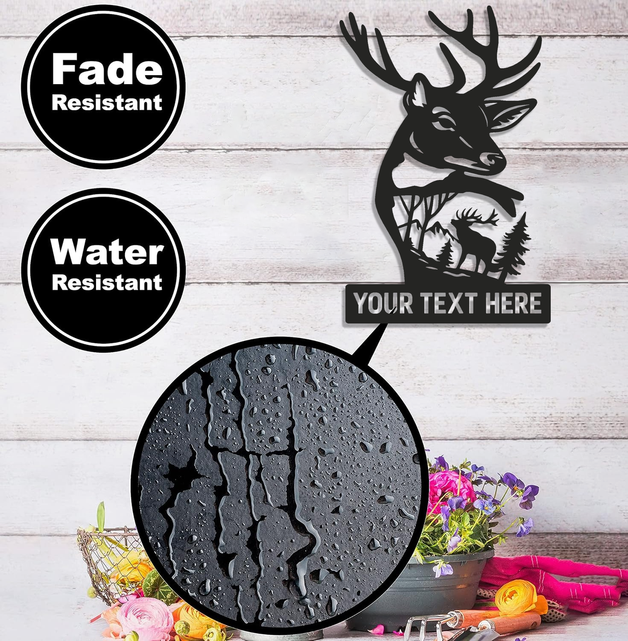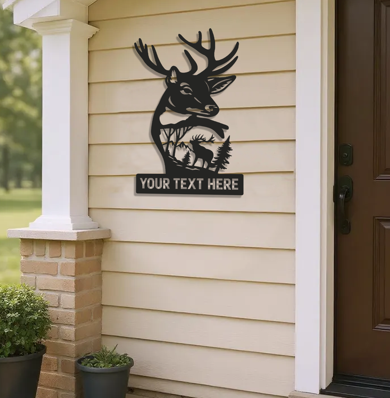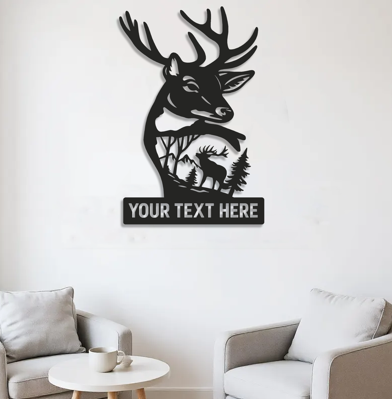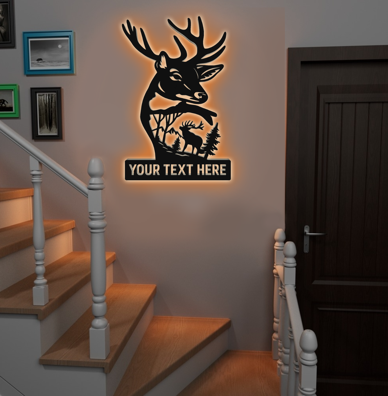 Personalized Deer Metal Sign WITH LED/WITHOUT LED – Rustic Hunting Lodge Wall Art, Buck Silhouette & Forest Scene, Custom Name Cabin Decor