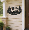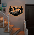 Personalized Deer Metal Sign WITH LED/WITHOUT LED - Rustic Wildlife Scene Cabin Name Sign, Family Lodge Outdoor Wall Art