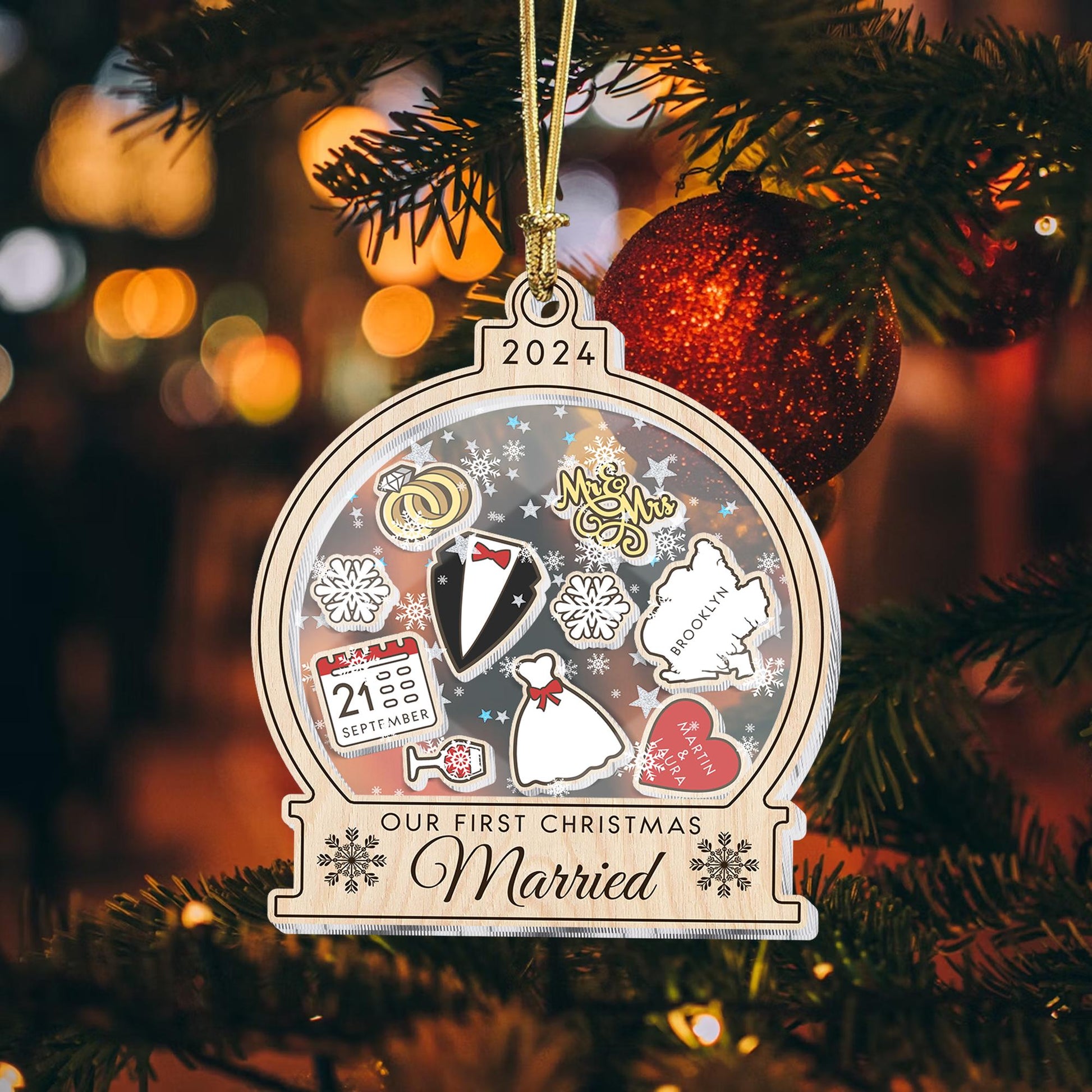 Personalized First Christmas Married 4D Shaker Ornament, Christmas Decoration Romantic Gifts for Mr & Mrs, Couples Gift