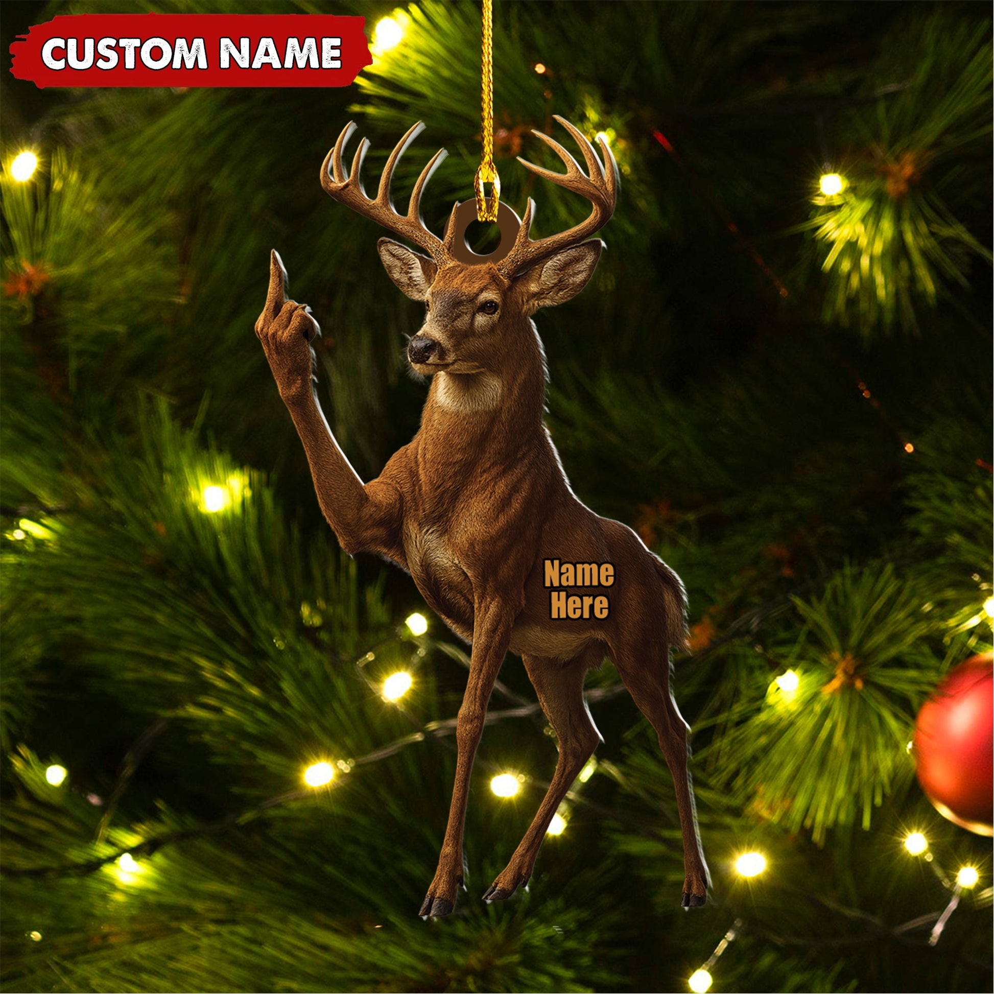 Personalized Funny Deer Buck Fukin' Finger Hunting Acrylic Christmas Ornament – Custom Gift for Hunters