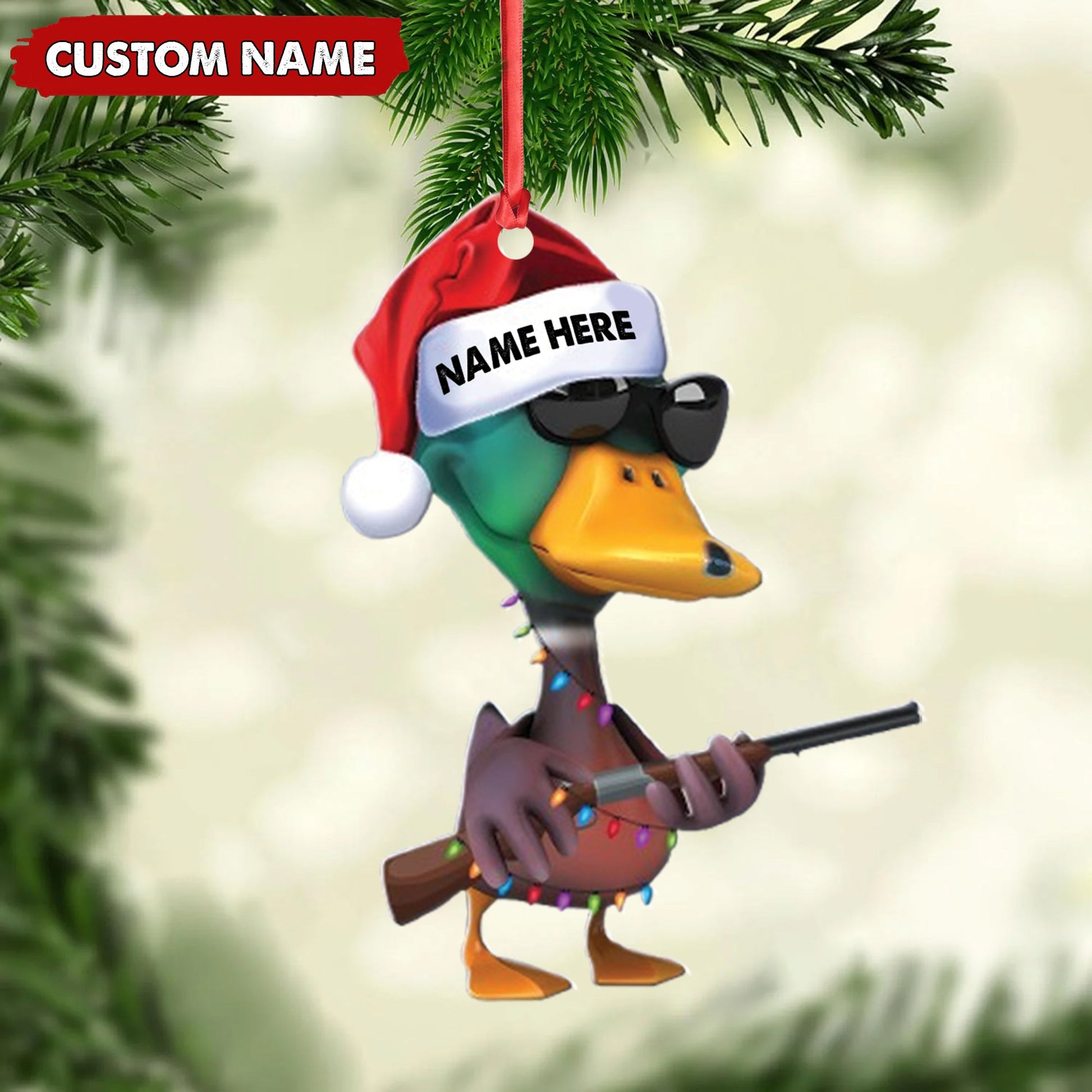 Personalized Funny Duck Hunting Acrylic Christmas Ornament – Custom Gift for Hunters & Outdoor Lovers