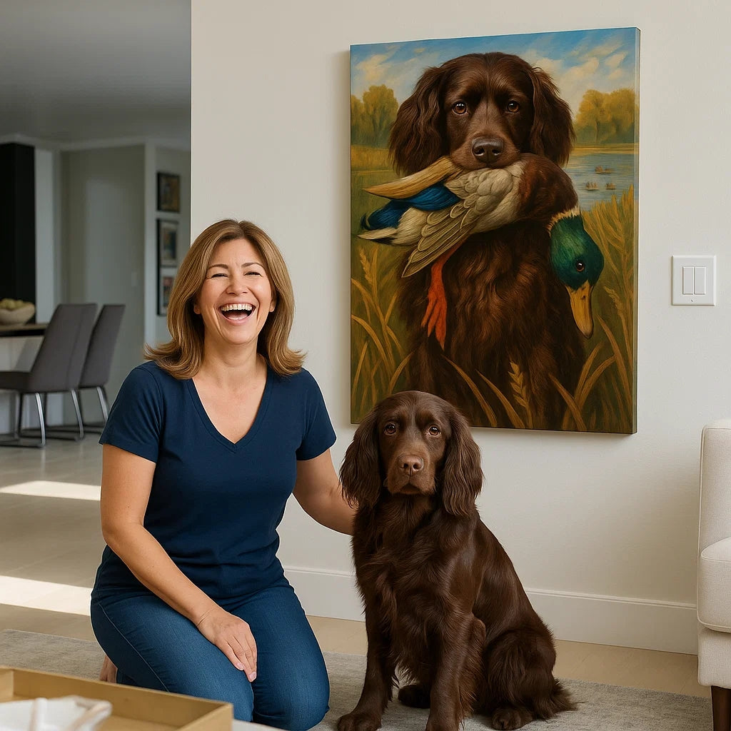 Personalized Hunting Dog Canvas – Custom Golden Retriever Dog Wall Art With Duck