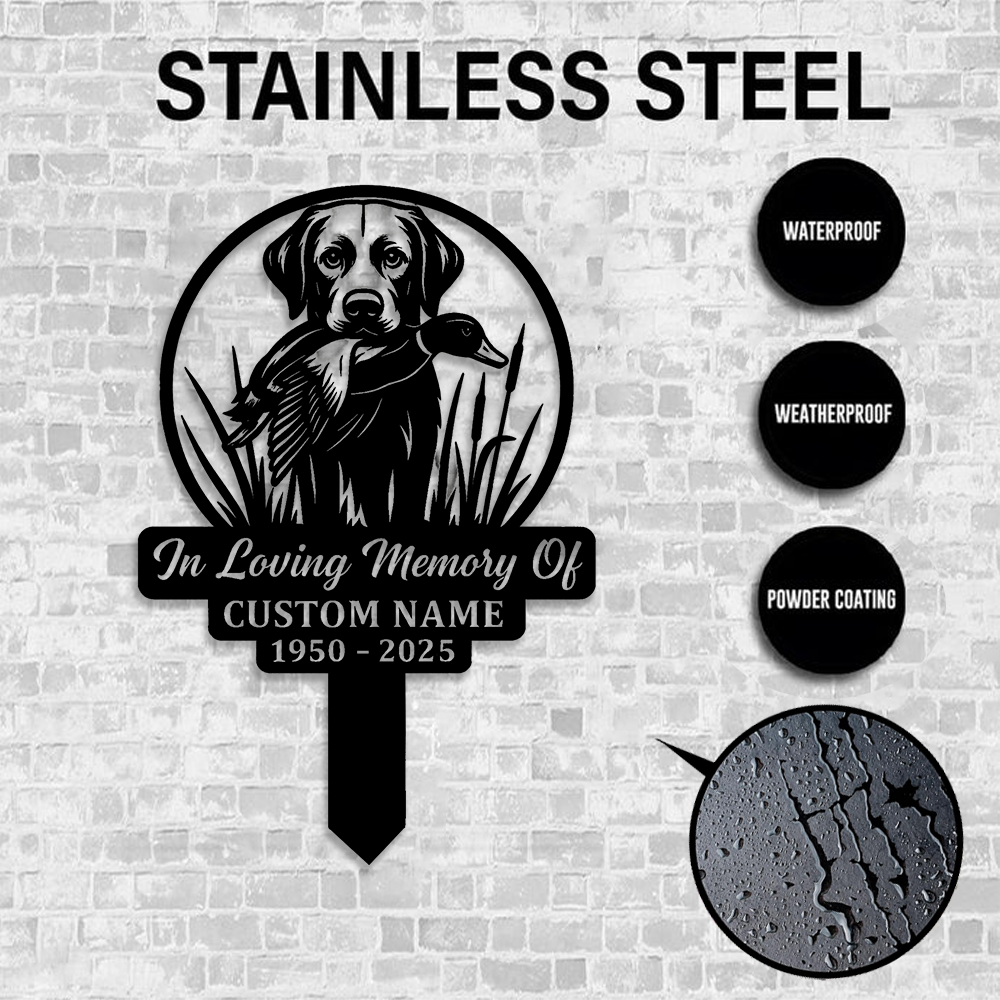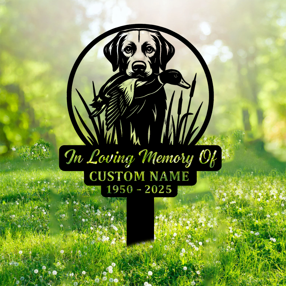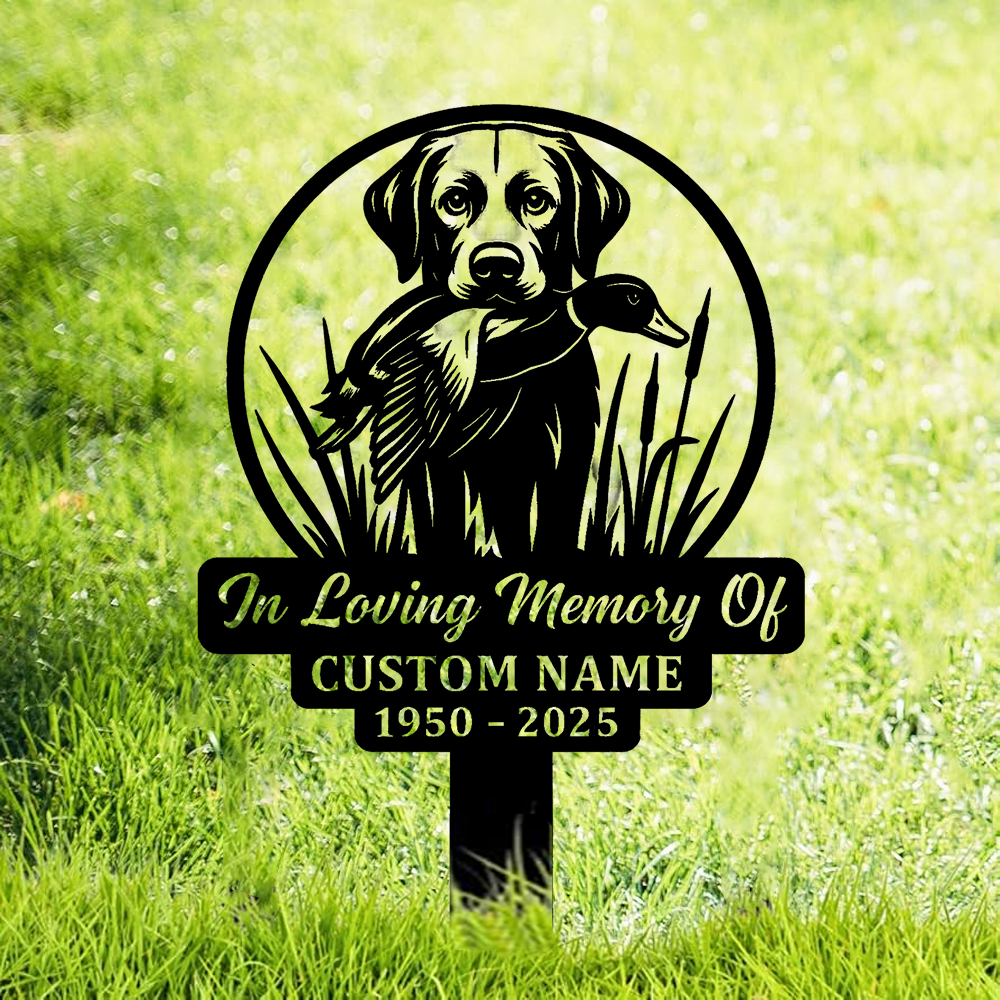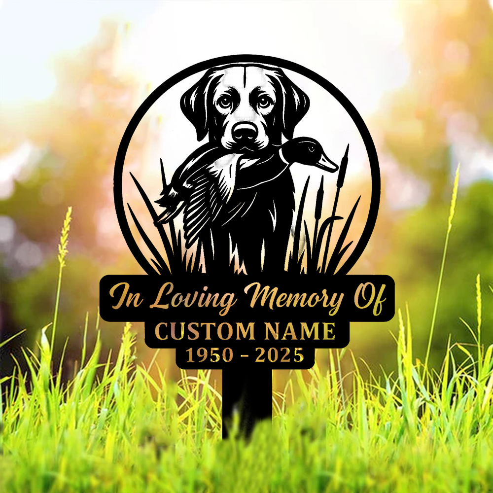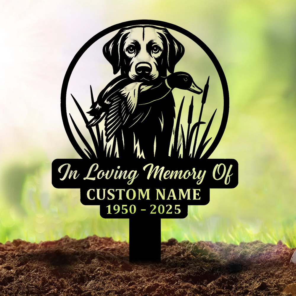 Personalized Hunting Dog Memorial Metal Sign – In Loving Memory Grave Marker with Duck Design