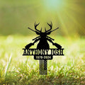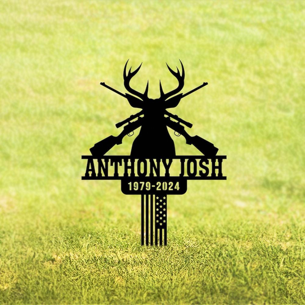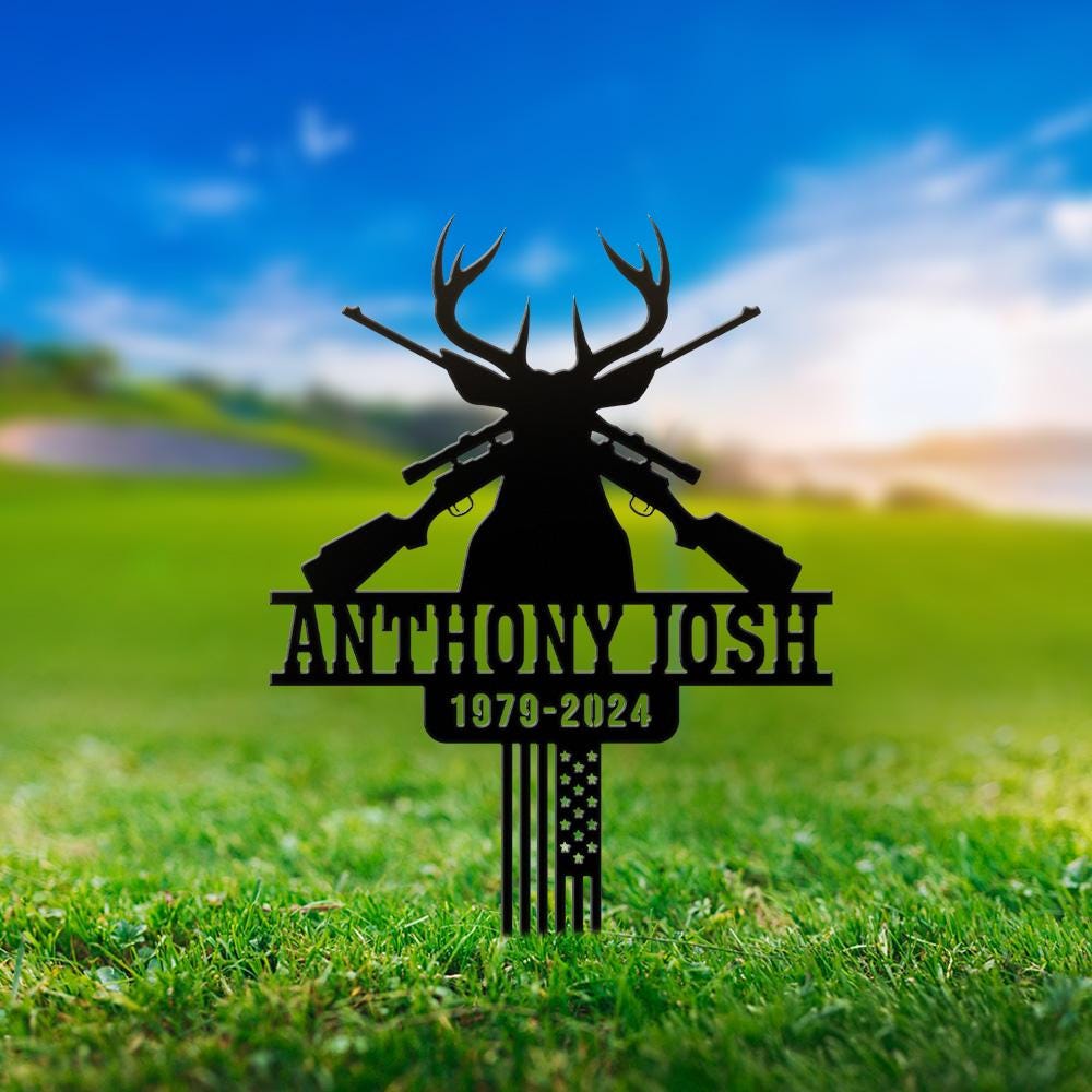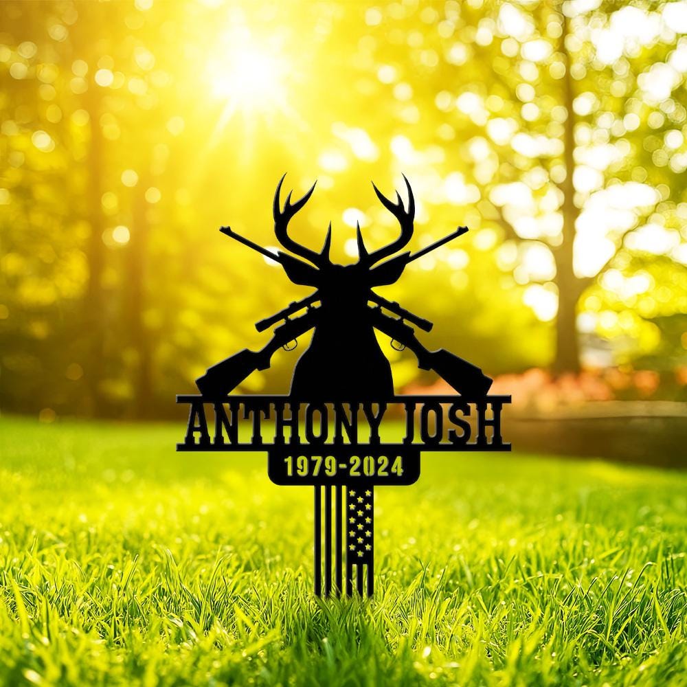 Personalized Hunting Memorial Metal Stake Grave Marker, Loss of Papa Pop Pop, Deer Hunter Tribute Sign, Outdoor Yard Decor, American Flag
