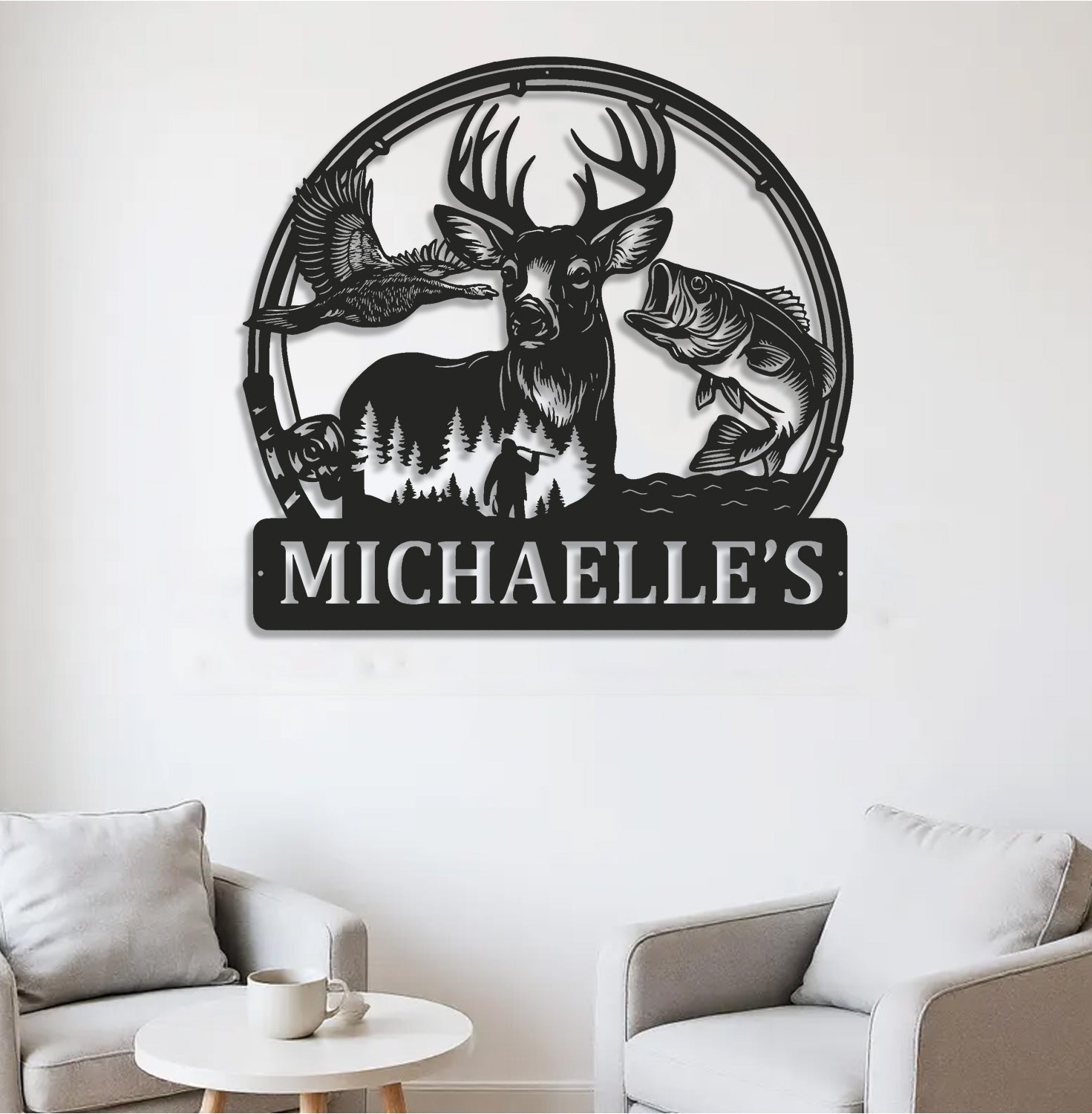 Personalized Hunting Metal Sign WITH LED/WITHOUT LED - Deer, Duck & Fish Wildlife Wall Art, Rustic Cabin Decor for Hunters