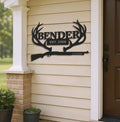 Personalized Metal Sign WITH LED/WITHOUT LED – Deer Antler Hunting Wall Decor with Rifle – Custom Rustic Cabin Sign for Hunters