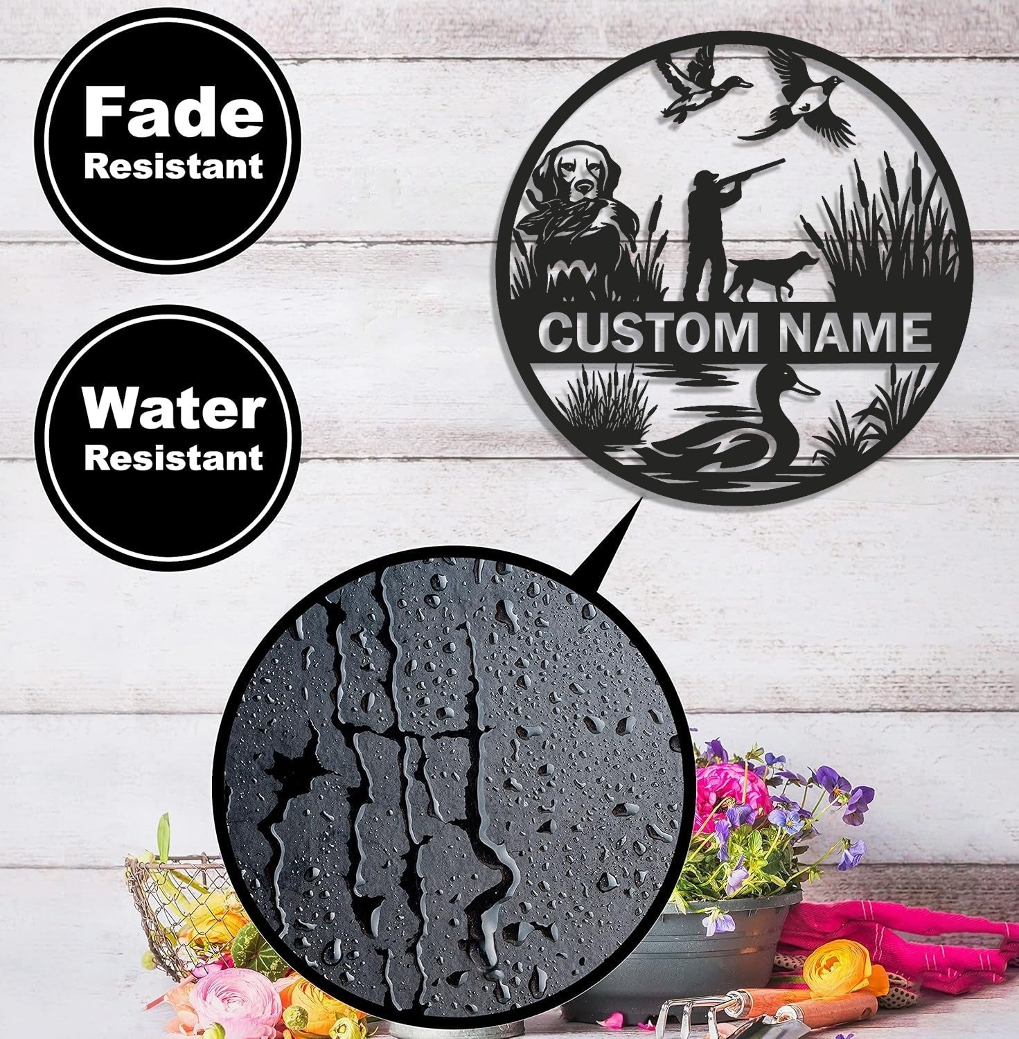 Personalized Metal Sign WITH LED/WITHOUT LED – Duck Hunting Scene with Dog and Hunter – Custom Rustic Wall Decor for Cabin and Lodge