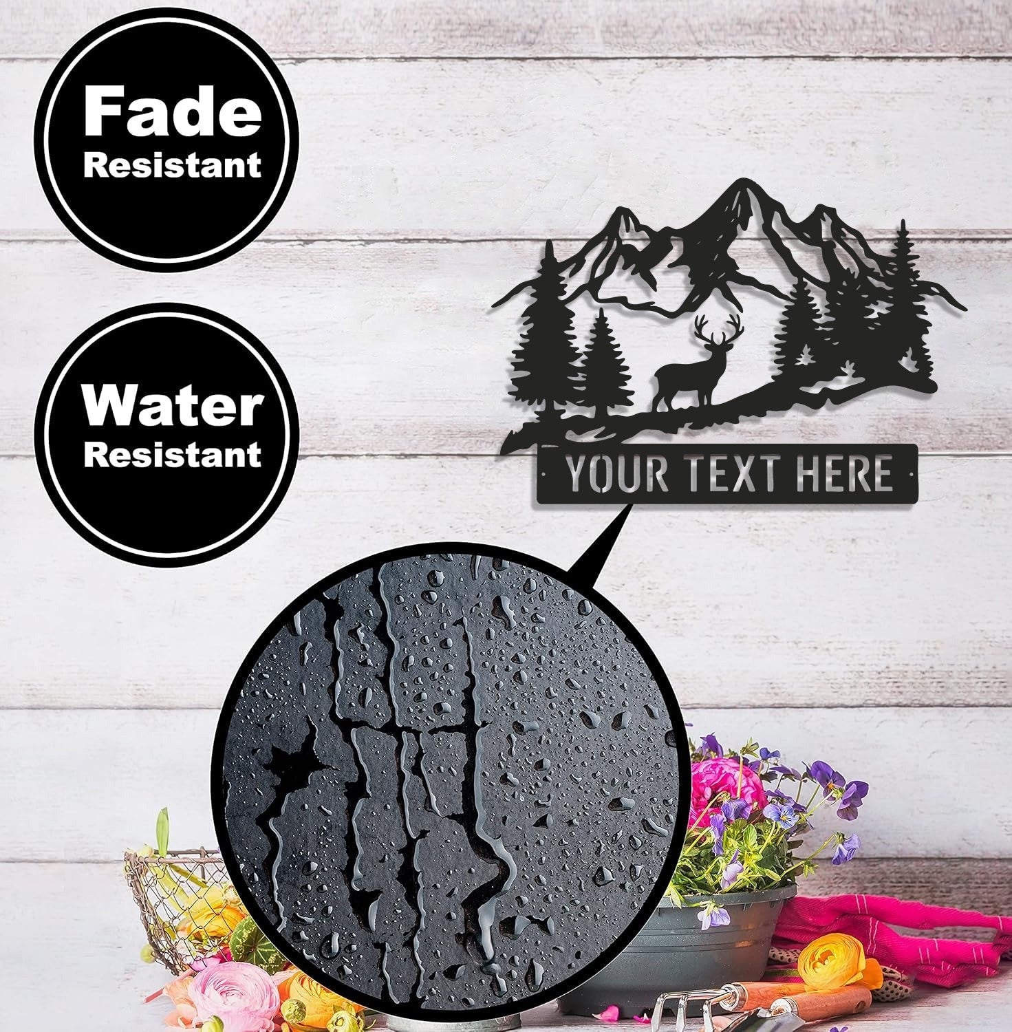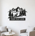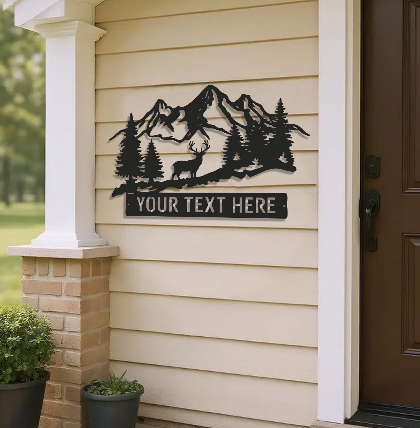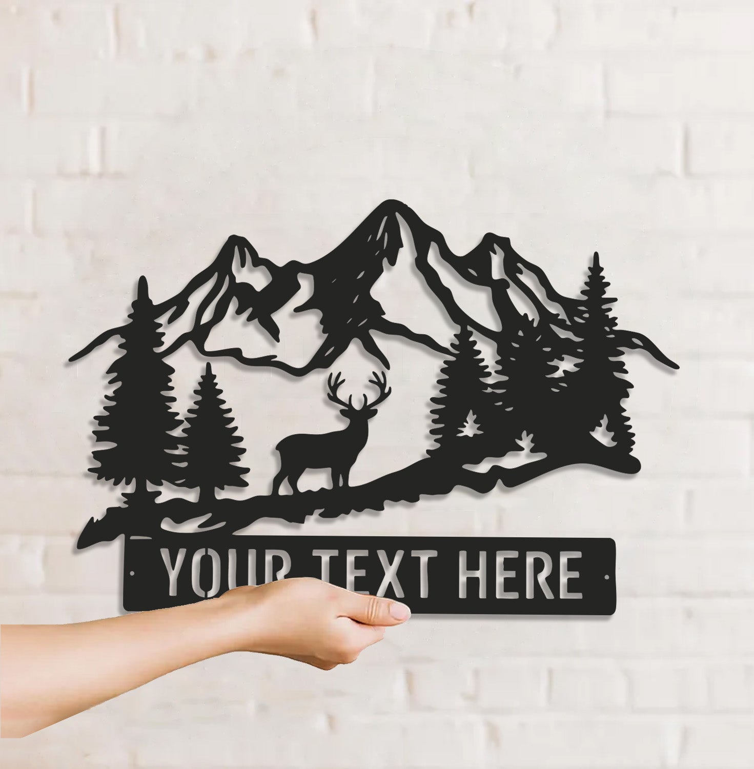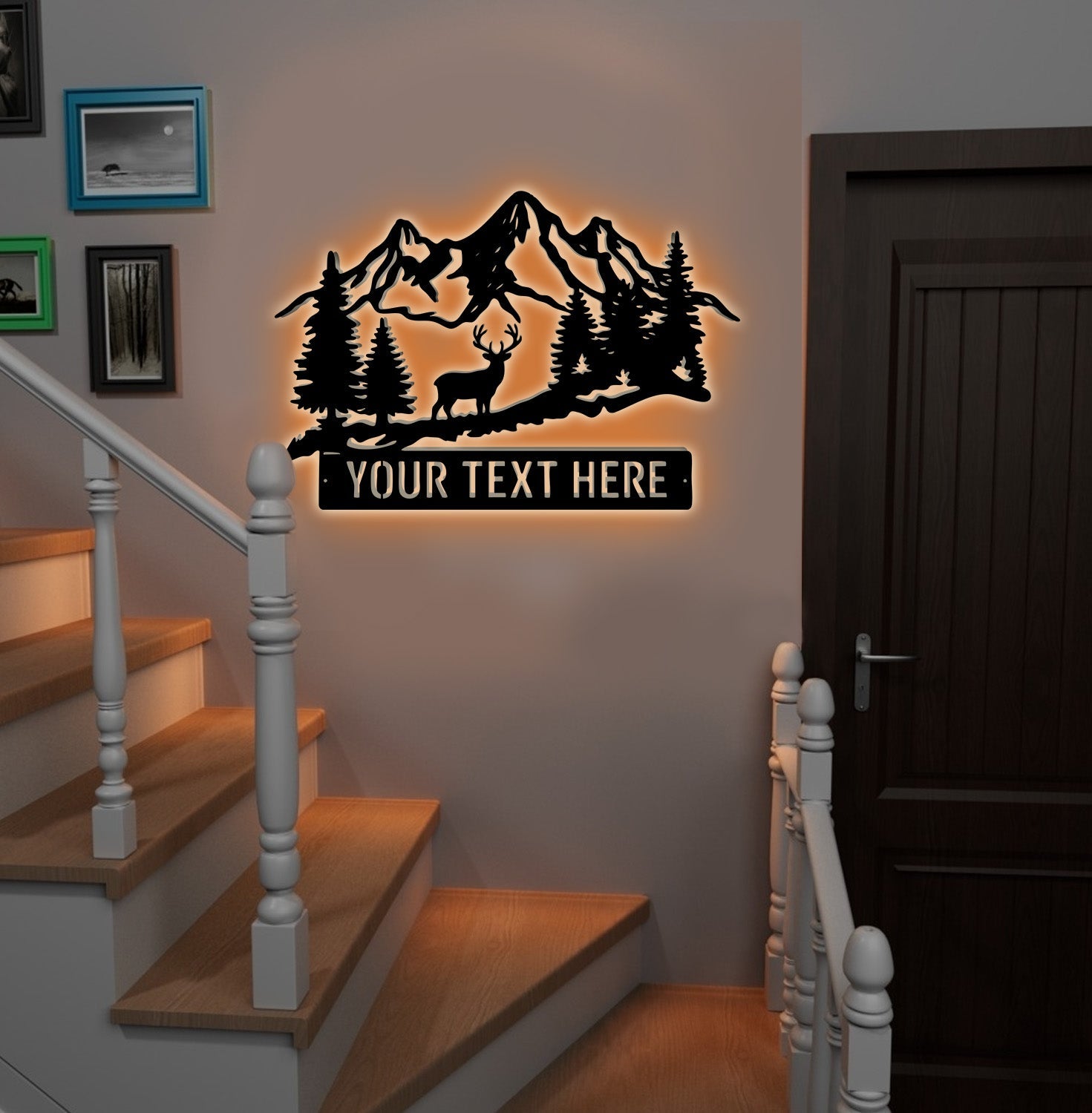 Personalized Mountain Deer Metal Sign WITH LED/WITHOUT LED, Rustic Forest Scene Wall Art, Cabin Hunting Decor for Outdoor Lovers