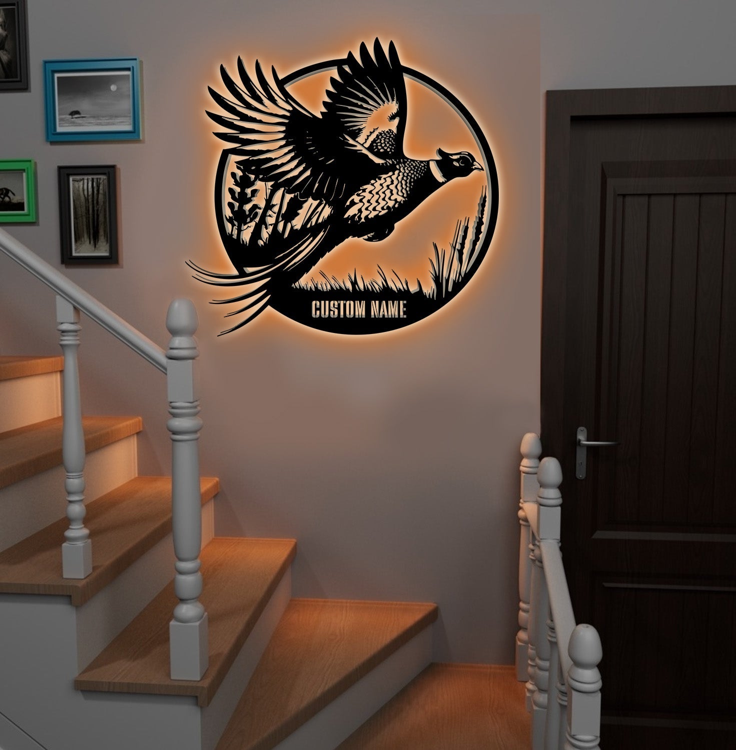 Personalized Pheasant WITH/WITHOUT Led Light Metal Sign – Custom Hunting Decor for Home, Cabin & Lodge