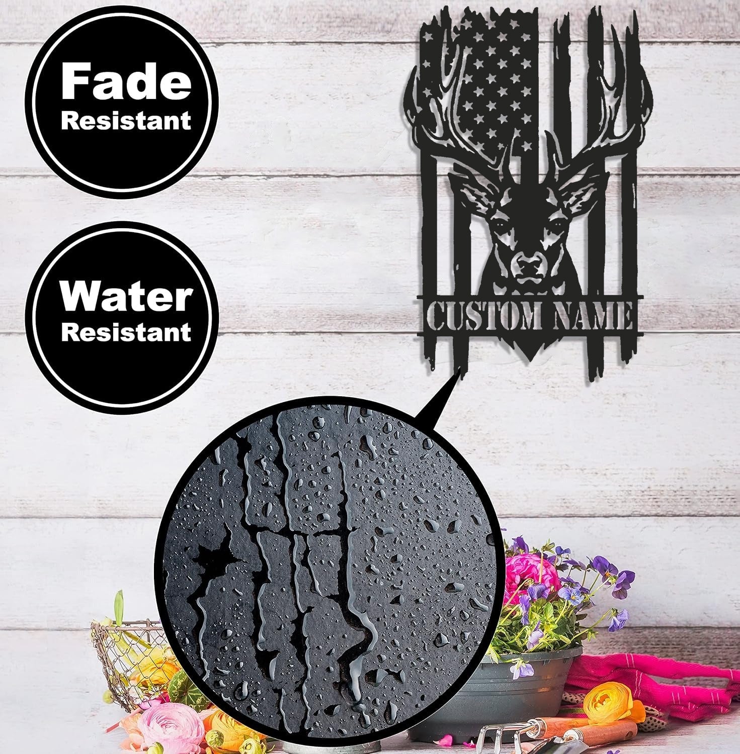 Personalized Vertical American Flag Deer Hunting Metal Sign WITH LED/WITHOUT LED Light Rustic Lodge Wall Decor