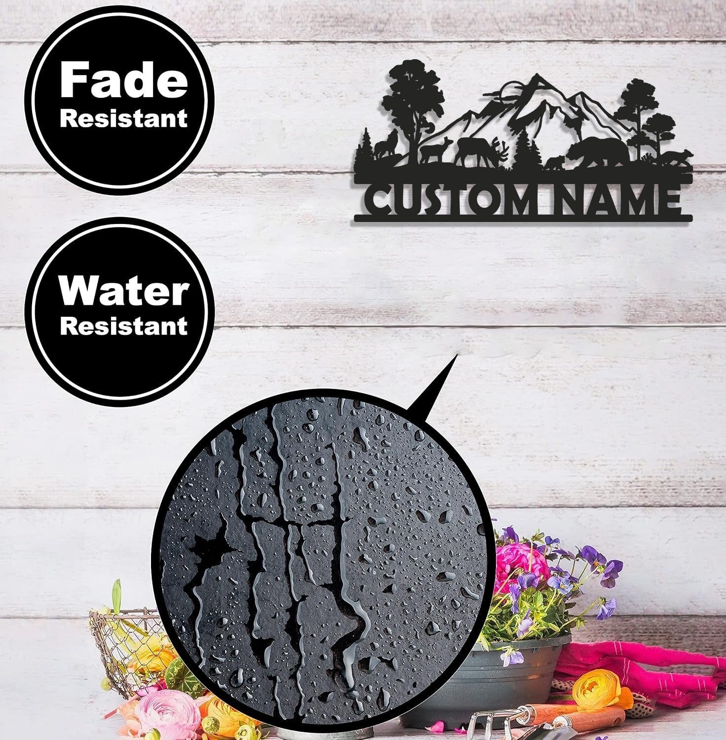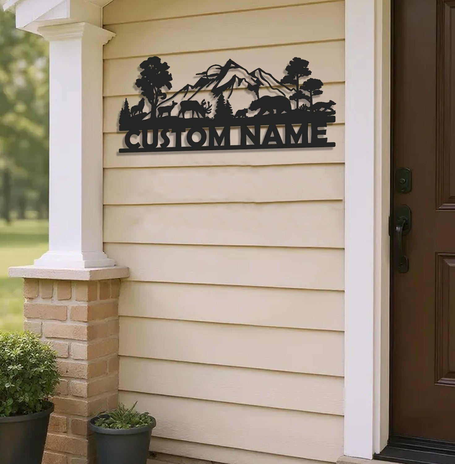 Personalized Wildlife Metal Sign WITH LED/WITHOUT LED - Rustic Cabin Name Sign with Deer & Bear, Mountain Lodge Outdoor Wall Art