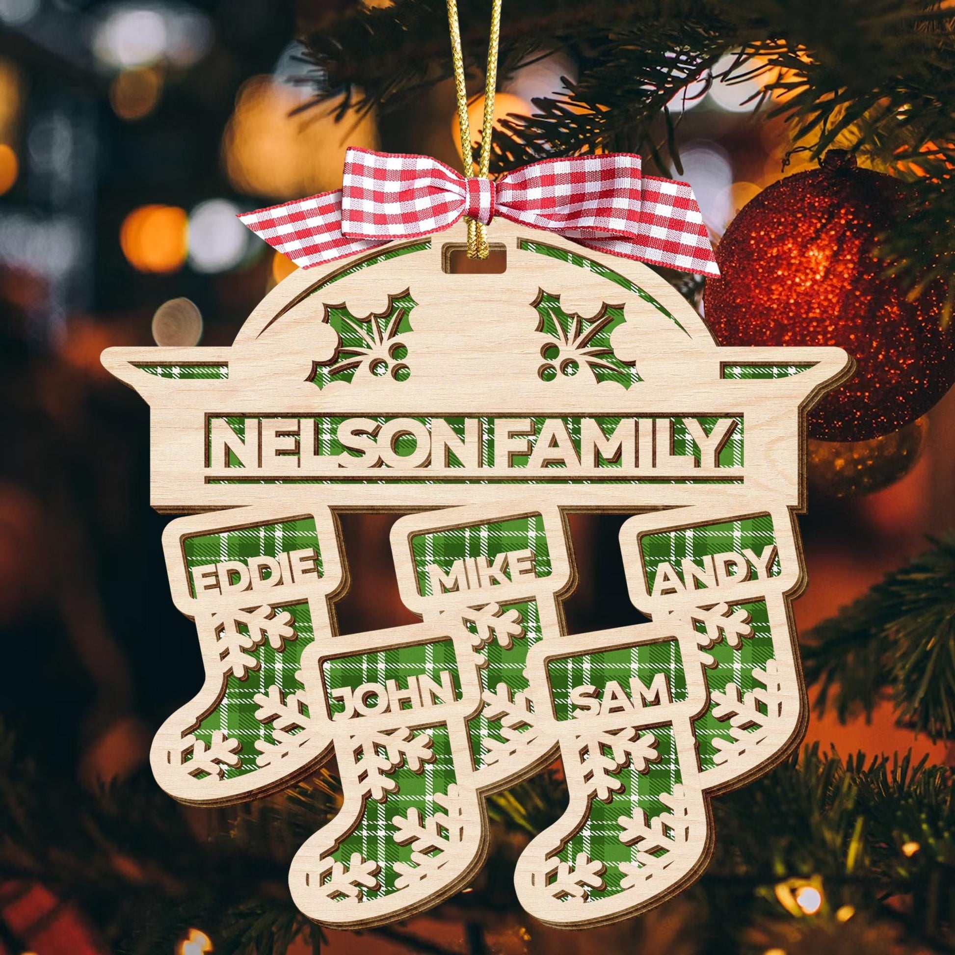 Personalized Wooden Stocking Christmas Ornaments with Names Family of 9 - Ornaments for Christmas Tree Decorations