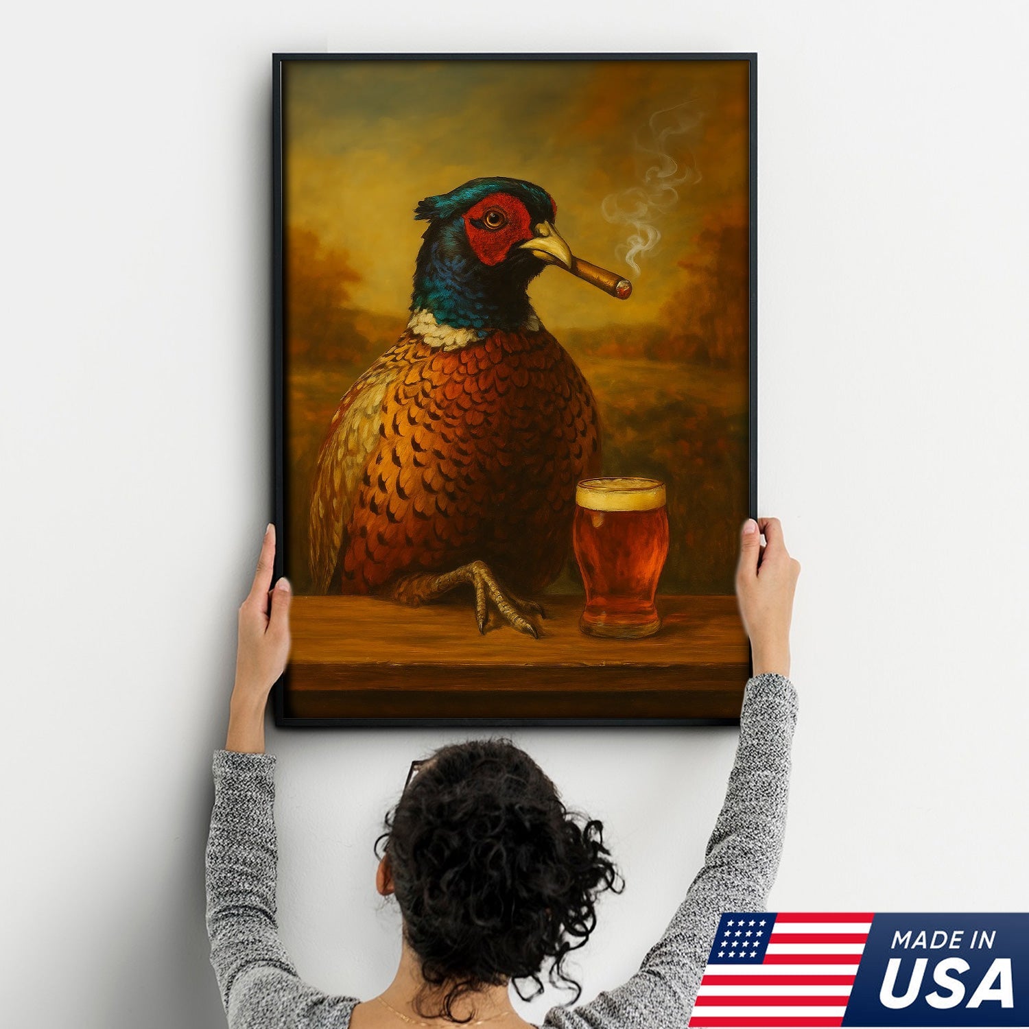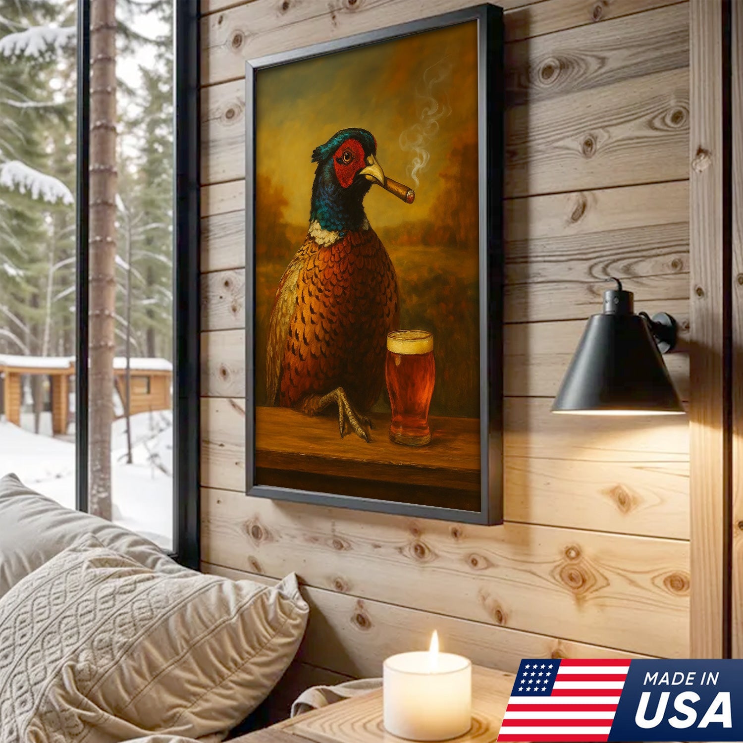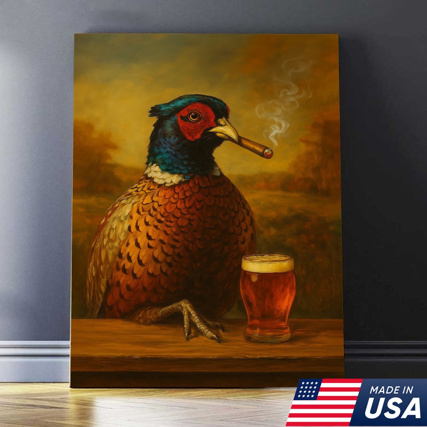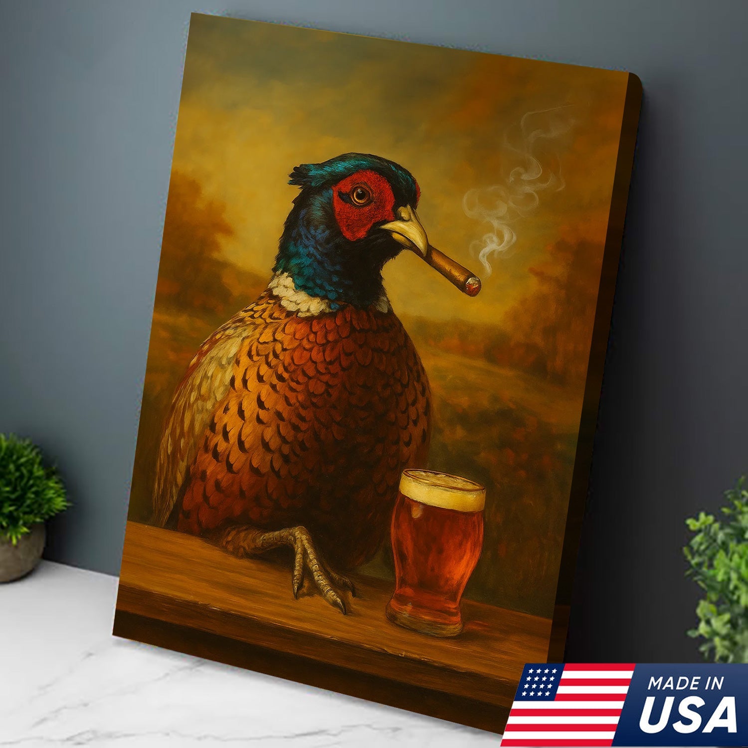 Pheasant With Smoking & Cocktail Glasses Canvas – Hunting Lodge Decor Perfect Gift for Hunters & Cocktail Glasses Lovers