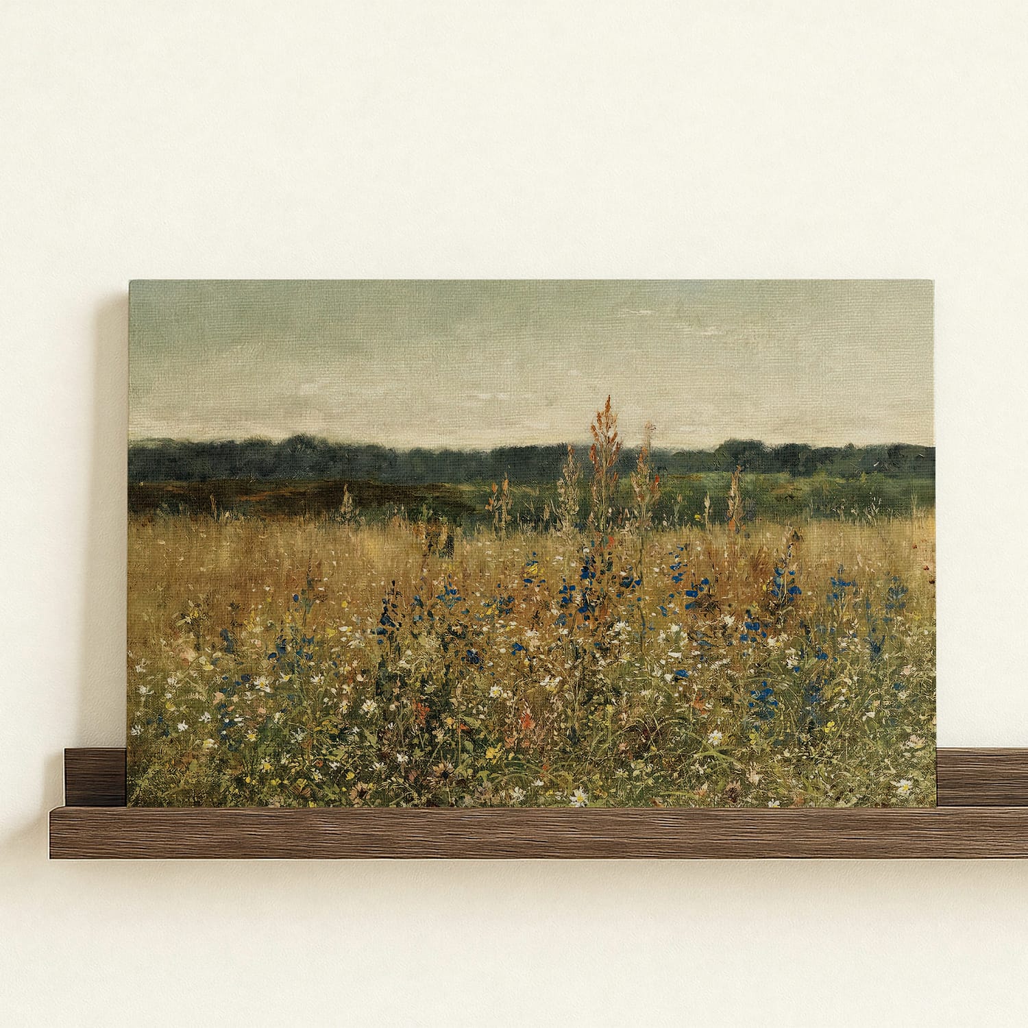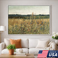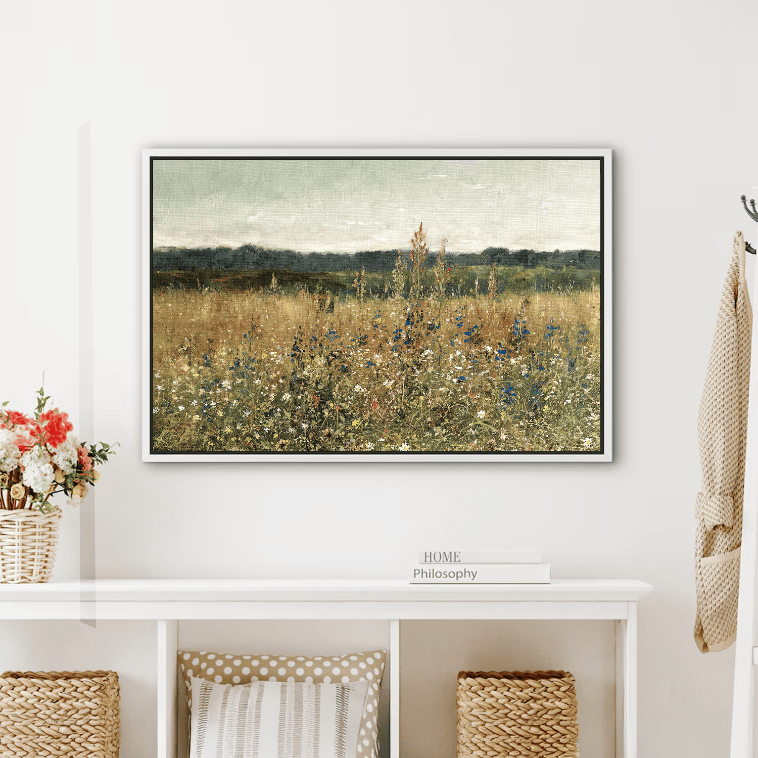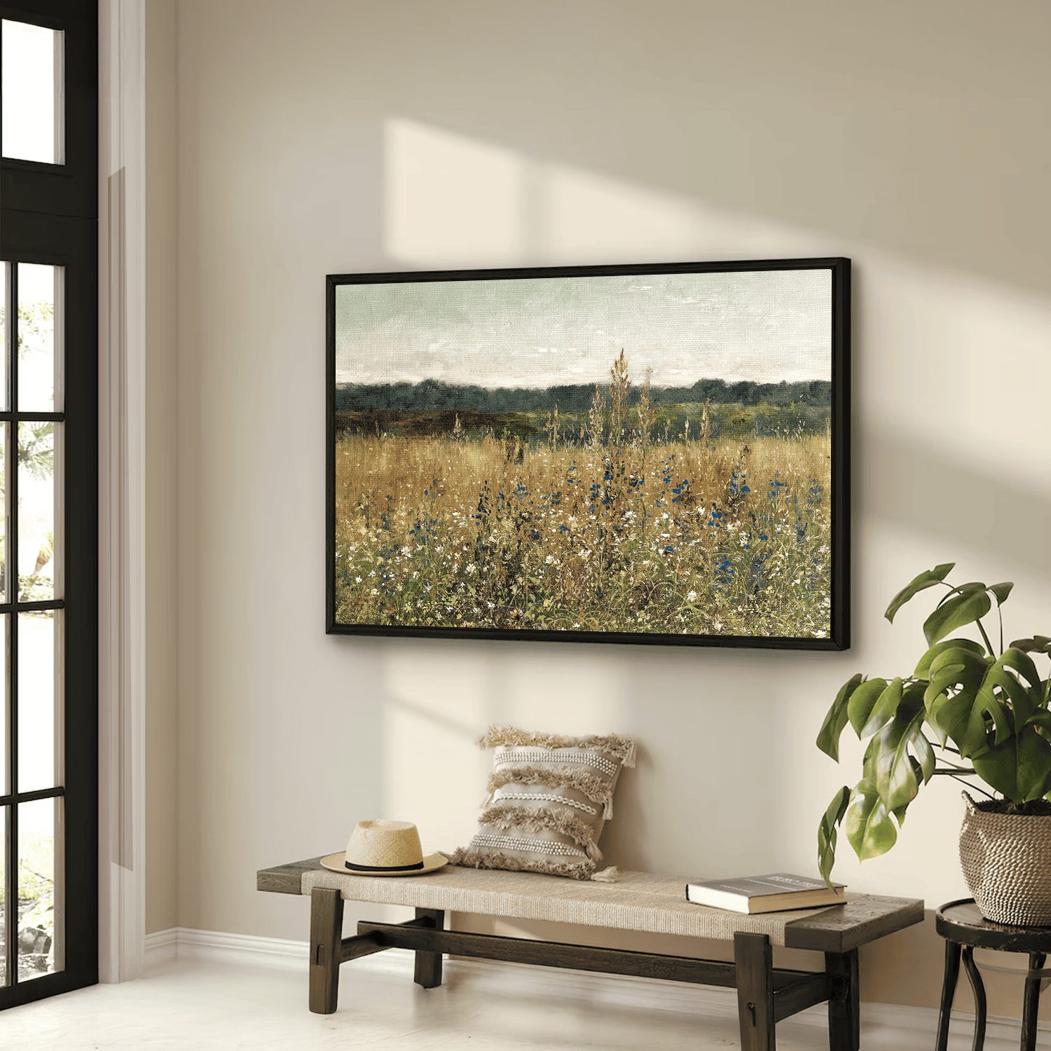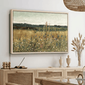 Quiet Meadow Landscape Framed Canvas – Rustic Botanical Field