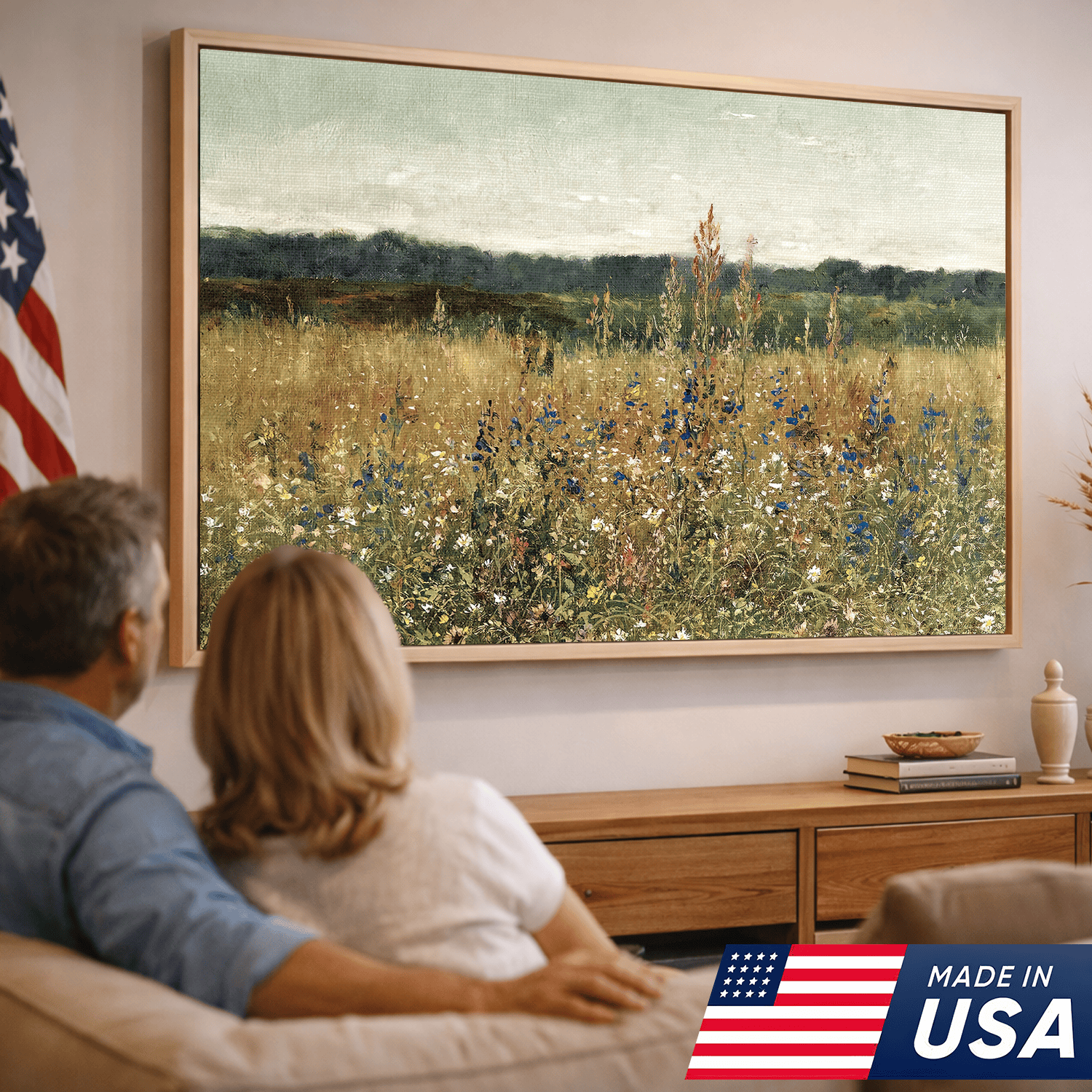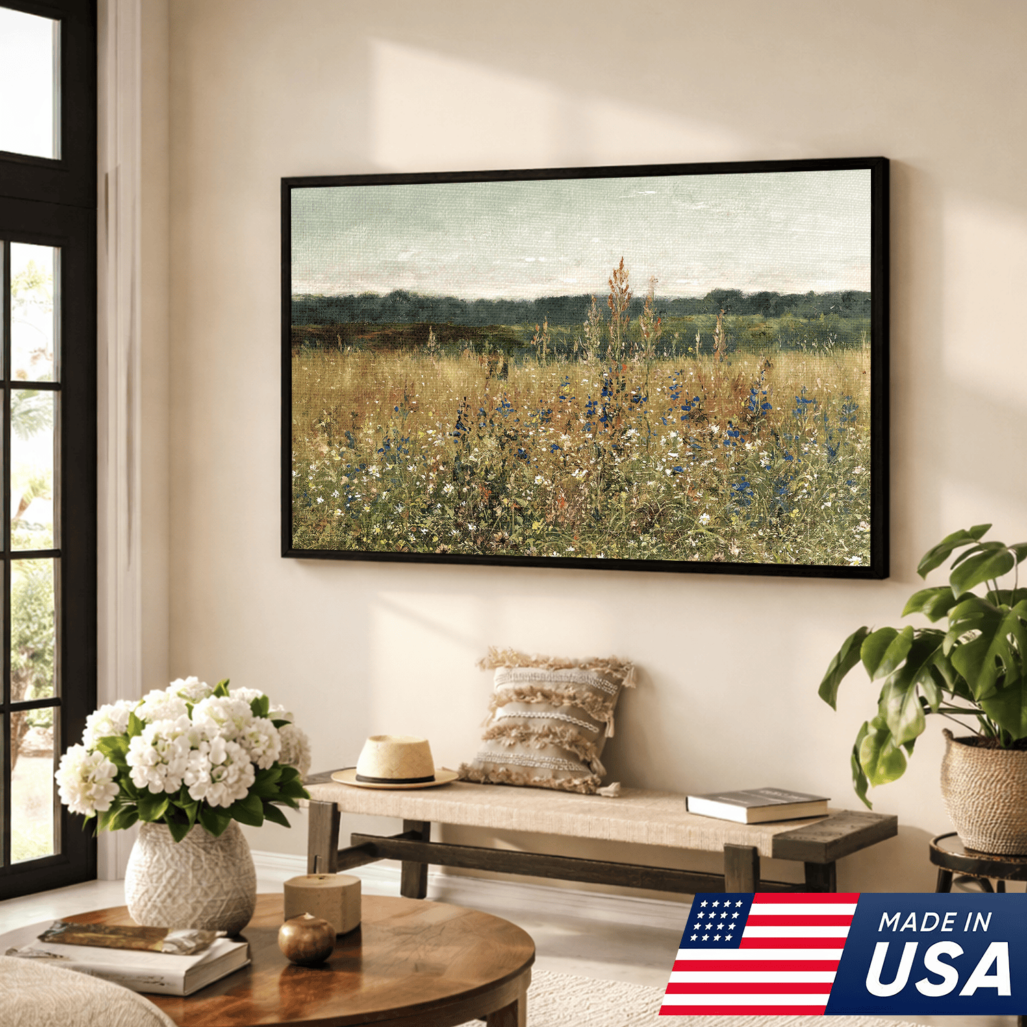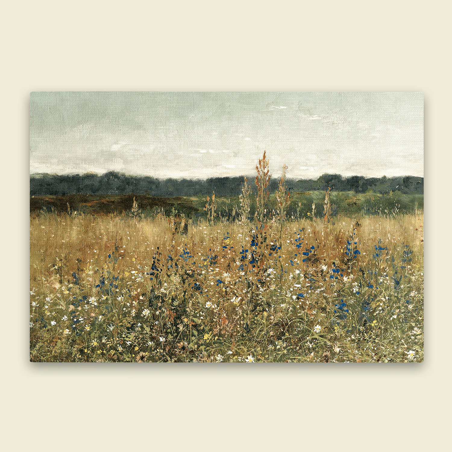 Quiet Meadow Landscape Framed Canvas – Rustic Botanical Field