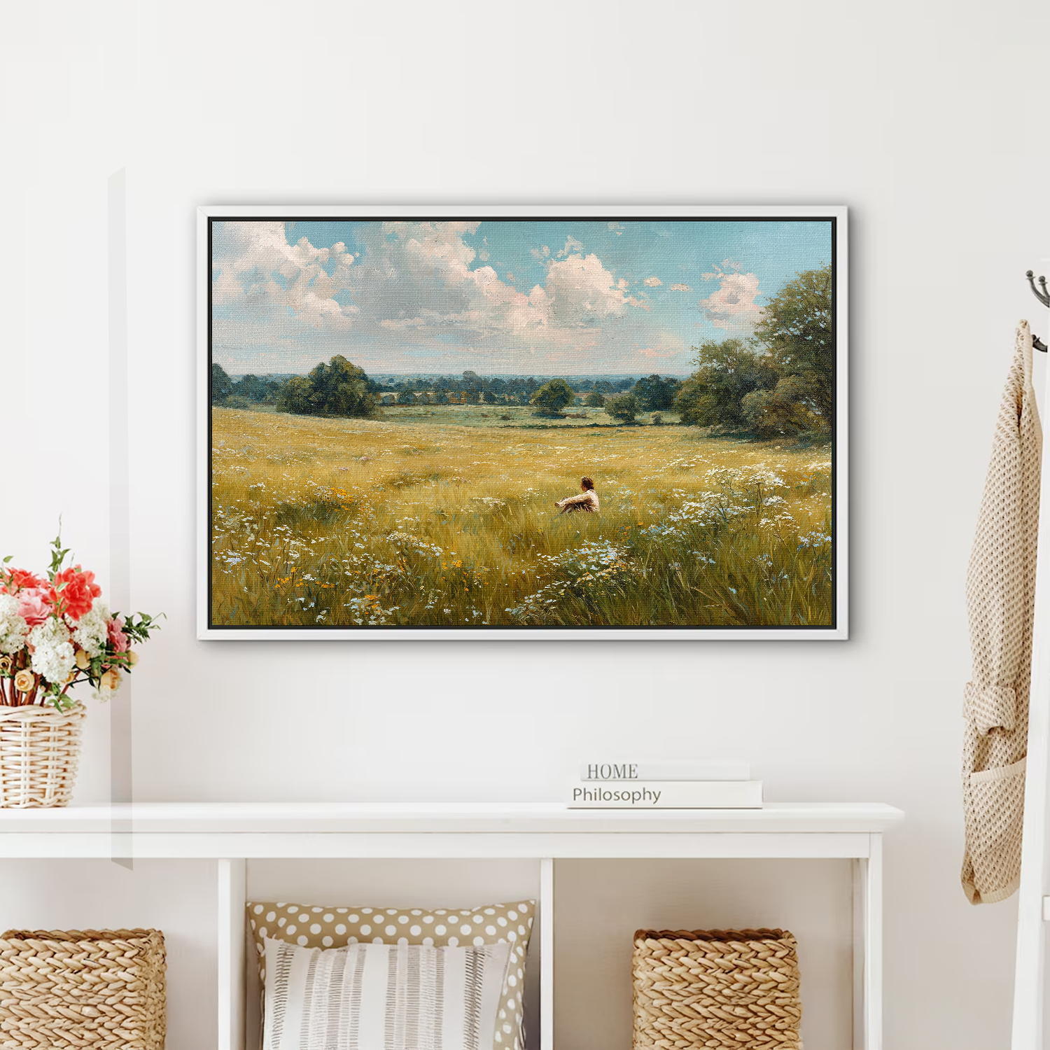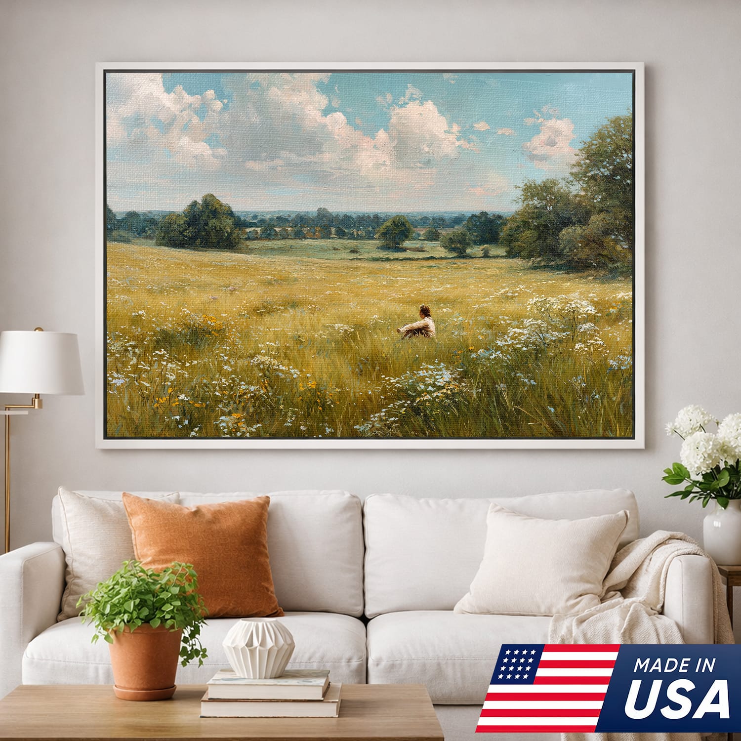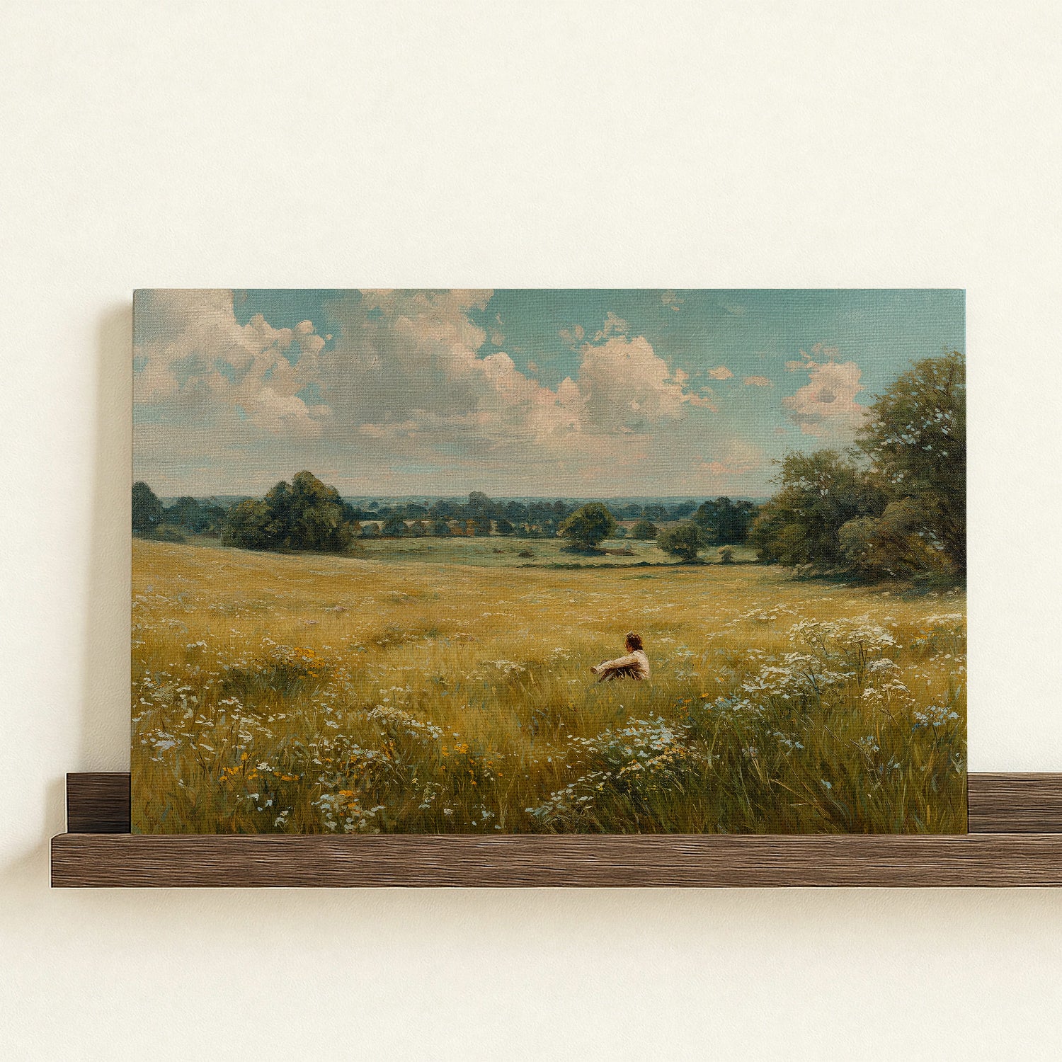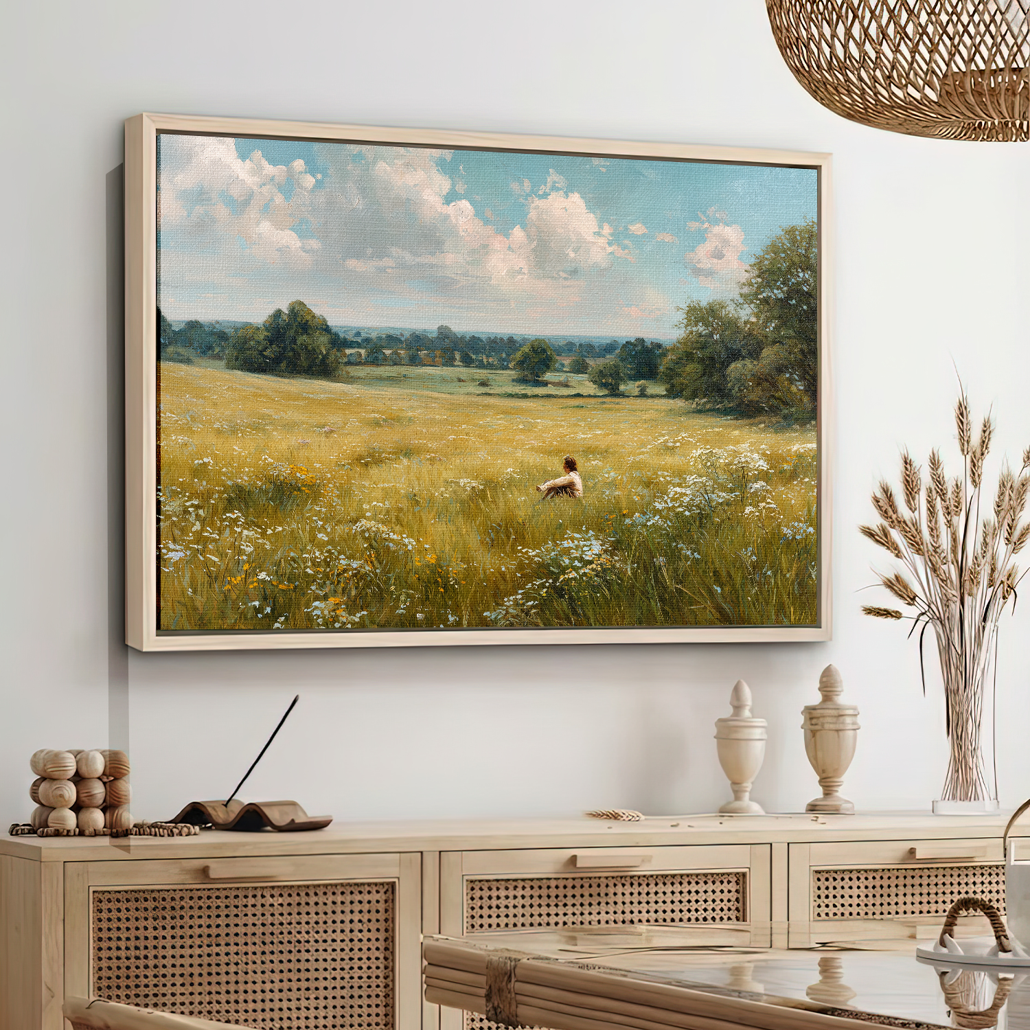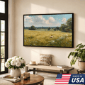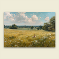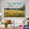 Quiet Solitude in Bloom Framed Canvas β Open Grassland Scene