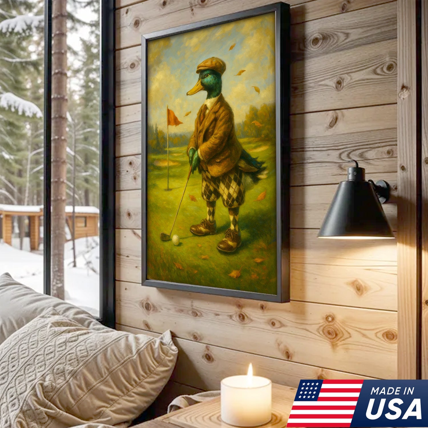 Quirky Duck Golf Canvas Print – Funny Rustic Wall Art for Cabin, Lodge & Man Cave