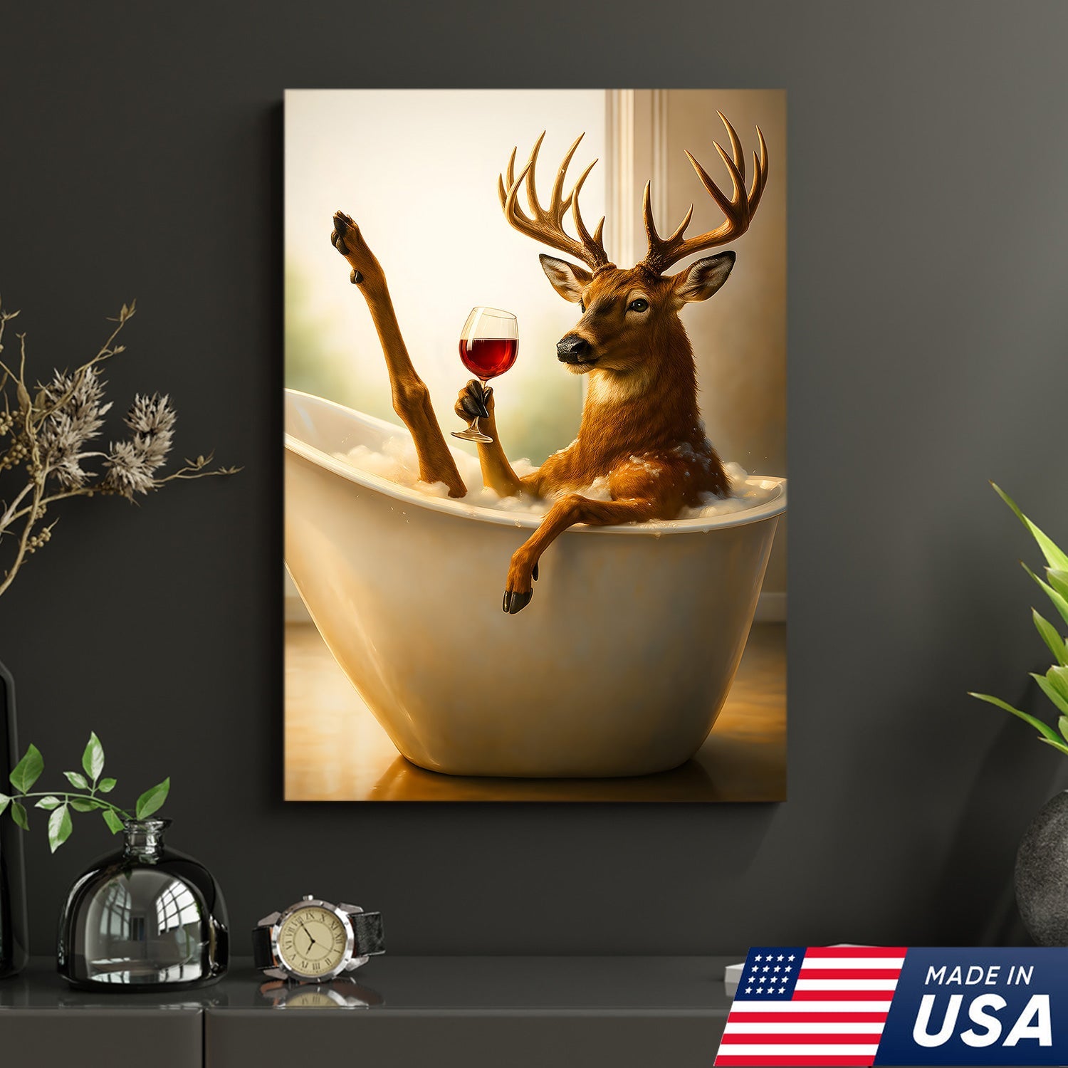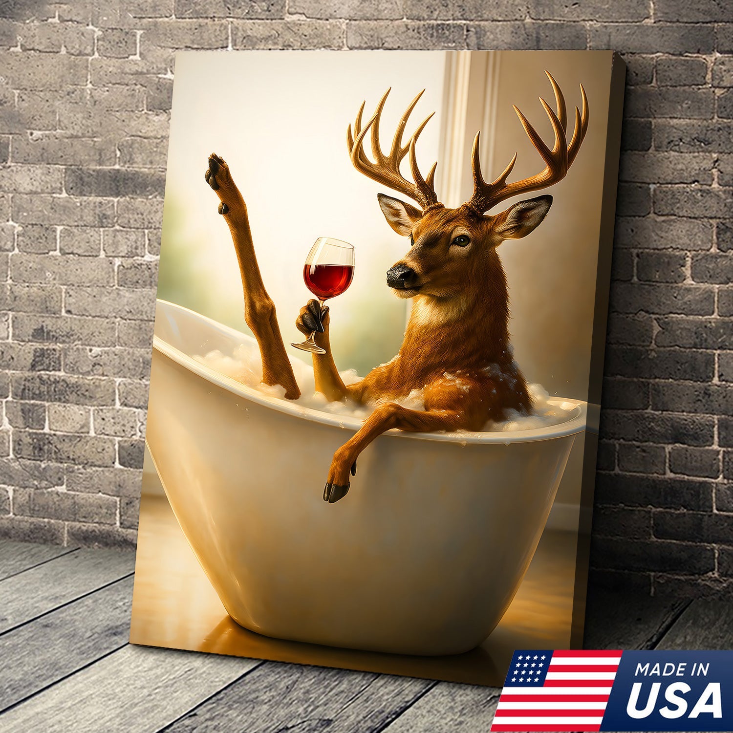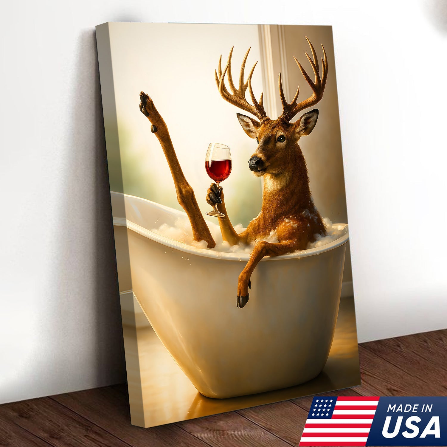 Relaxing Deer in Bathtub Funny Wall Art – Unique Gift for Hunters, Rustic Cabin Decor Canvas