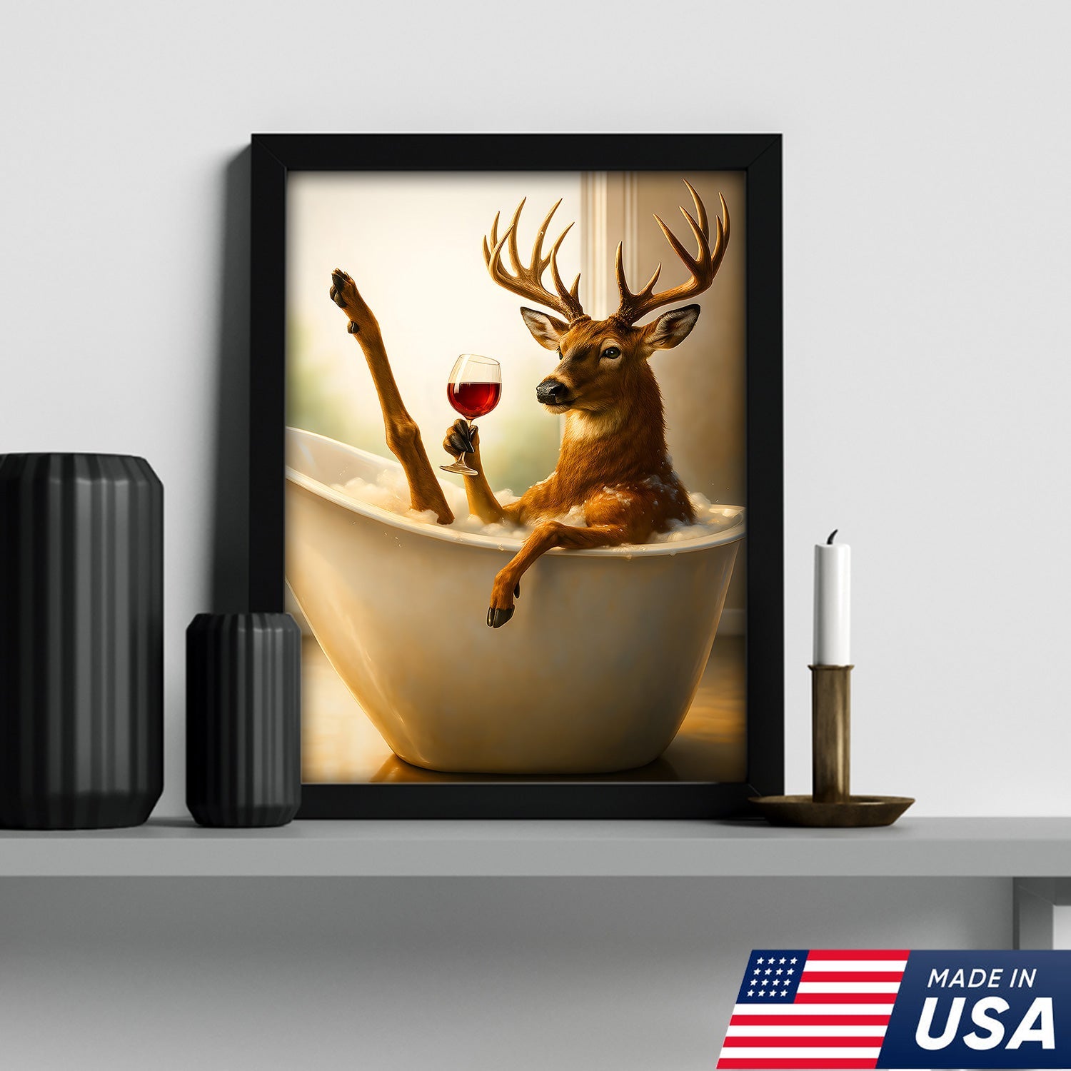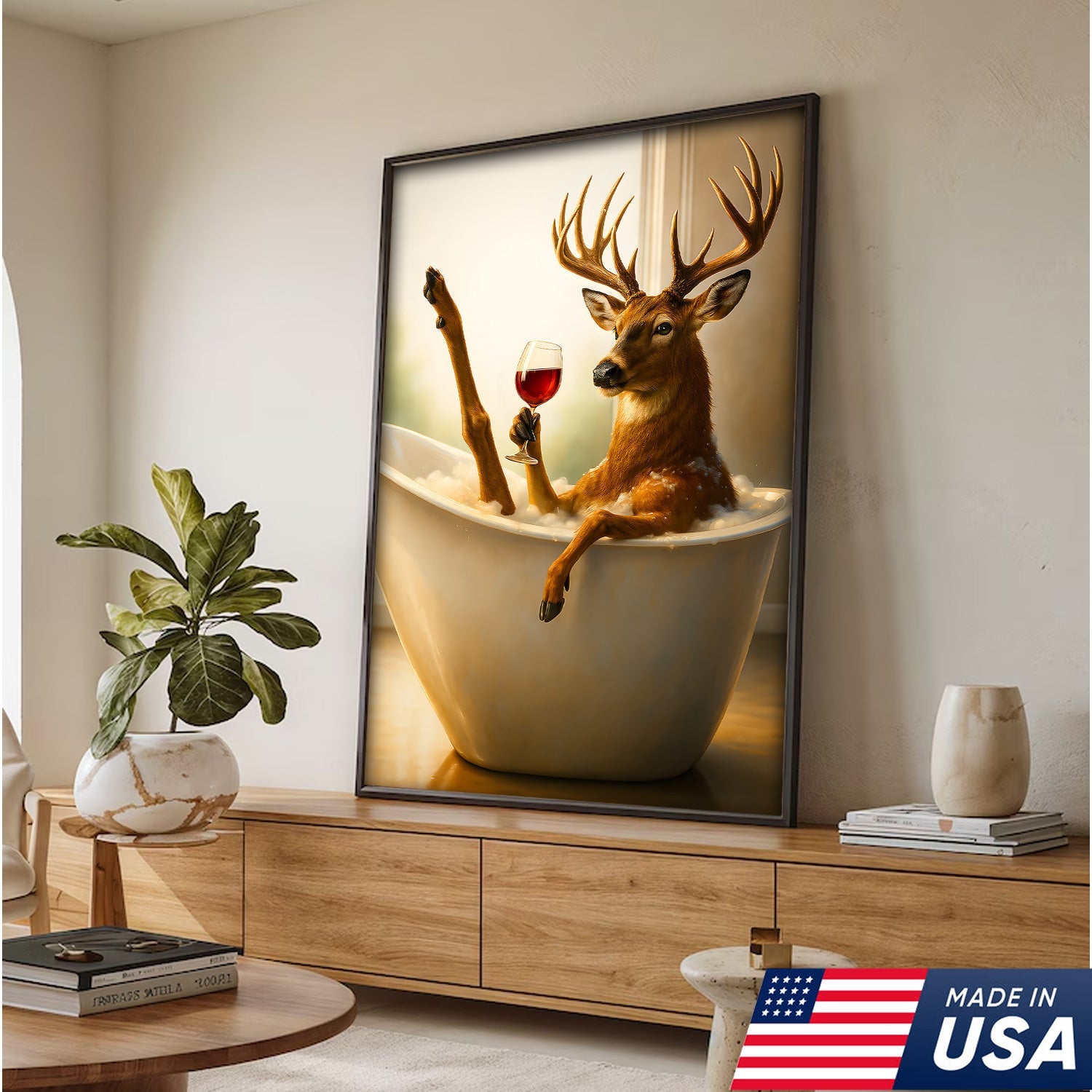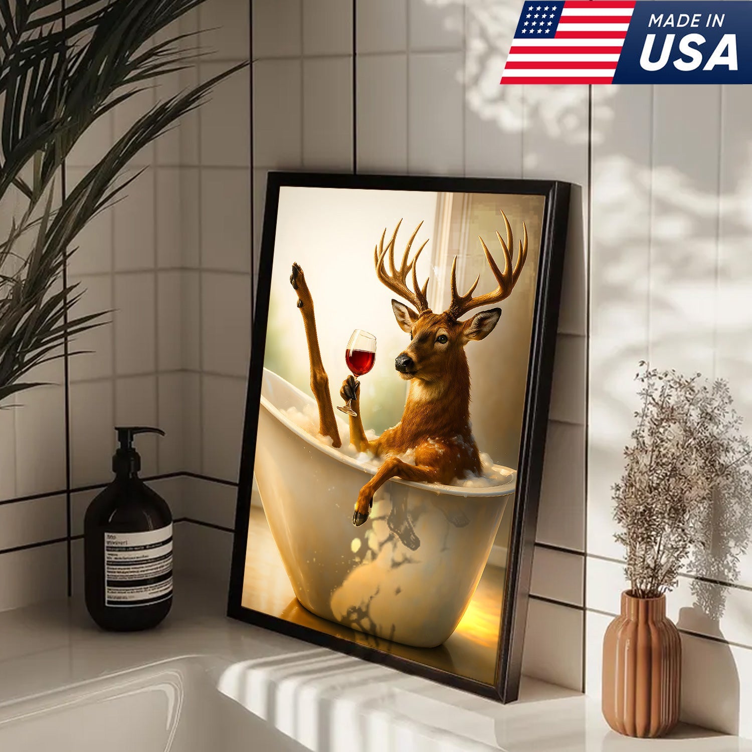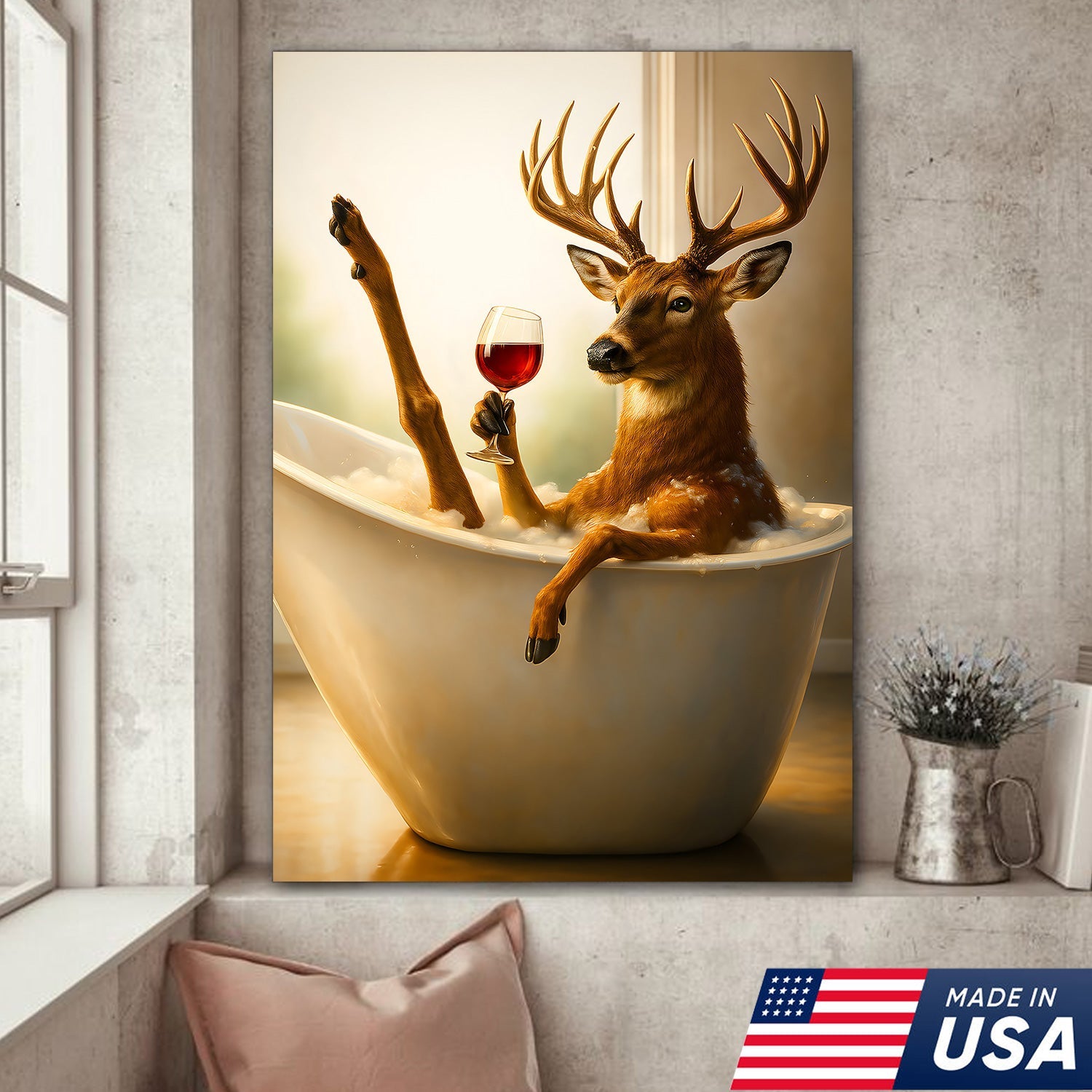 Relaxing Deer in Bathtub Funny Wall Art – Unique Gift for Hunters, Rustic Cabin Decor Canvas