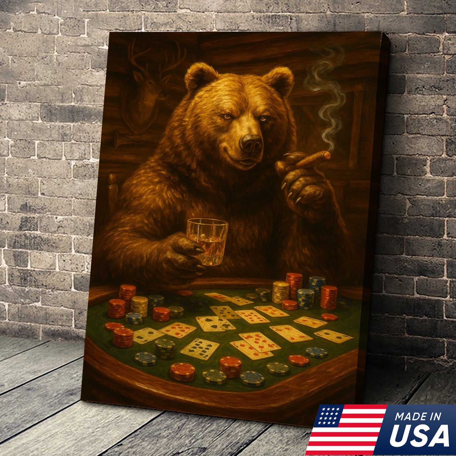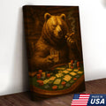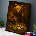 Rustic Bear Poker Canvas Wall Art – Funny Animal Playing Cards Decor for Cabin, Lodge & Game Room