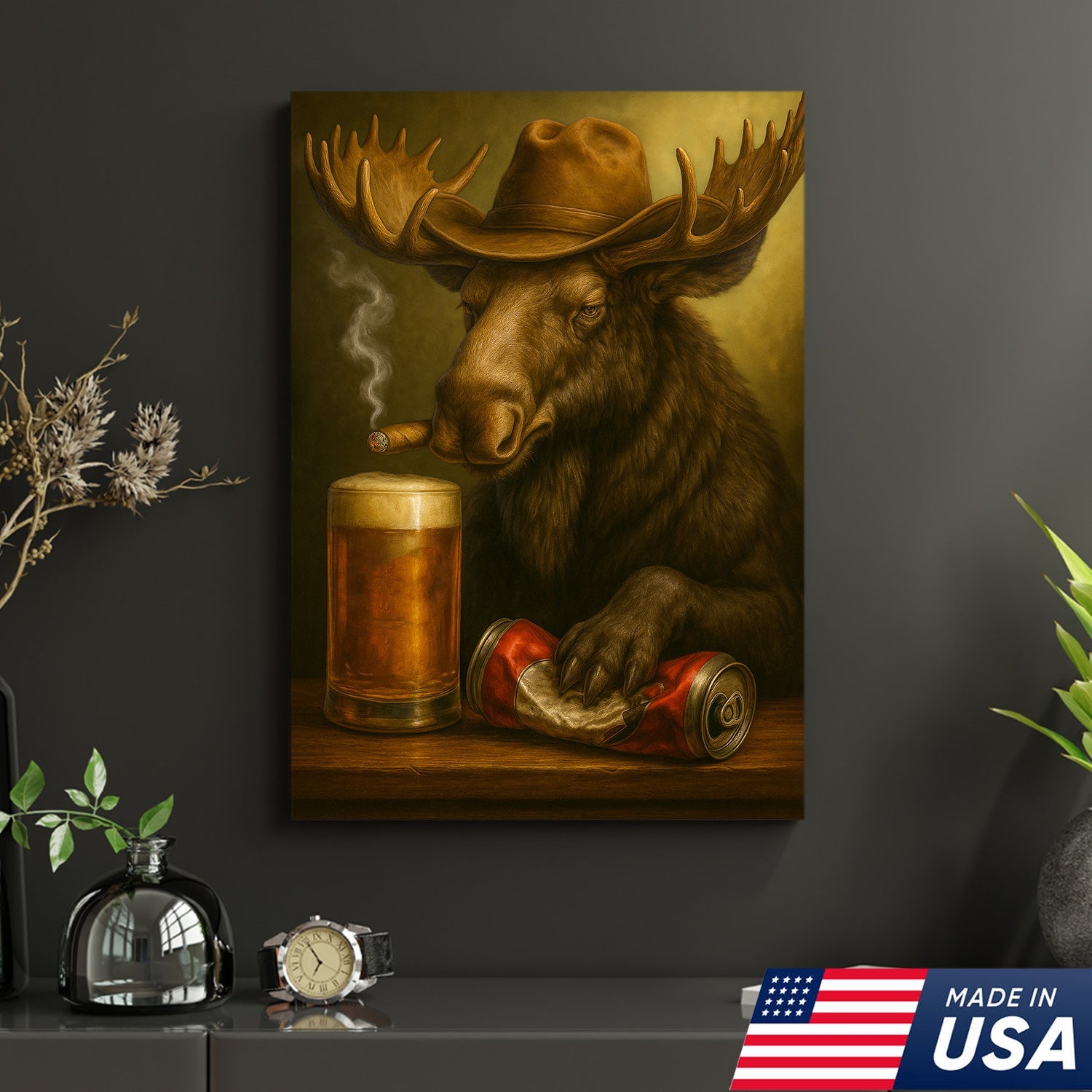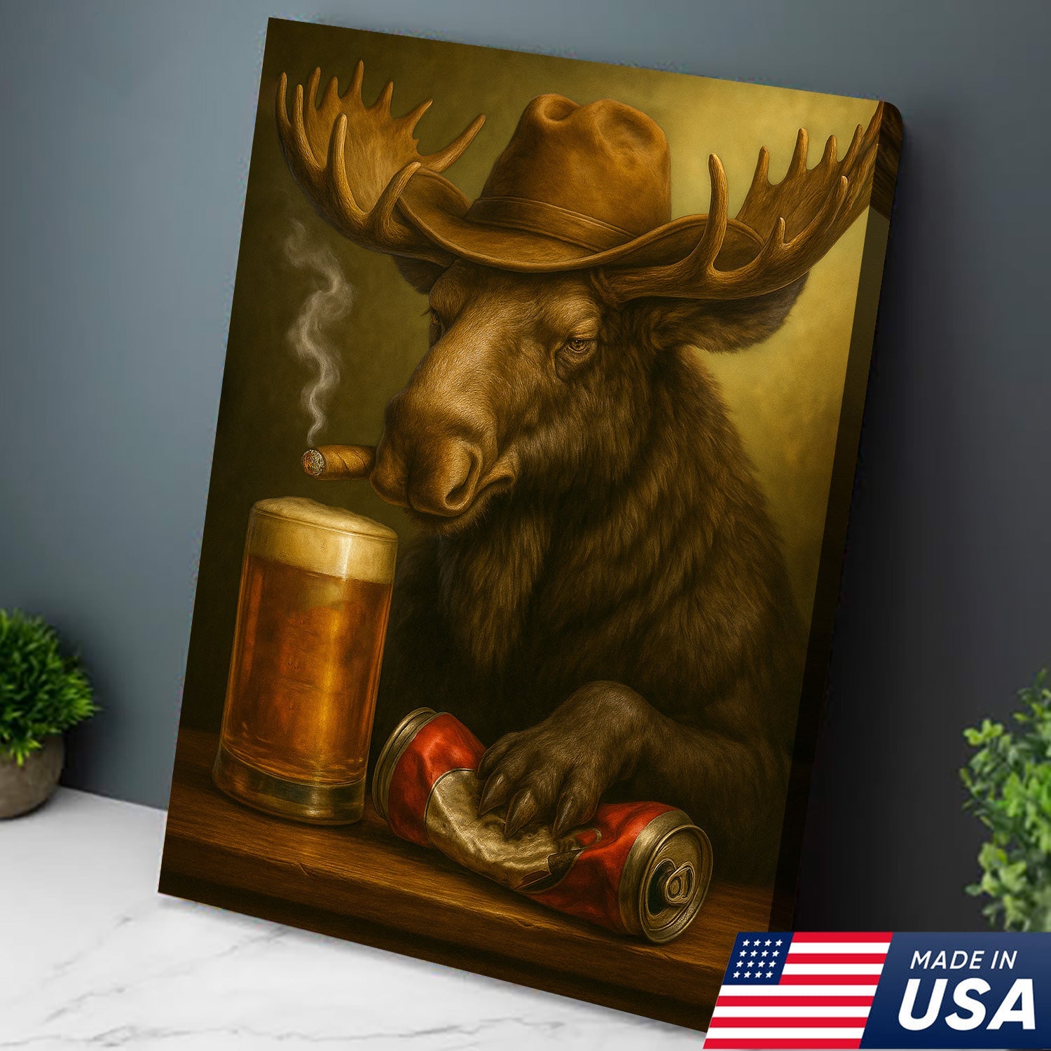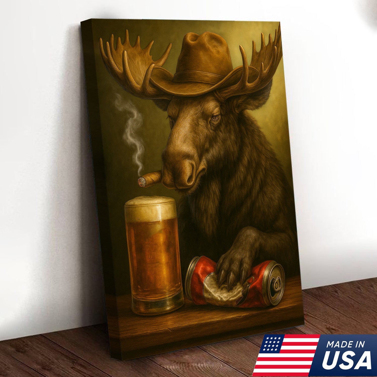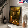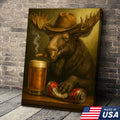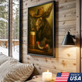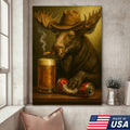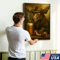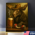 Rustic Cowboy Moose Beer Canvas – Funny Bar Wall Art Gift for Hunters, Cabin Decor & Man Caves