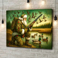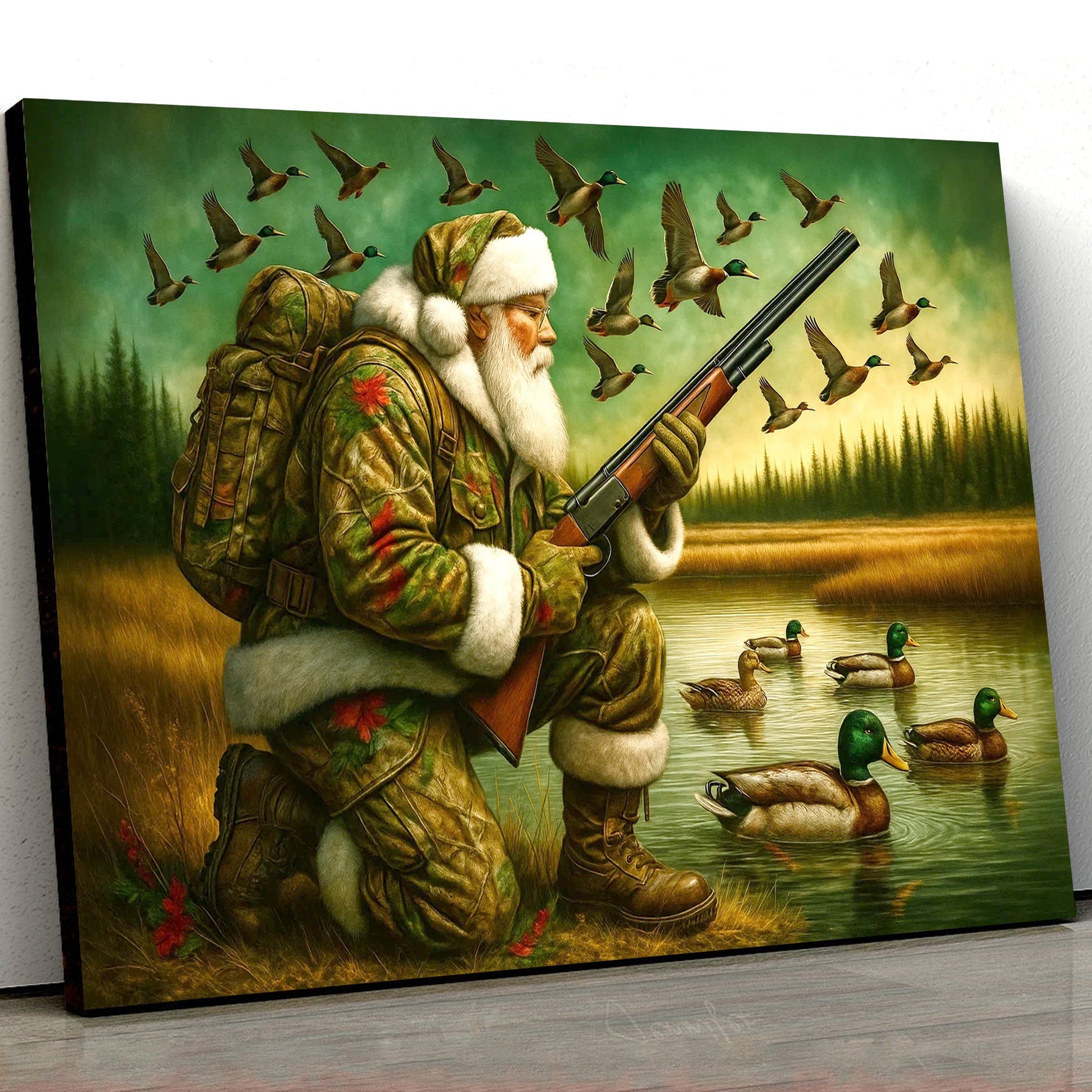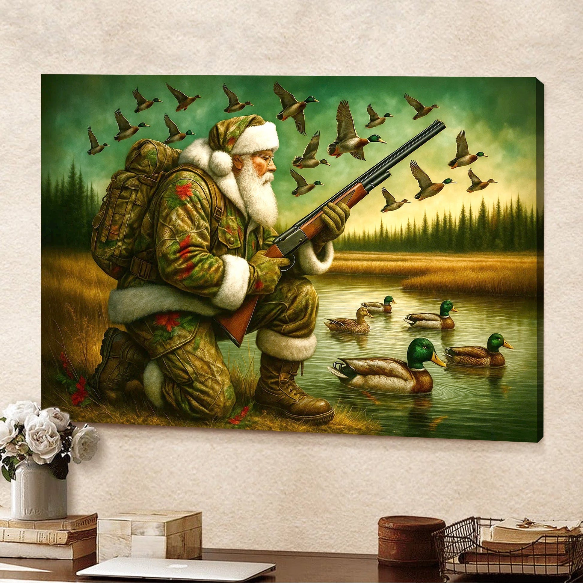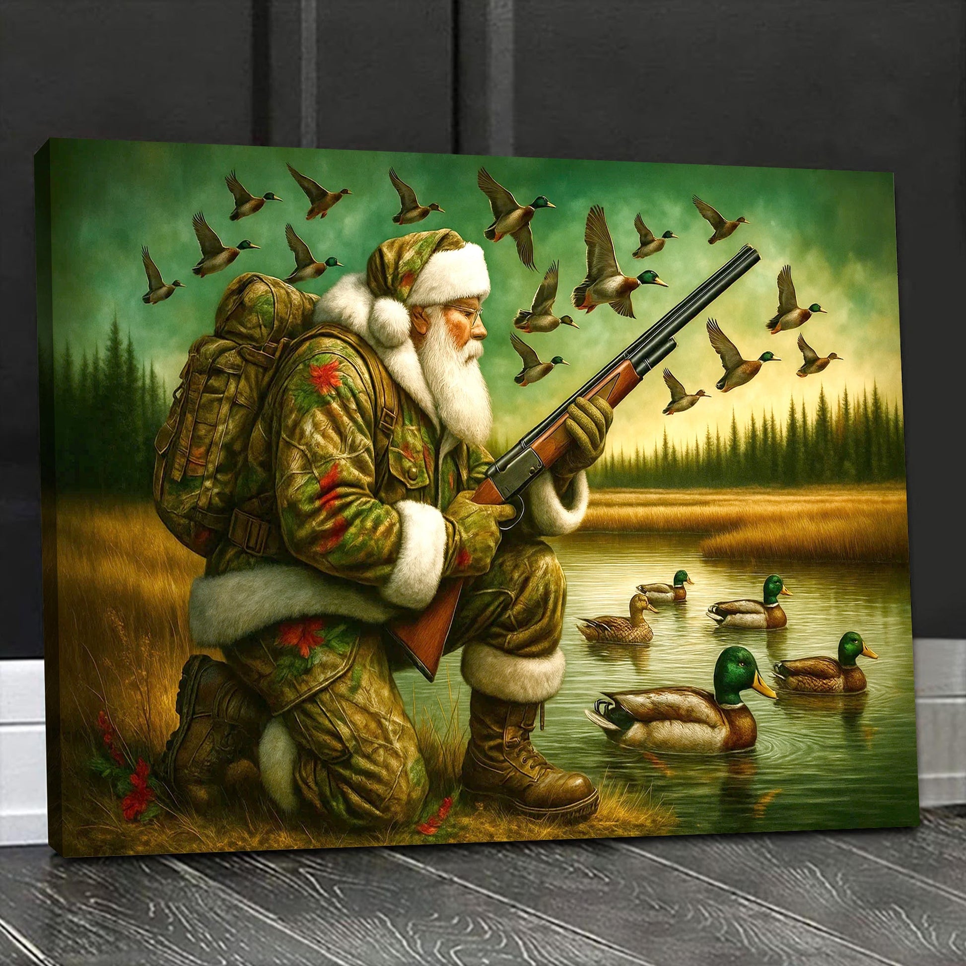 Santa Duck Hunting Canvas Wall Art, Rustic Christmas Cabin Decor, Outdoor Waterfowl Hunter Gift for Holiday Season