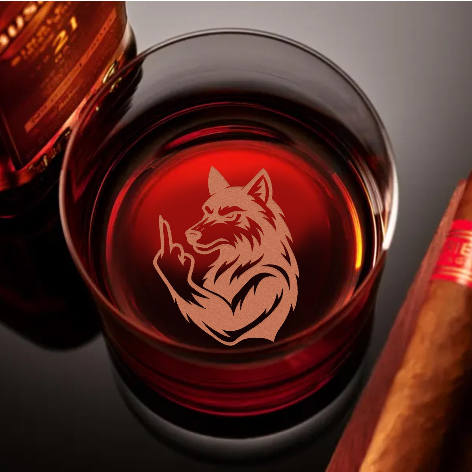 Savage Wolf Engraved Whiskey Glass – Funny Funny Finger Whiskey Glass for Badass Men & Hunters