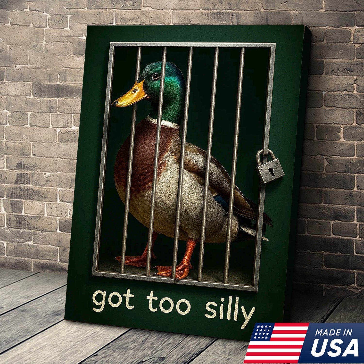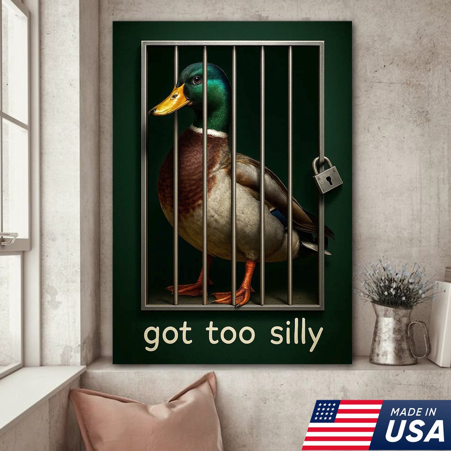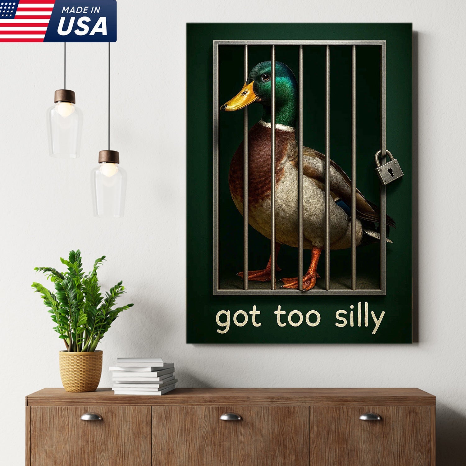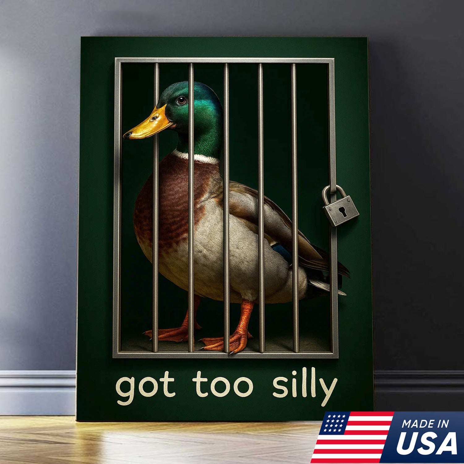 Silly Duck Canvas Wall Art – Funny Mallard Jail Print – Unique Rustic Cabin or Bathroom Decor