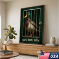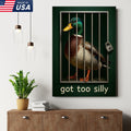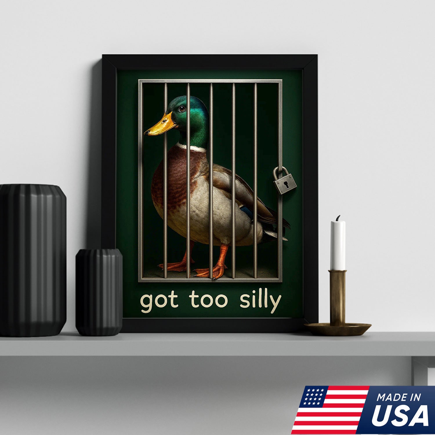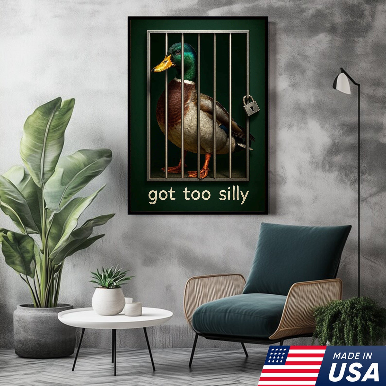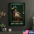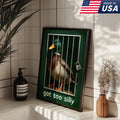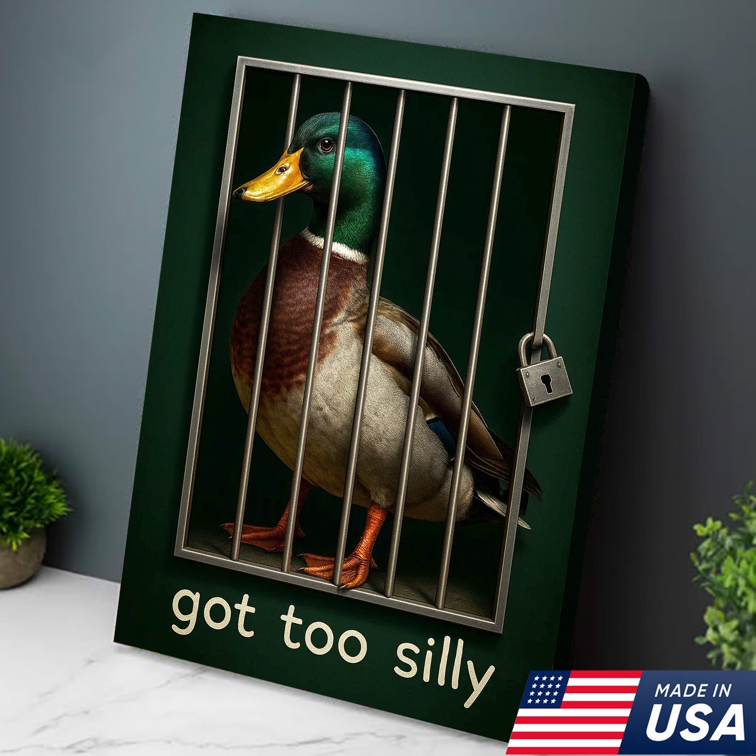 Silly Duck Canvas Wall Art – Funny Mallard Jail Print – Unique Rustic Cabin or Bathroom Decor