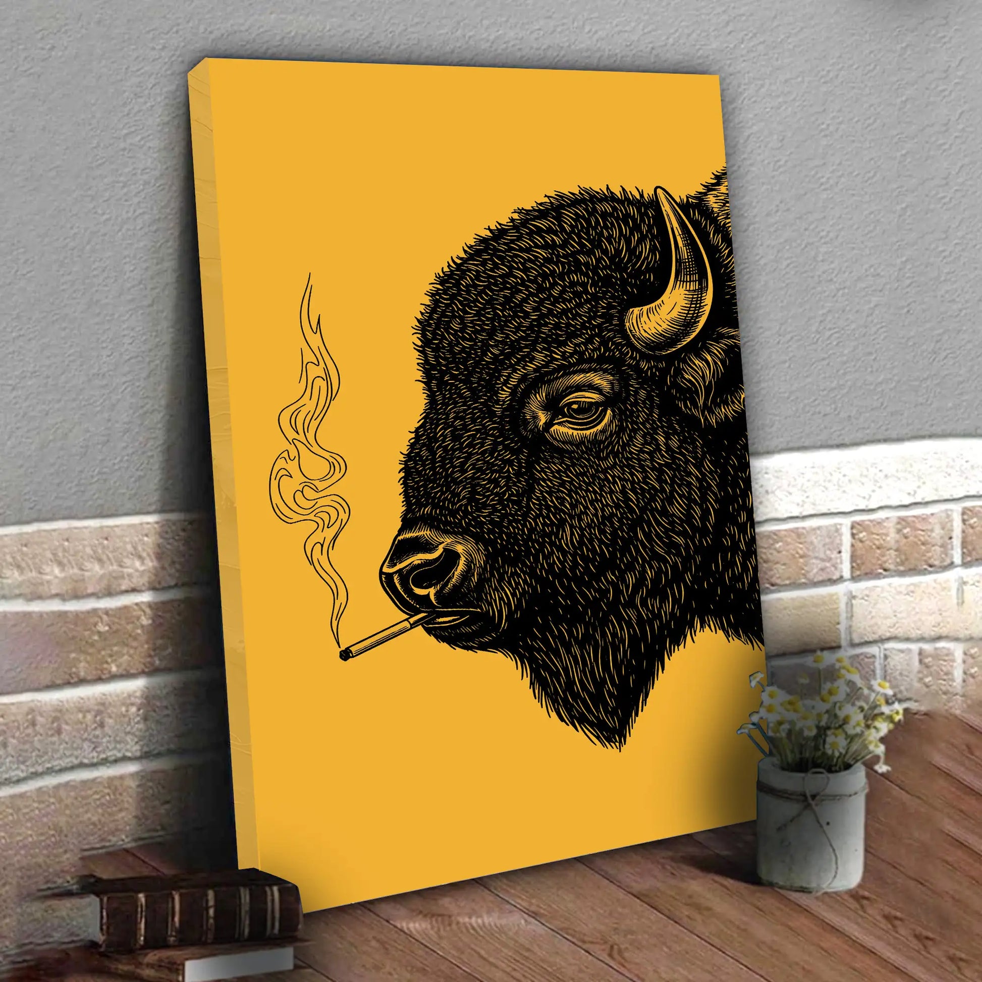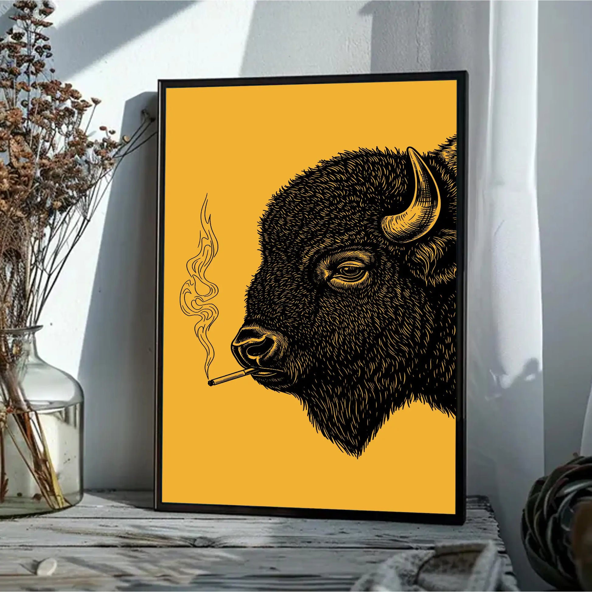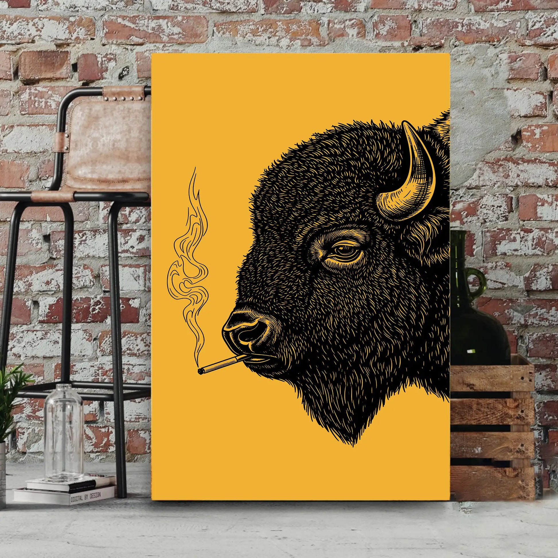 Smoking Bison Wall Art, Buffalo Canvas Poster, Rustic Western Decor