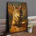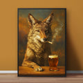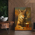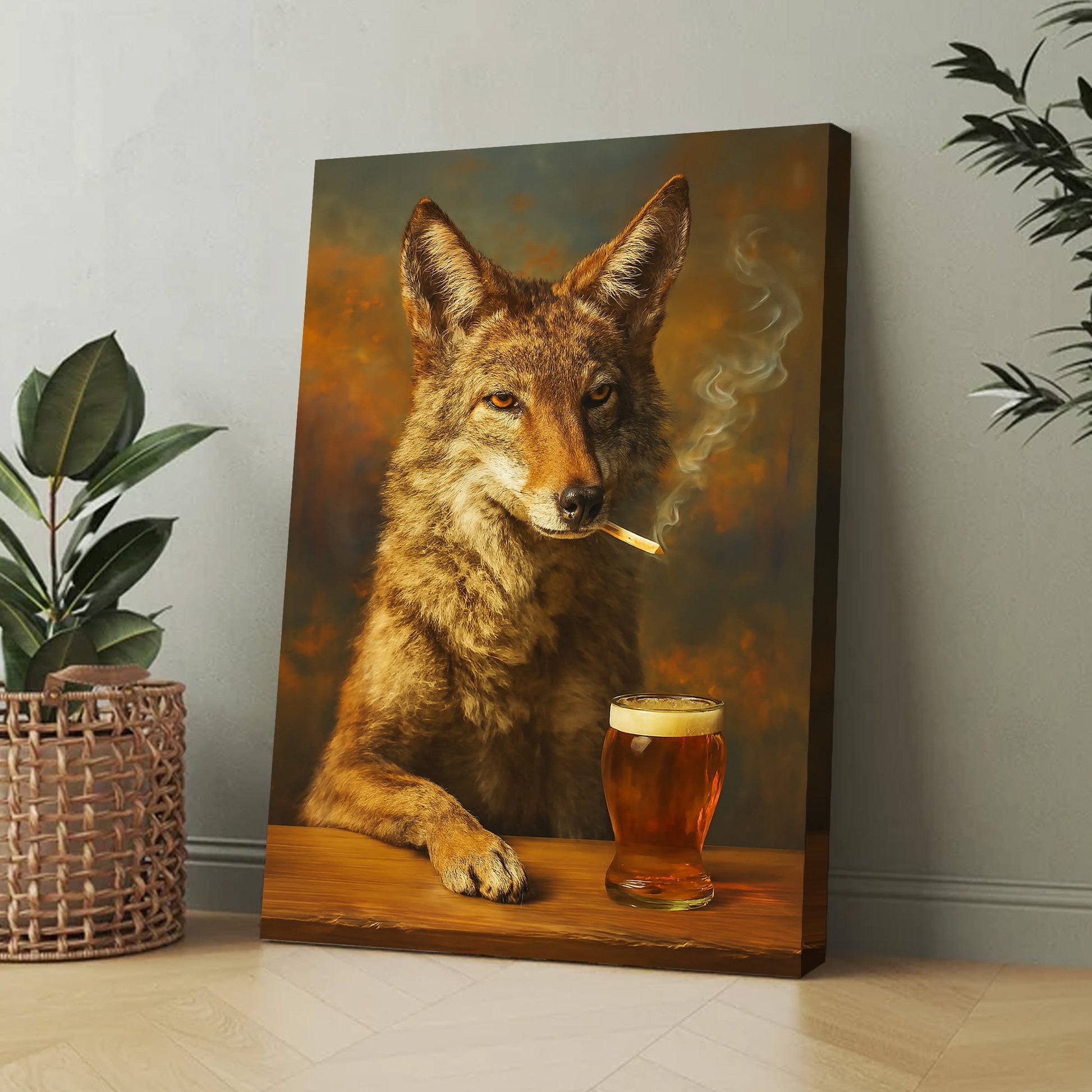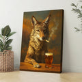 Smoking Wolf Coyote with Cocktail Glasses Canvas – Funny Hunting Wall Art for Man Caves - Hilarious Gift for Outdoorsmen