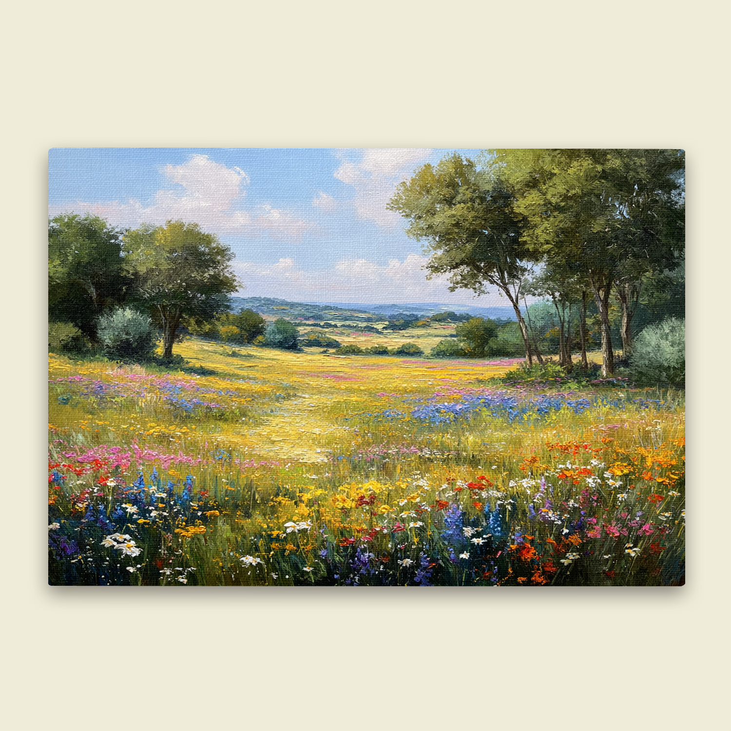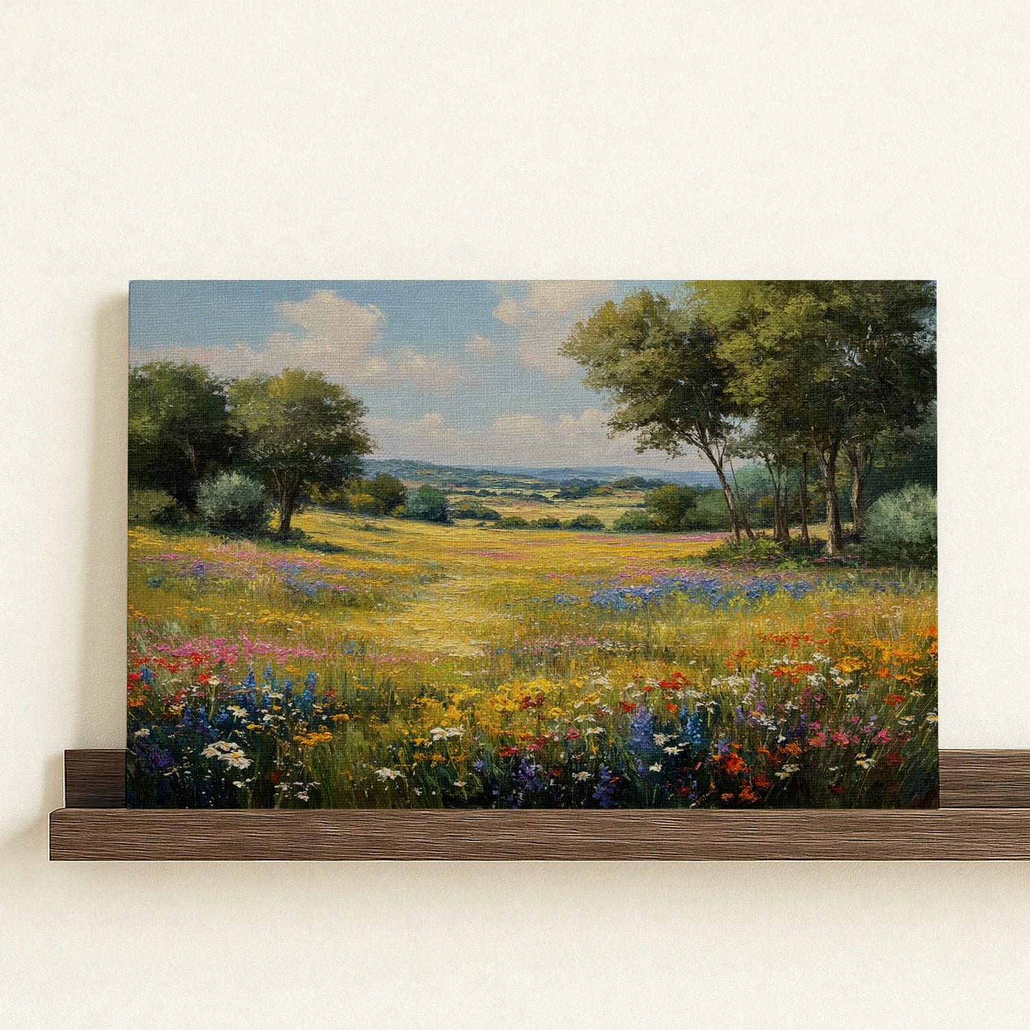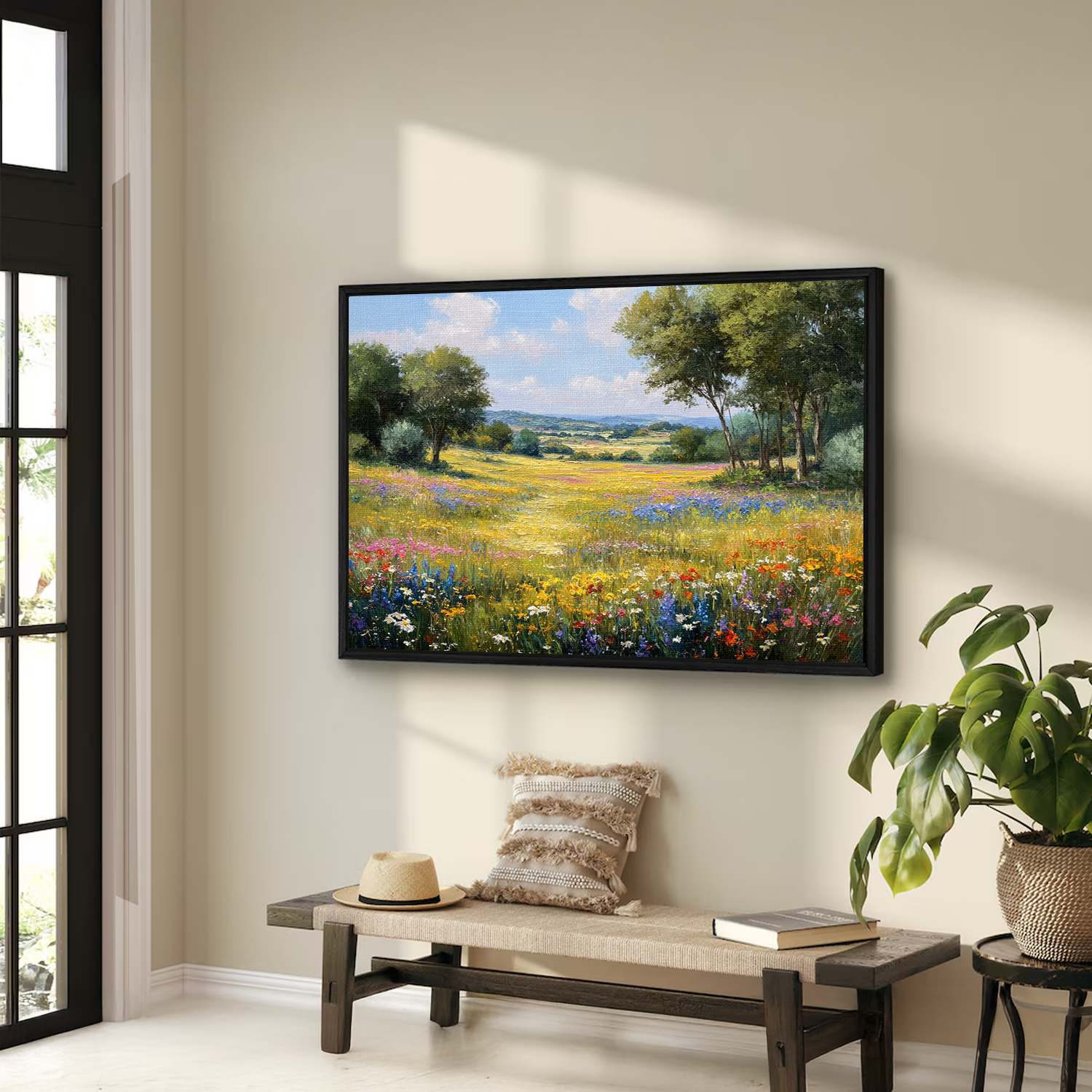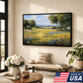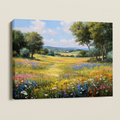 Sunlit Valley Floral Landscape Framed Canvas β Pastoral Bloom