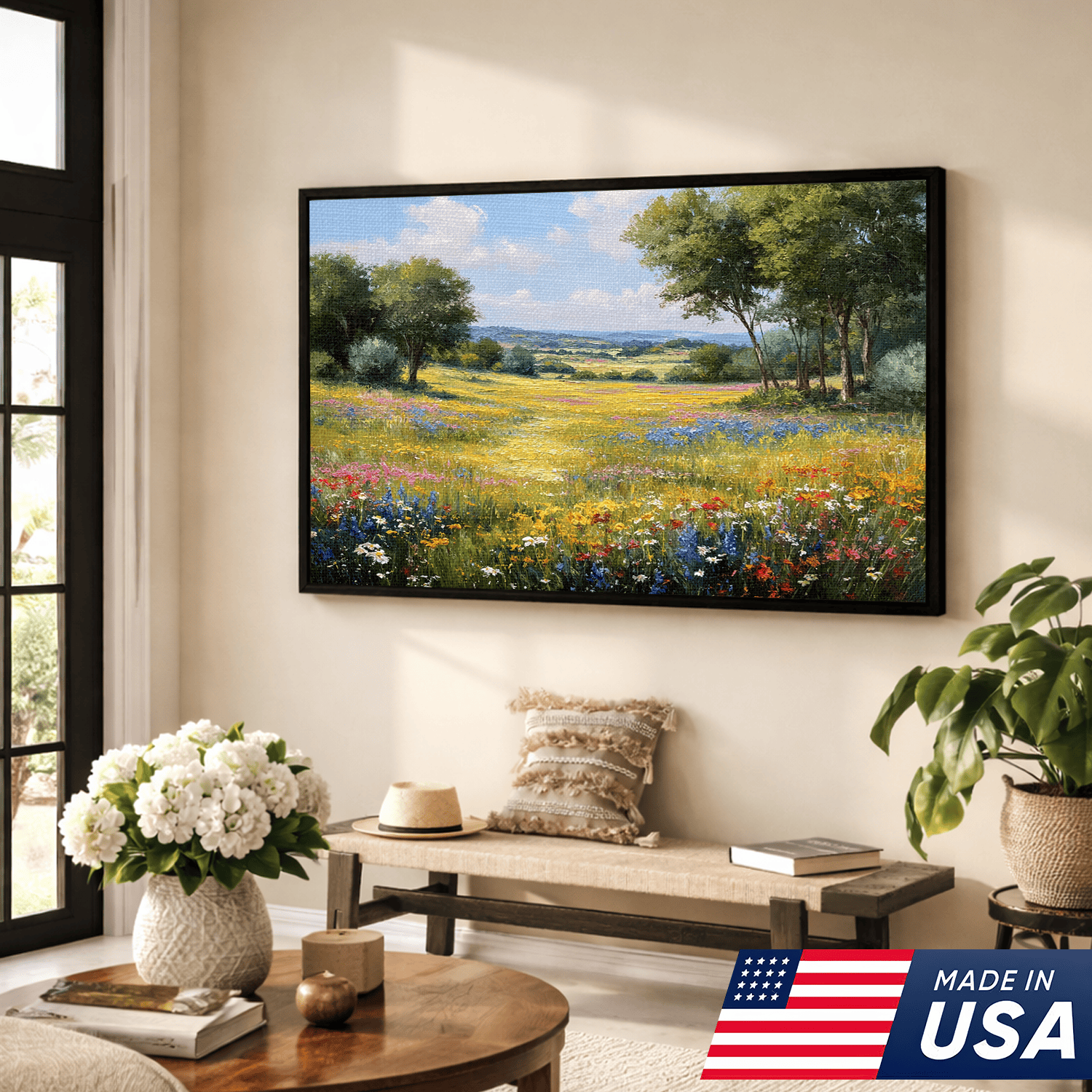Ready-to-Hang Options β framed pieces arrive professionally mounted; unframed canvases ship rolled in protective tubes.